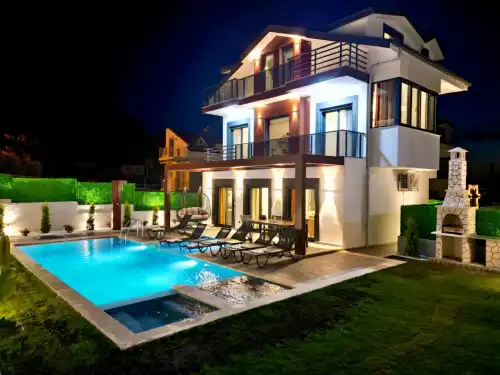 Villamızda yer alan salıncak, barbekü alanı ve jakuzili yüzme havuzu, tatilinizi daha keyifli ve eğlenceli hâle getirirken; çocuklu misafirlerimiz için özel olarak tasarlanmış çocuk havuzu da bulunmaktadır. Bu sayede hem yetişkinler hem de minik misafirler için rahat ve güvenli bir tatil ortamı sağlanmaktadır.Doğayla iç içe, huzurlu bir atmosferde konumlanan villamız; konforlu yaşam alanları, geniş bahçesi ve sunduğu eğlence olanakları ile misafirlerine unutulmaz bir tatil deneyimi yaşatmaktadır.