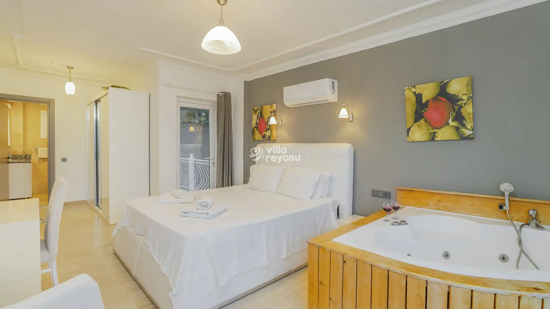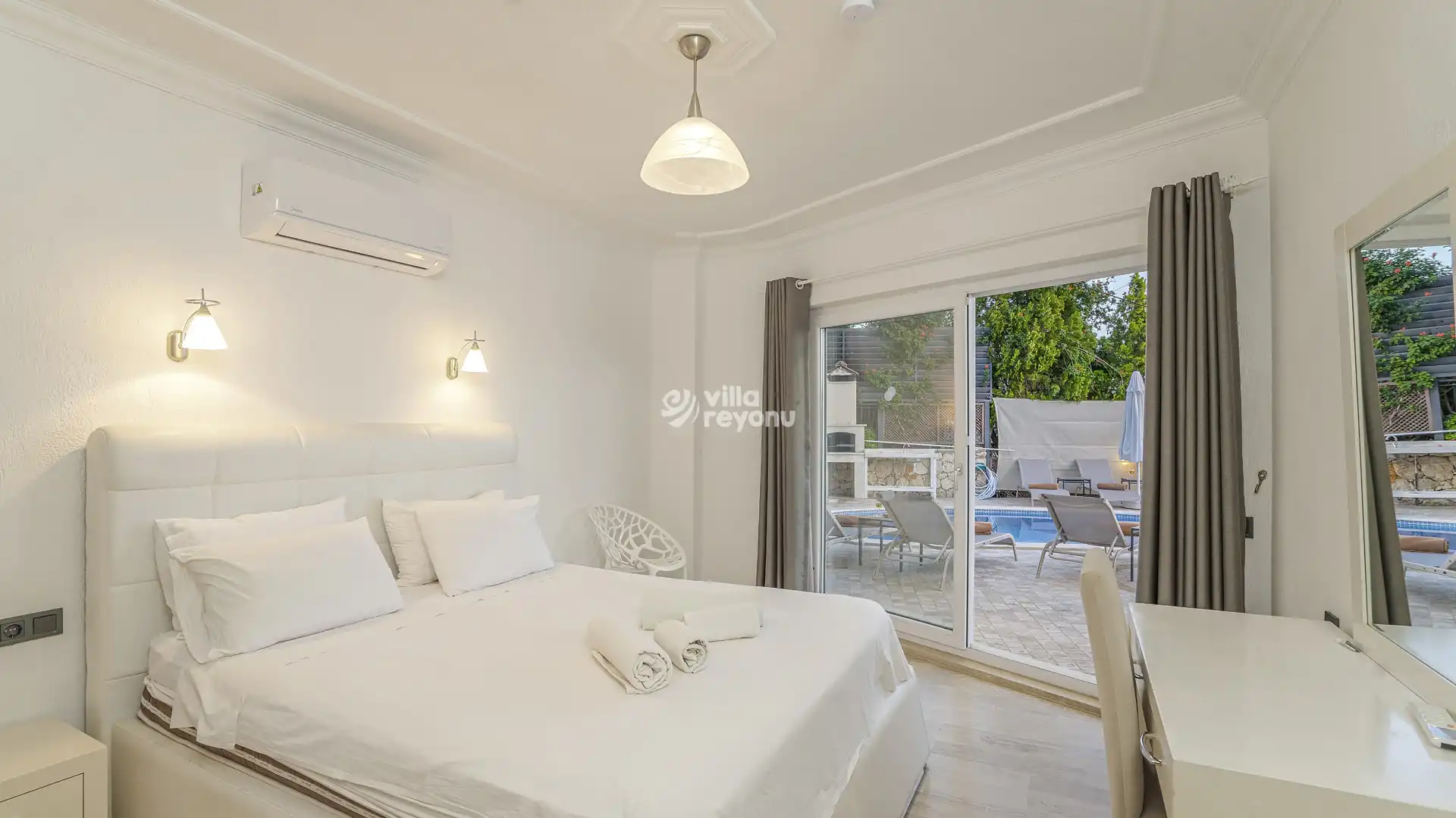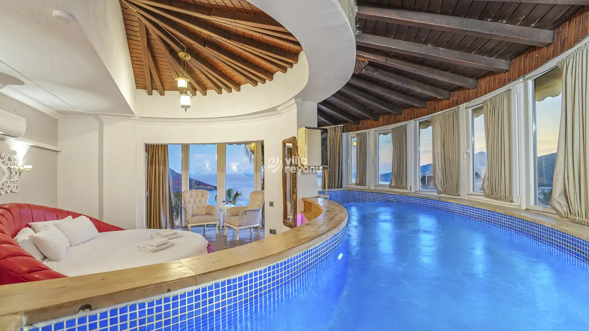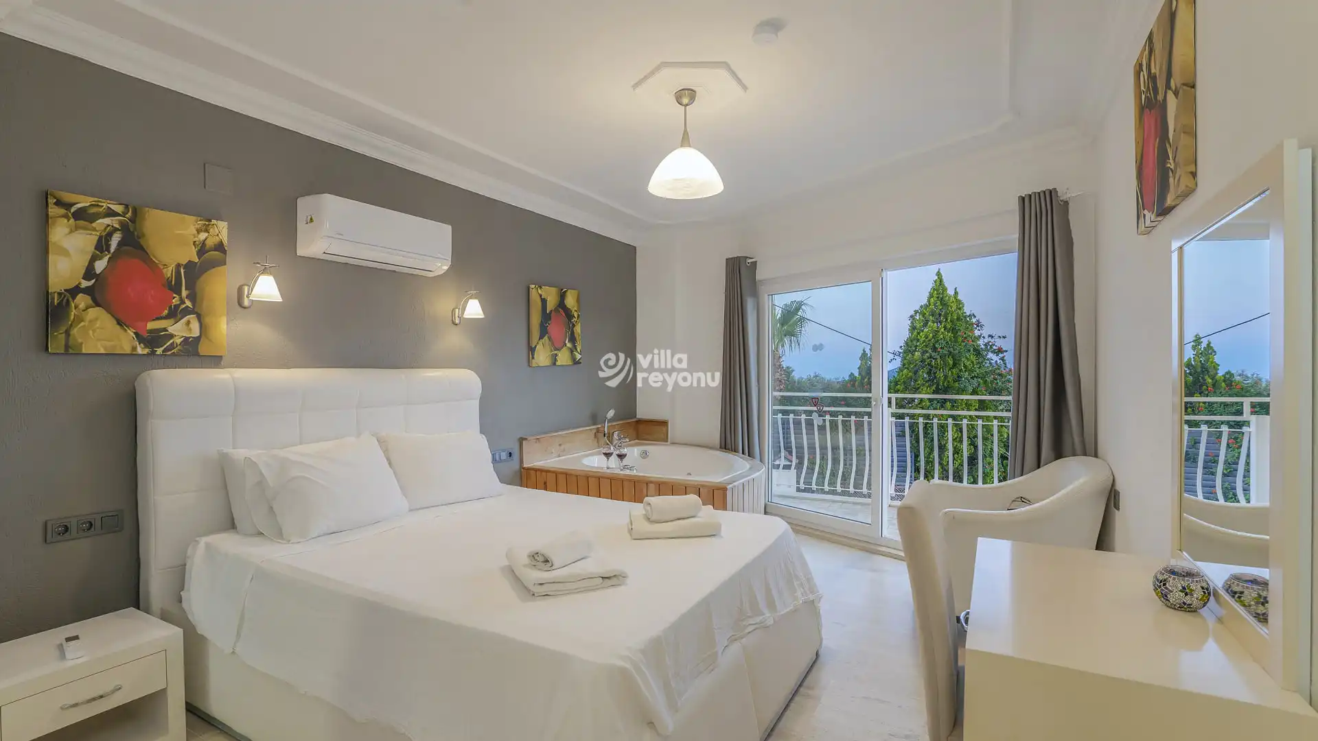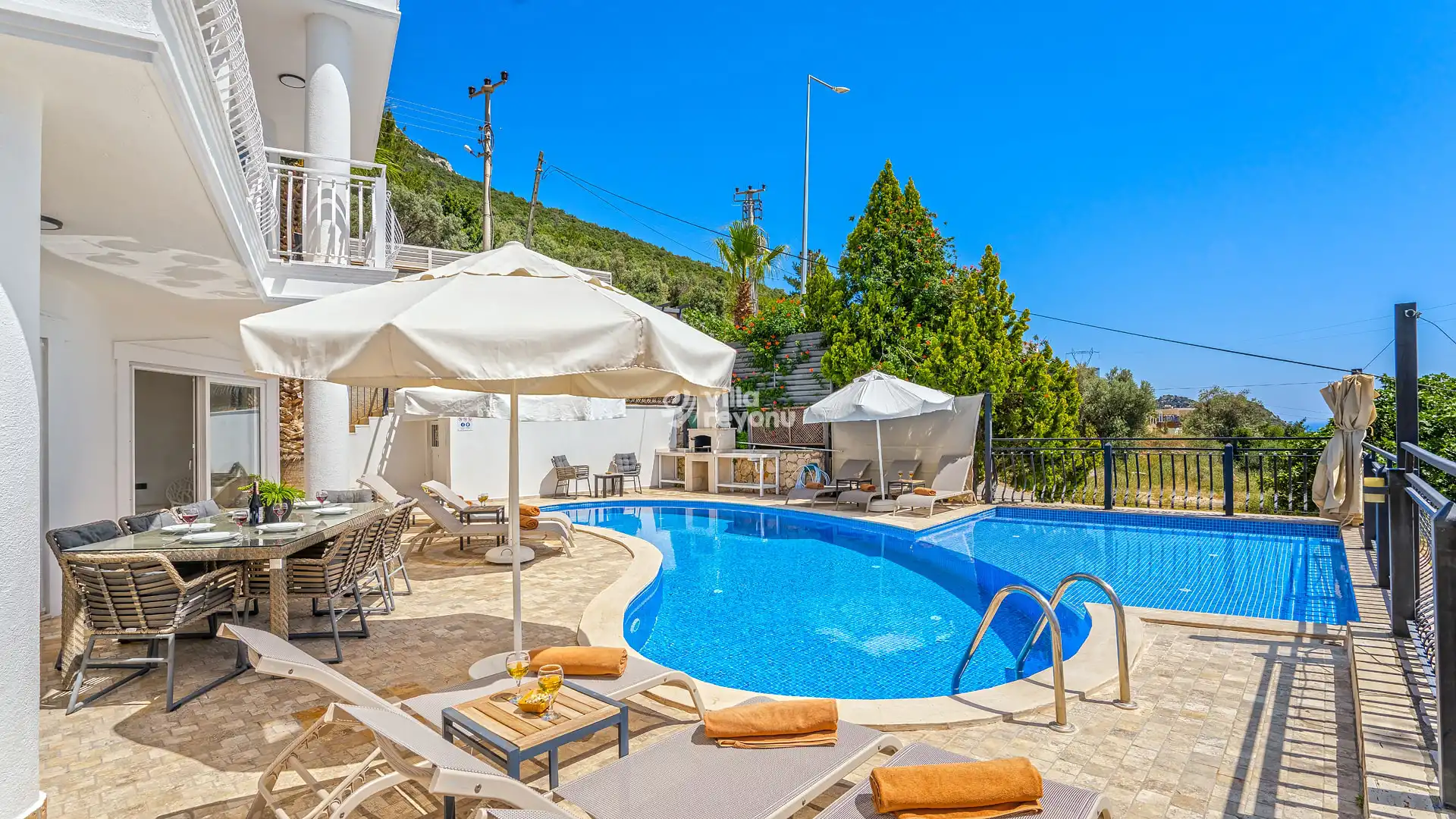 5 yatak odası, 5 banyo tuvalet bulunan villamız 10 kişilik konaklama kapasitesine sahiptir. 46 m2 tam korunaklı özel sonsuzluk havuzu, bahçe oturma takımı, salıncak, lüks yemek masası ve panoramik doğa ve deniz manzarasıyla görenleri büyülemektedir. Ebeveyn yatak odasında jakuzi yanı sıra odaya özel deniz manzaralı kapalı havuz, teras ve terasta oturma takımı bulunmaktadır. 2. yatak odasında ayrı bir 2. jakuzisi, salonunda şömine, bahçesinde barbeküsüyle ayrıcalıklı bir tatil yaşamak isteyenlere özel her detay düşünülerek tasarlandı.