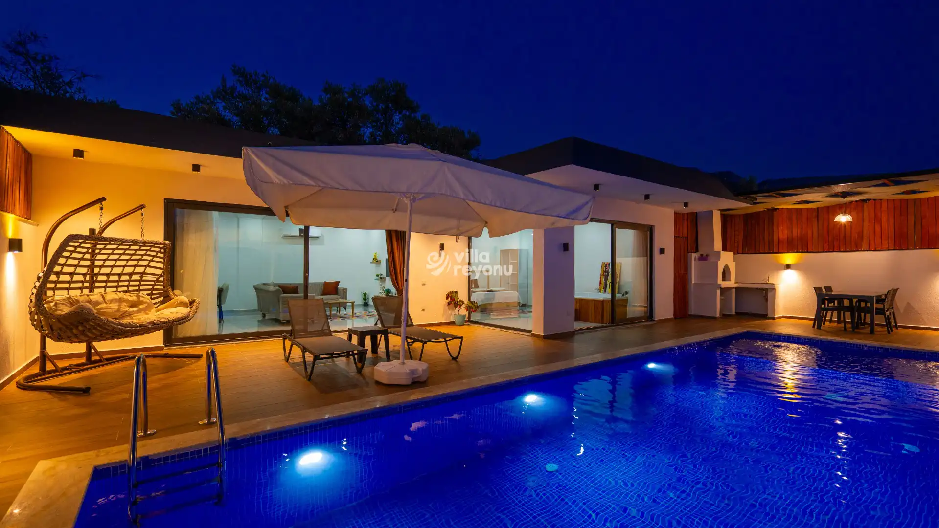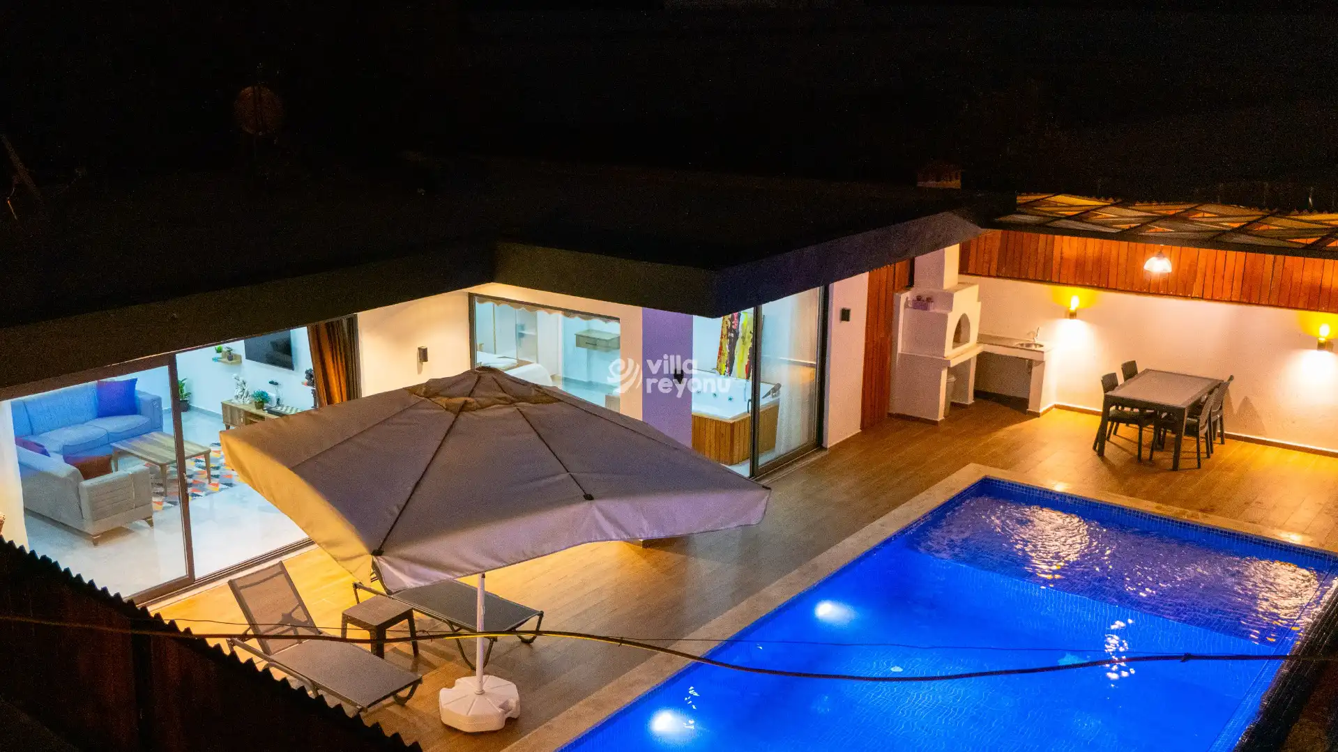 Kalkan merkeze ve plajlara kısa bir sürüş mesafesinde yer alan villa, hem doğayla baş başa kalabileceğiniz hem de dilediğiniz an sosyal yaşama kolayca ulaşabileceğiniz eşsiz bir tatil fırsatı sunmaktadır.