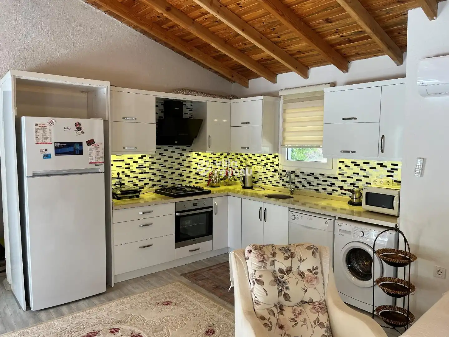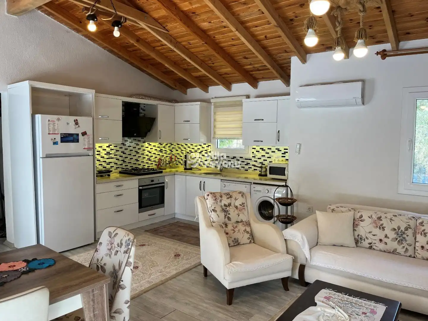 Bu evin resimleri sitemizde yer alan diğer evlerin resimleri gibi görüntüyü ekrana sığdırmak amacıyla, geniş açılı lens ve profesyonel fotoğraf makinaları ile çekilmektedir. Bu nedenle resimler üzerinde yer alan objeler gerçeğinden daha büyük olarak görülebilmektedir.