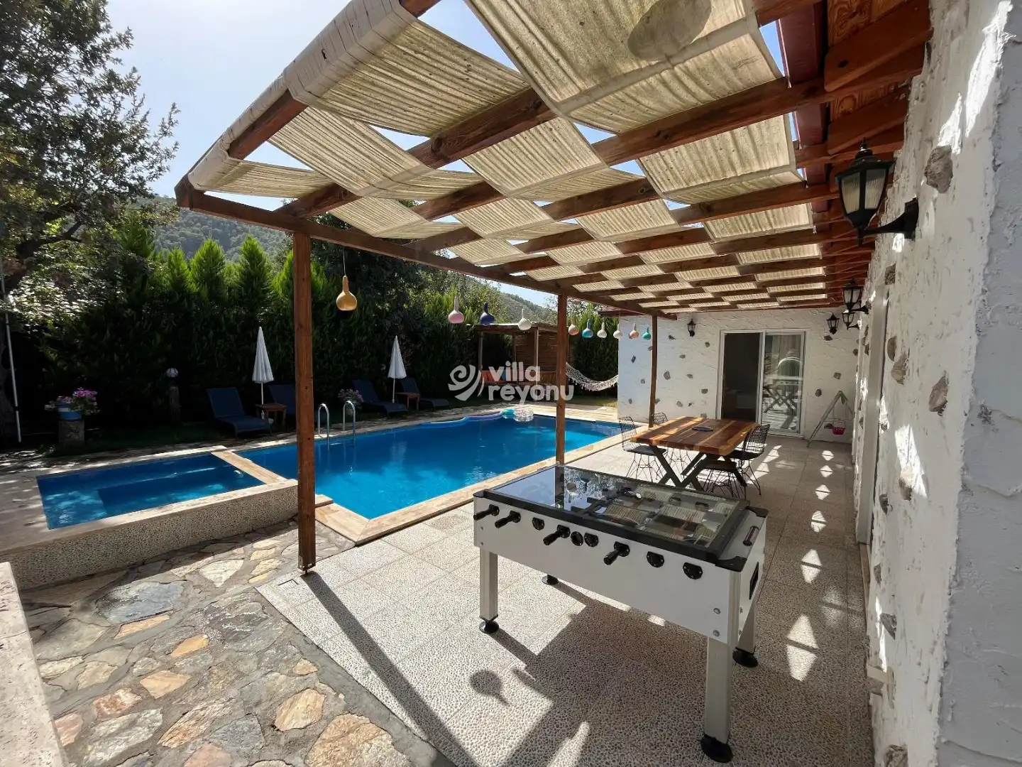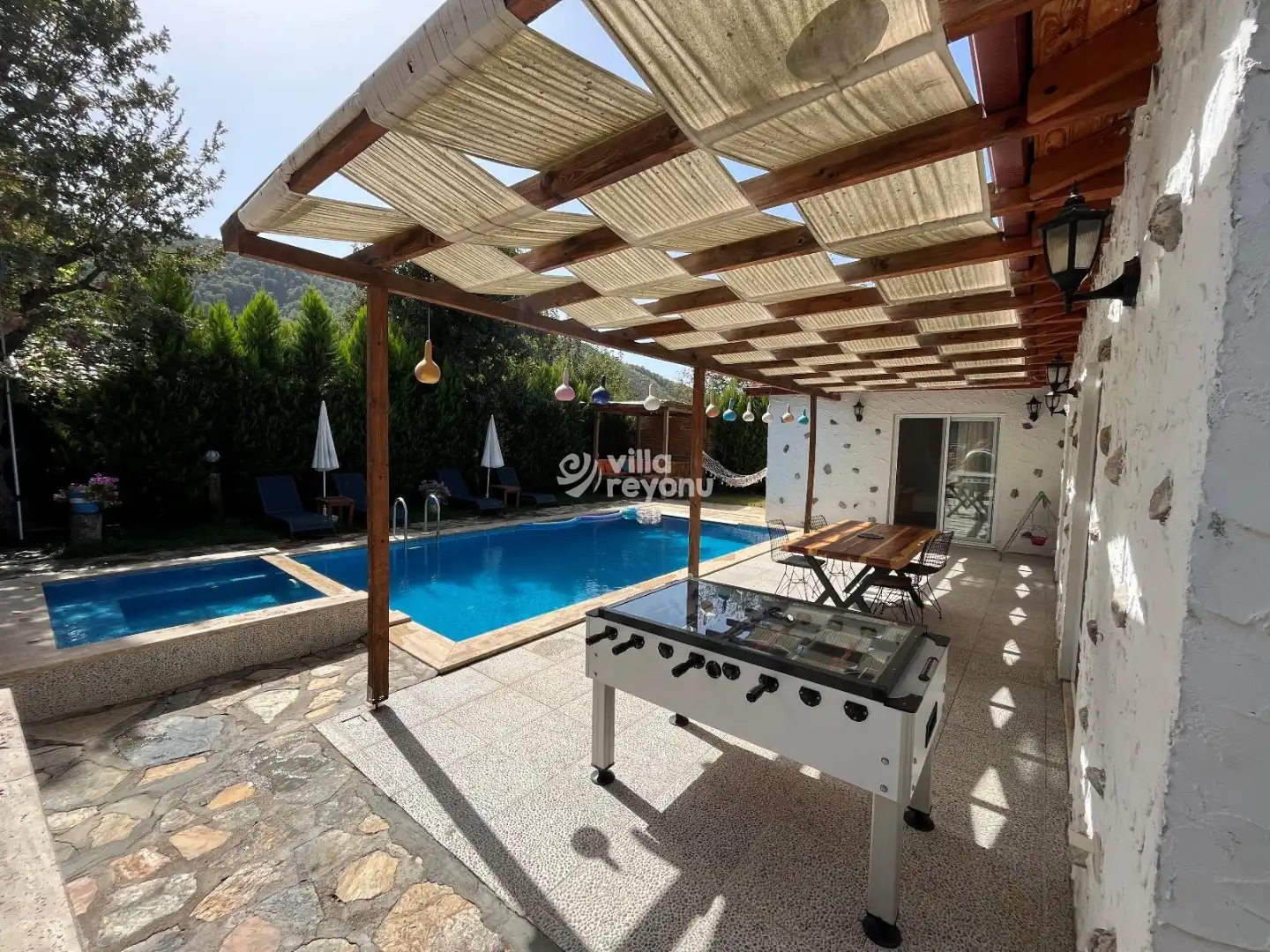 * Doğa içerisinde bulunan tüm villalarımızda düzenli olarak ilaçlama yapılmaktadır. Ancak yine de çevrede kelebek, böcek, sinek vb. bulunma ihtimali bulunmaktadır.