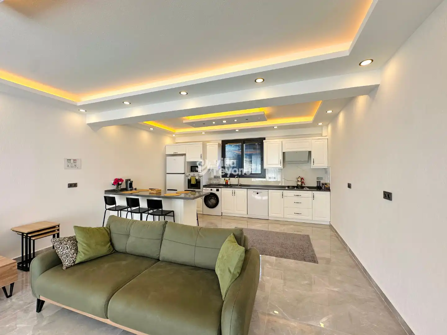 Bu evin resimleri sitemizde yer alan diğer evlerin resimleri gibi görüntüyü ekrana sığdırmak amacıyla, geniş açılı lens ve profesyonel fotoğraf makinaları ile çekilmektedir. Bu nedenle resimler üzerinde yer alan objeler gerçeğinden daha büyük olarak görülebilmektedir.