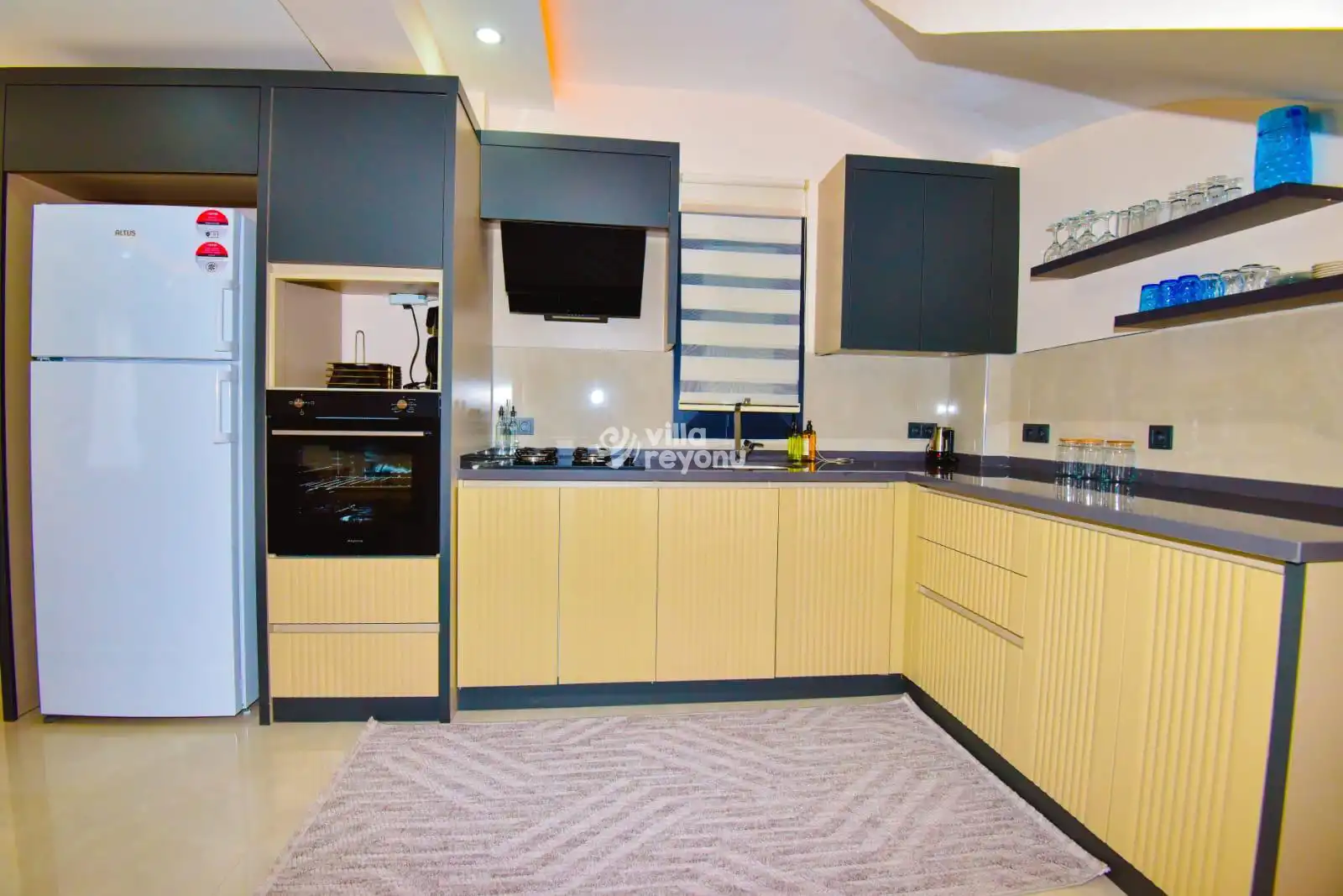 * Bu evin resimleri sitemizde yer alan diğer evlerin resimleri gibi görüntüyü ekrana sığdırmak amacıyla, geniş açılı lens ve profesyonel fotoğraf makinaları ile çekilmektedir. Bu nedenle resimler üzerinde yer alan objeler gerçeğinden daha büyük olarak görülebilmektedir.