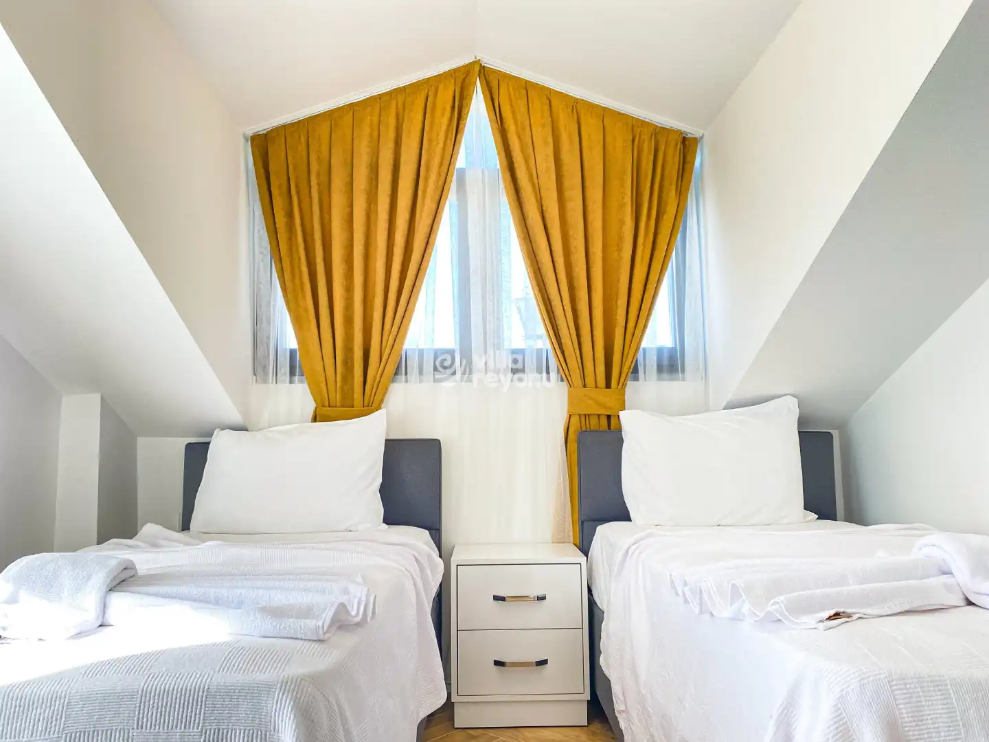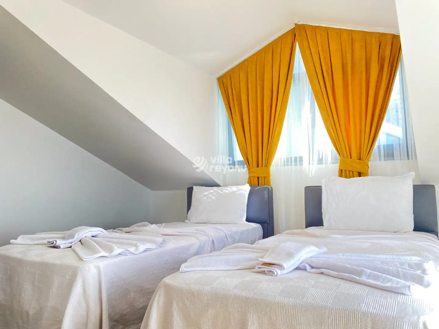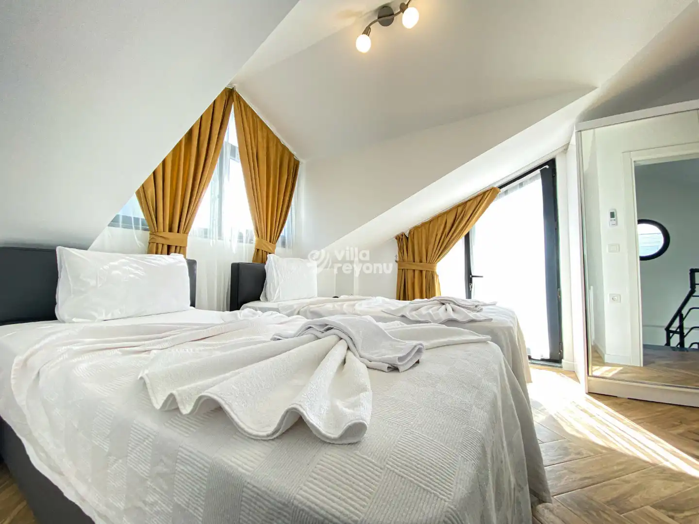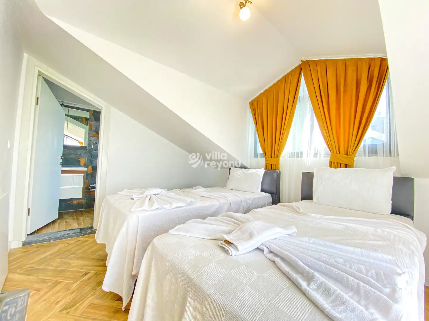 Özel yüzme havuzu ve yemyeşil manzarasıyla dikkat çeken villamız, geniş bahçesi ve ferah kullanım alanlarıyla konforlu bir konaklama imkânı sunar. 4 adet suit yatak odasına sahip olan villamız, toplamda 8 kişilik konaklama kapasitesiyle kalabalık aileler için oldukça uygundur. Her odada yer alan özel banyo, misafirlerimizin konforunu en üst seviyeye çıkarırken; modern tasarımı ve özenle seçilmiş detaylarıyla villa, rahatlık ve şıklığı bir arada sunar.