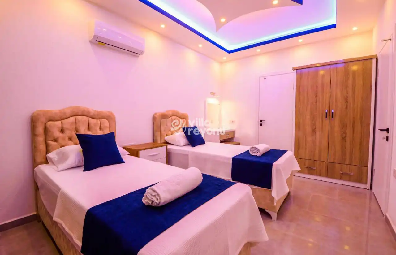 2 yatak odalı Villa Orlais, 4 kişiye kadar konaklama imkânı sunarak ailenizle konforlu ve rahat bir tatilin kapılarını açıyor. Ebeveyn odasında yer alan iki kişilik jakuzi, günün yorgunluğunu atmanız ve kendinize özel zaman yaratmanız için harika bir ayrıcalık sunuyor.
