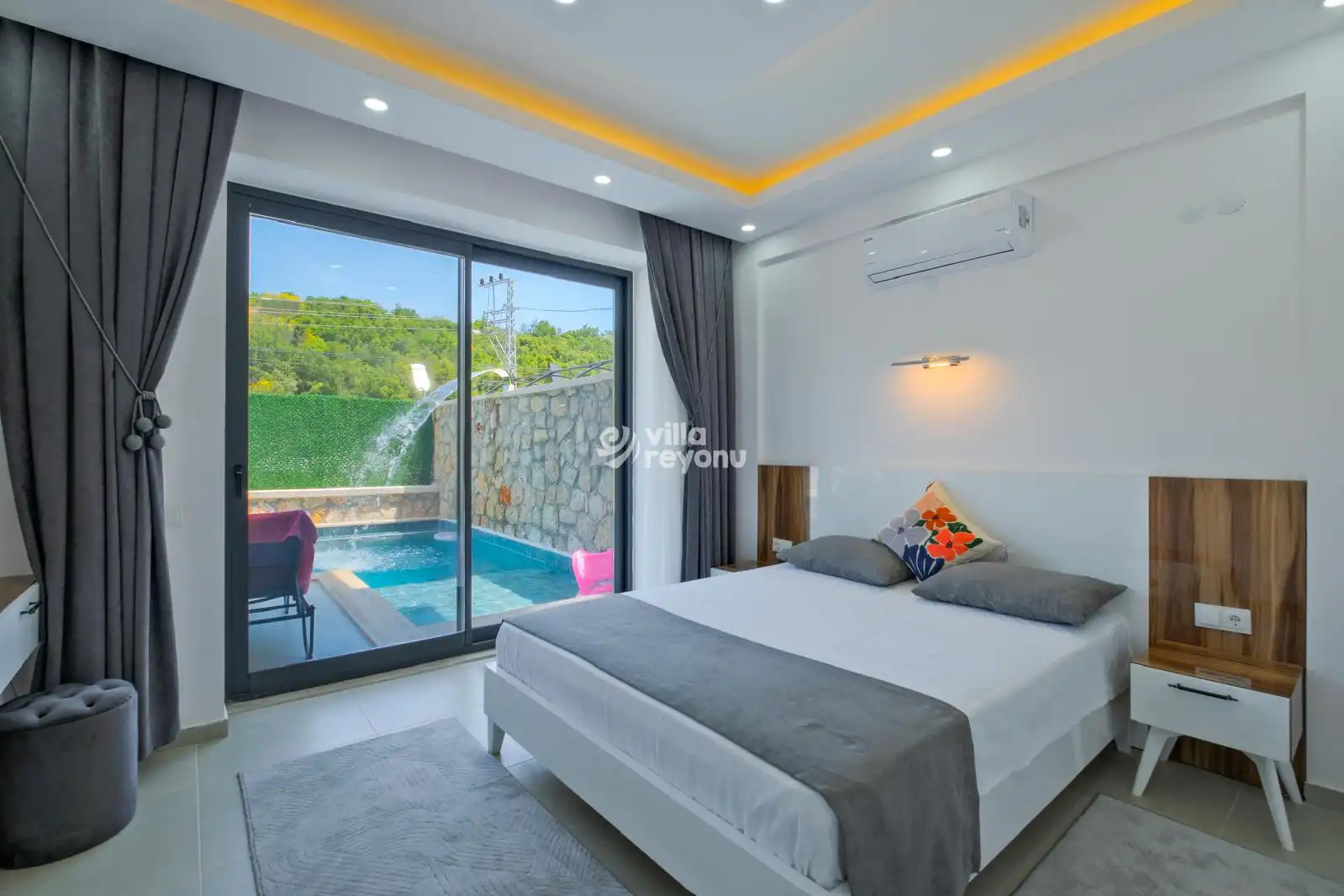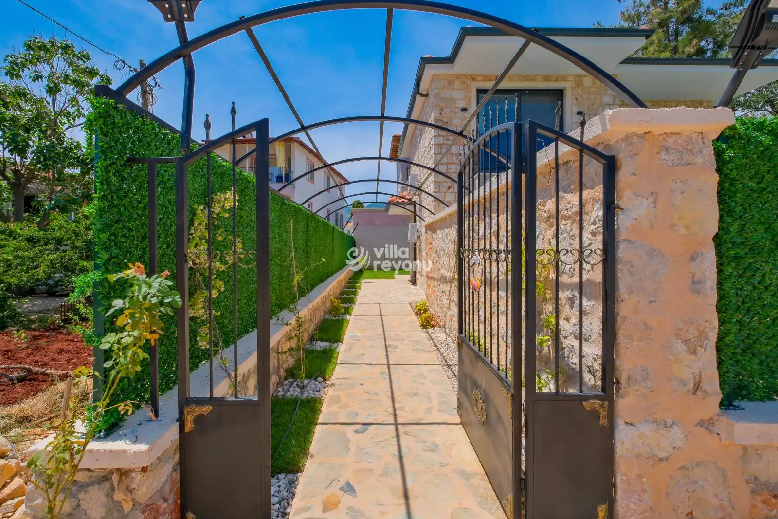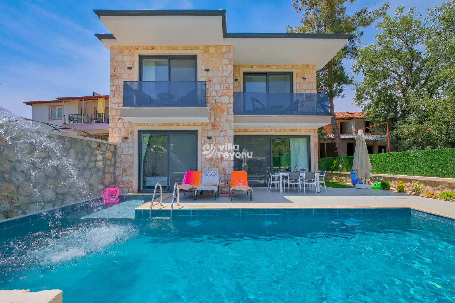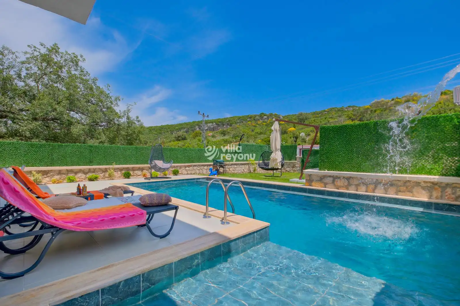 Dış alanda yer alan 9x4 metre büyüklüğündeki özel yüzme havuzu ve çocuk havuzu, yaz aylarında serinlemenin keyfini çıkarabileceğiniz alanlar sunar. Havuz alanı tamamen korunaklı olup dışarıdan görünmemektedir. Taş duvarlarla çevrili geniş bahçesi, oturma alanları ve barbekü köşesiyle doğanın içinde keyifli vakitler geçirmeniz için idealdir.Villa Ormeya, mahremiyet ve huzur arayan misafirler için sessiz bir bölgede konumlanmıştır. Özel otopark alanı sayesinde aracınızı güvenle park edebilirsiniz. Villaya girişte 15 basamak bulunduğunu da bilgi amaçlı olarak belirtmek isteriz.