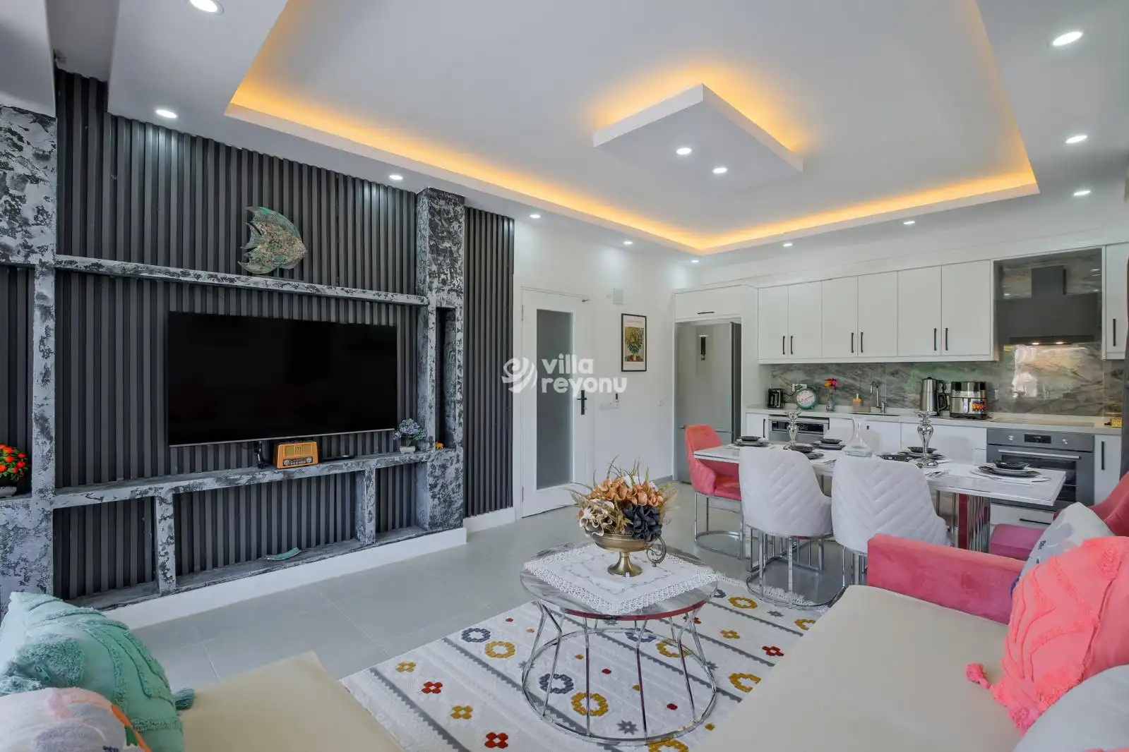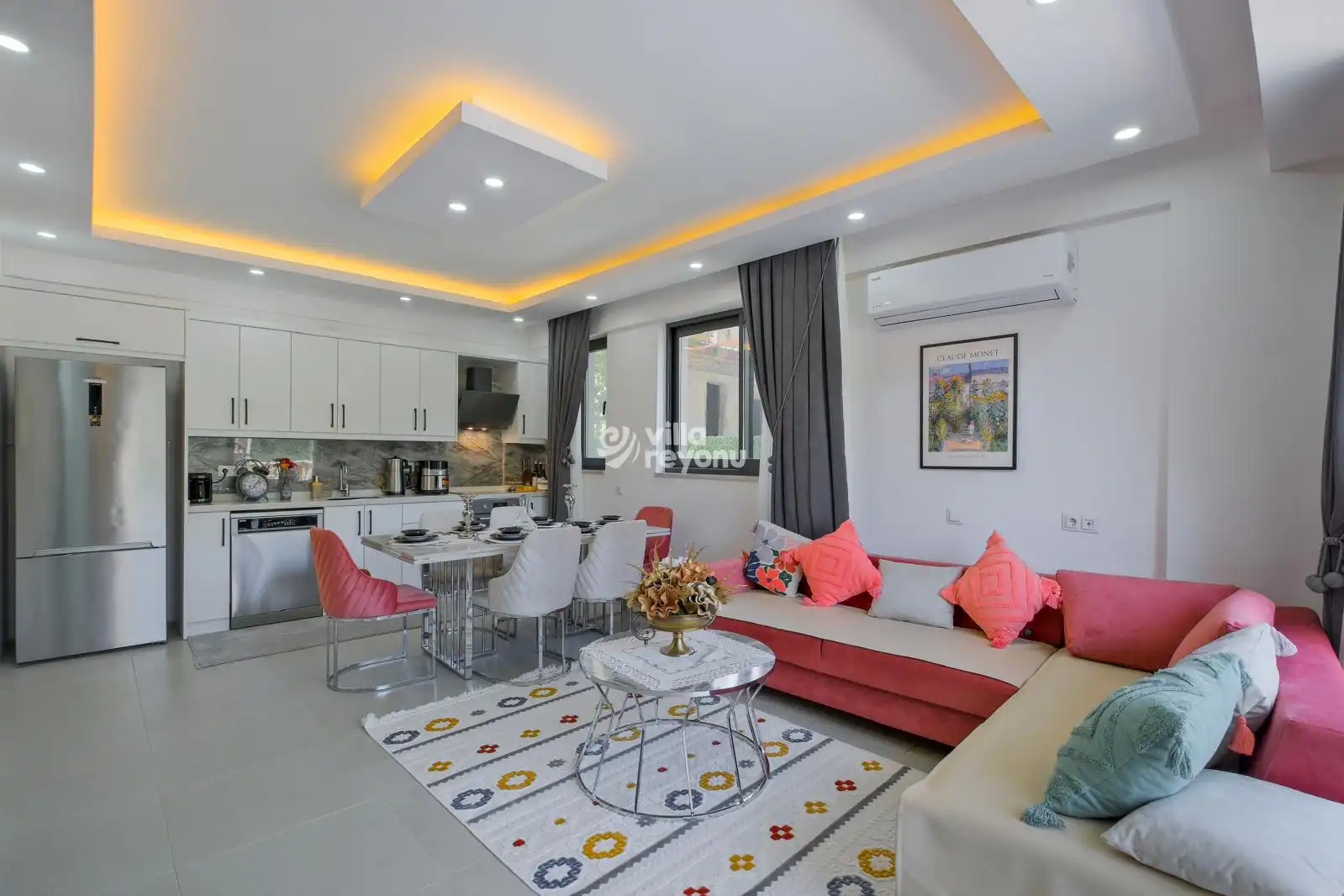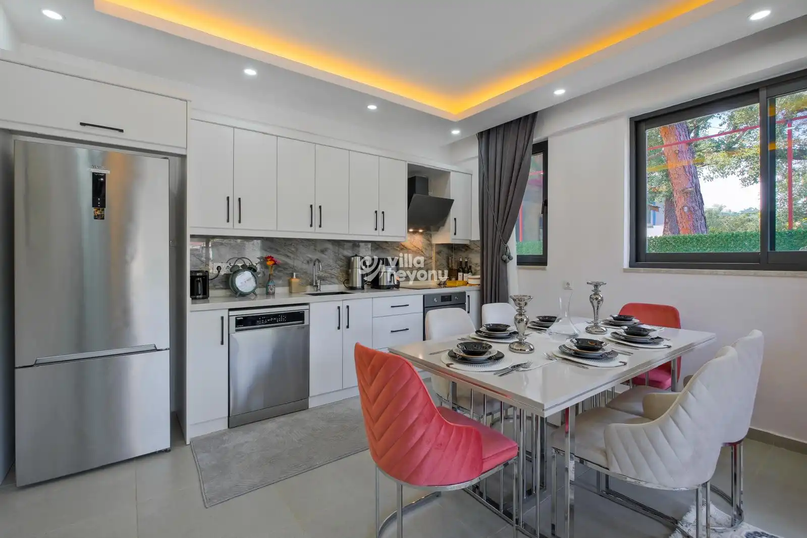 * Bu evin resimleri sitemizde yer alan diğer evlerin resimleri gibi görüntüyü ekrana sığdırmak amacıyla, geniş açılı lens ve profesyonel fotoğraf makinaları ile çekilmektedir. Bu nedenle resimler üzerinde yer alan objeler gerçeğinden daha büyük olarak görülebilmektedir.