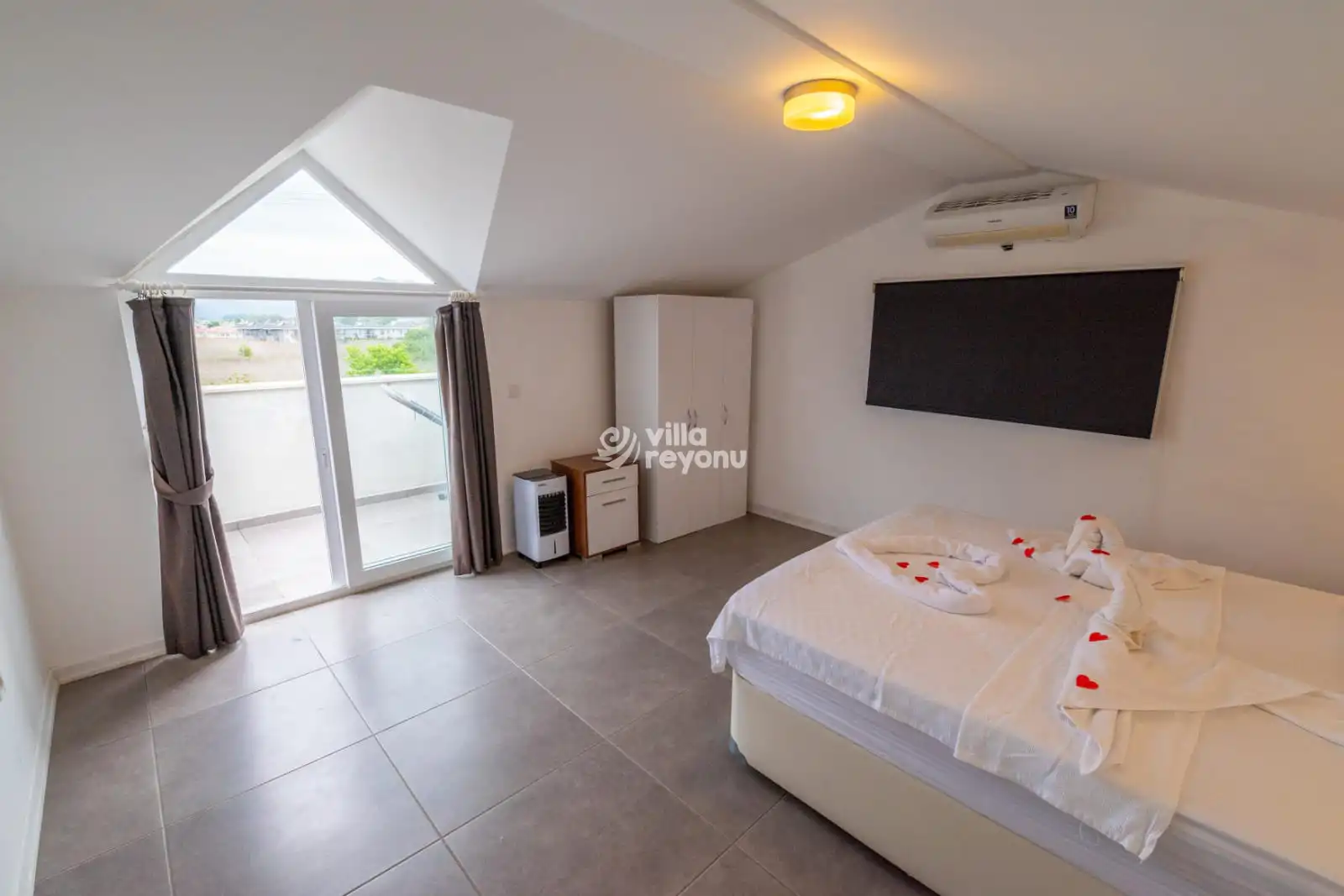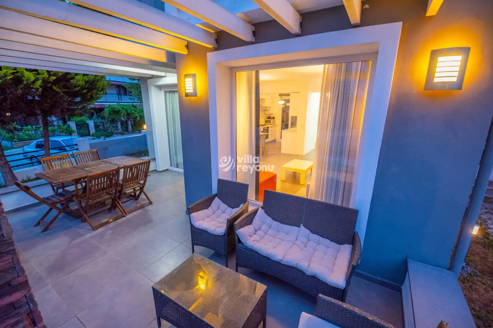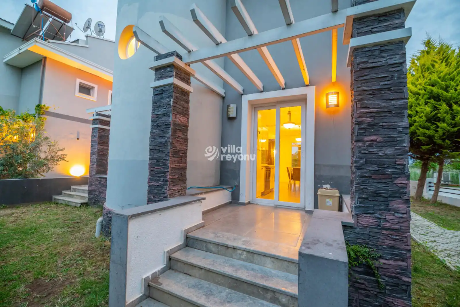 Villanın geniş bahçesi içerisinde yer alan özel yüzme havuzu, gün boyu güneşlenmek veya serinlemek için mükemmel bir alan oluşturur. İç mekânda ise tam donanımlı mutfak, ferah oturma alanı ve modern dekorasyon detaylarıyla dikkat çeken konforlu yatak odaları bulunur. Tüm alanlar, misafirlerin ihtiyaçlarını karşılayacak şekilde özenle tasarlanmıştır.