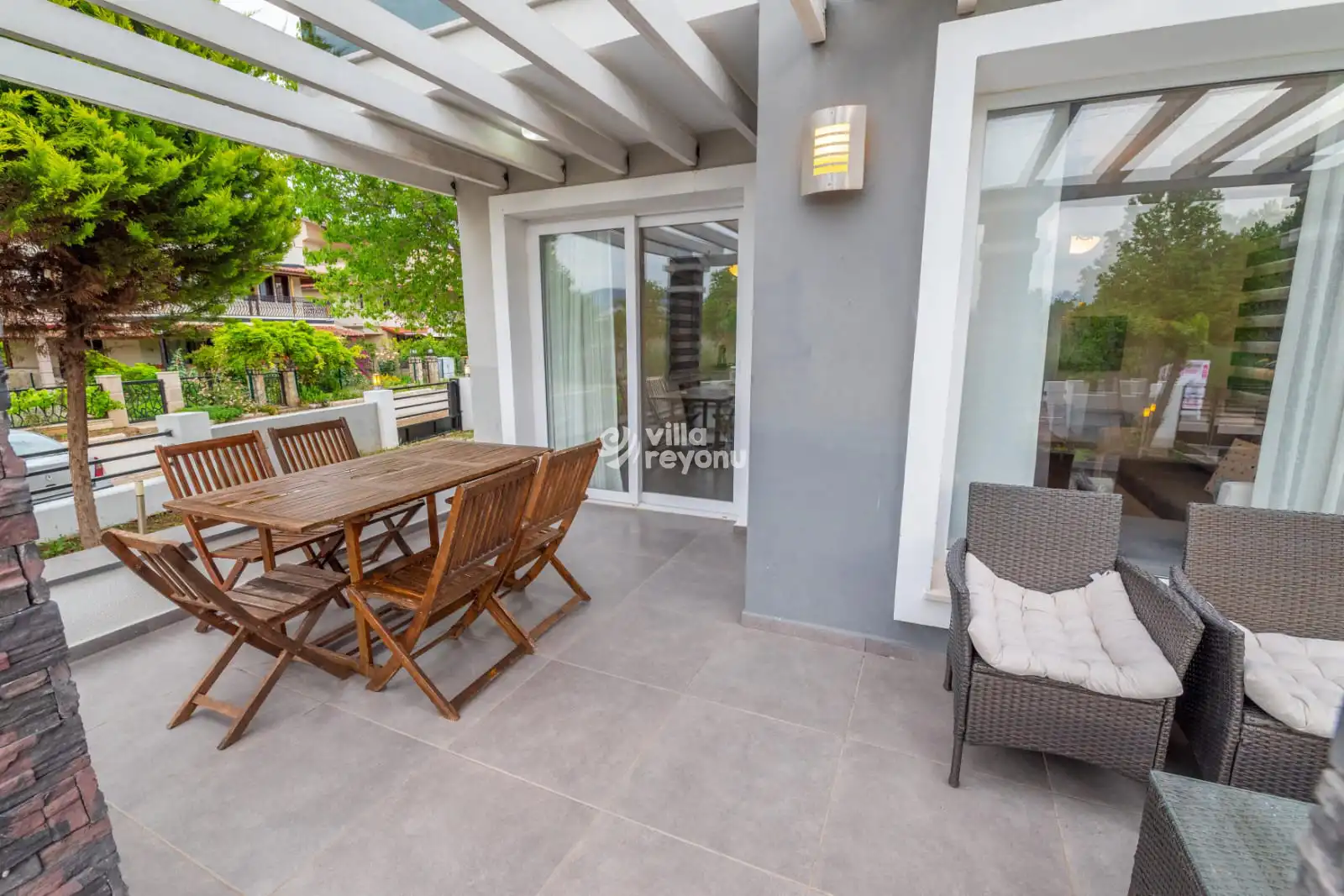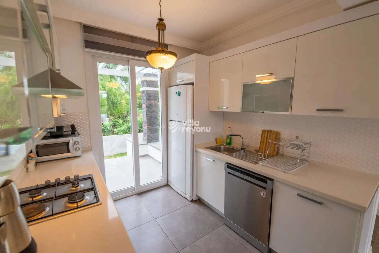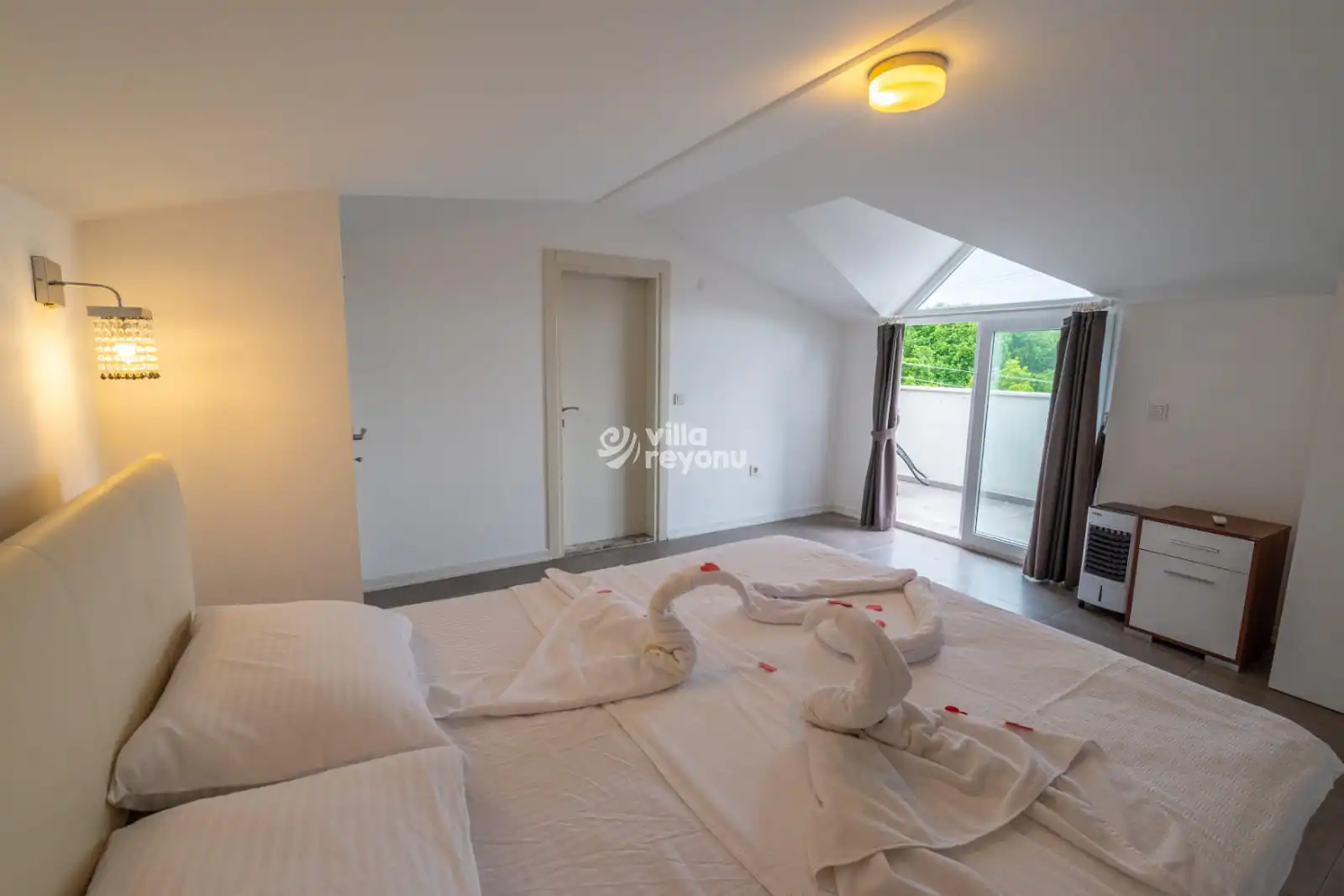 Villanın geniş bahçesi içerisinde yer alan özel yüzme havuzu, gün boyu güneşlenmek veya serinlemek için mükemmel bir alan oluşturur. İç mekânda ise tam donanımlı mutfak, ferah oturma alanı ve modern dekorasyon detaylarıyla dikkat çeken konforlu yatak odaları bulunur. Tüm alanlar, misafirlerin ihtiyaçlarını karşılayacak şekilde özenle tasarlanmıştır.