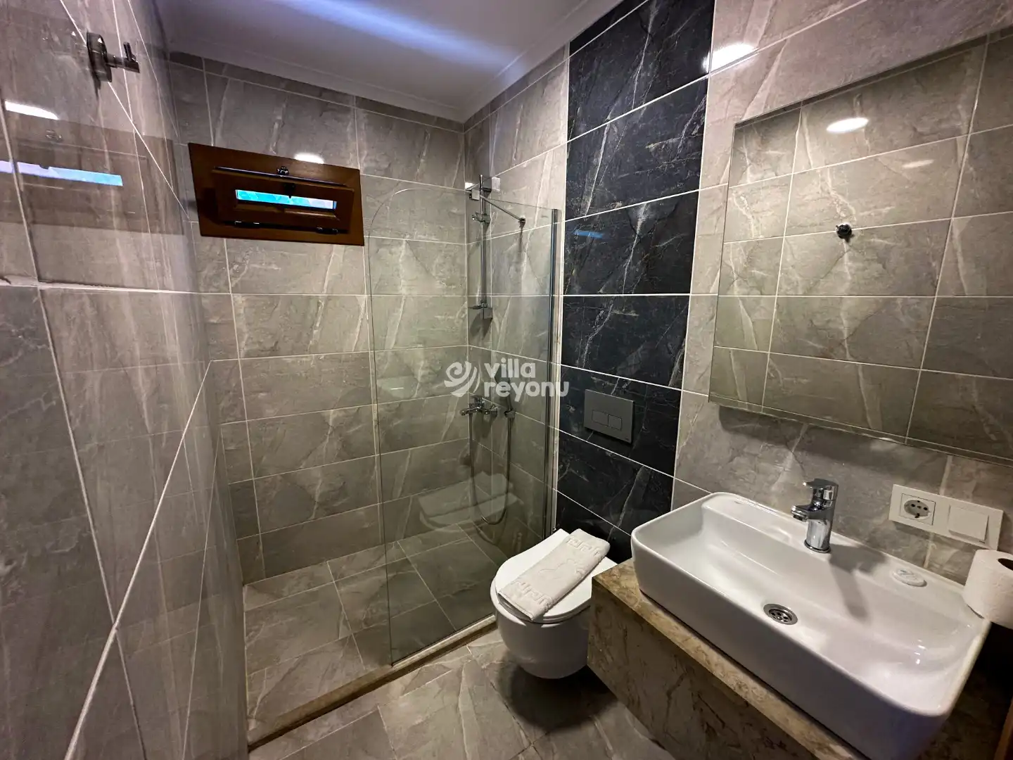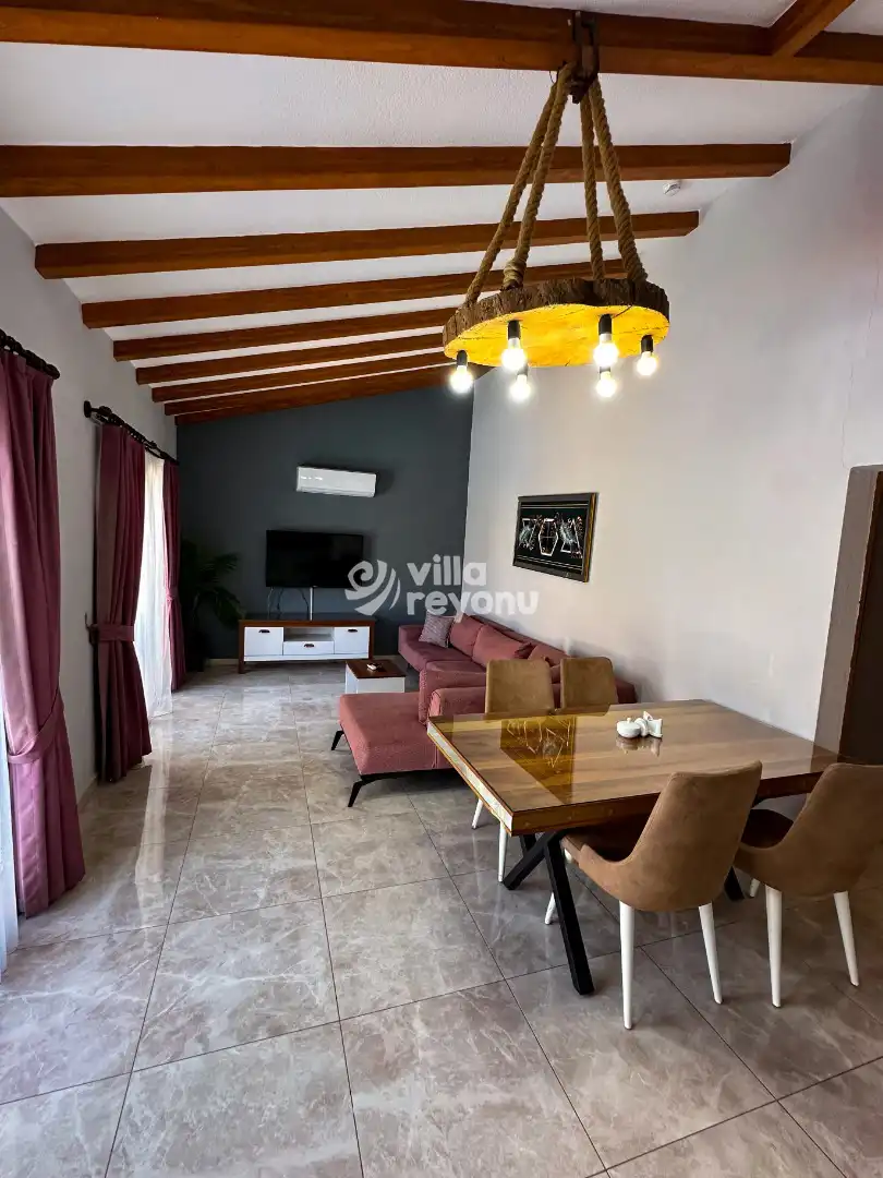 Geniş salonunda modern oturma grubu ve TV yer alırken, tamamen korunaklı özel yüzme havuzu da mahremiyete önem veren misafirler için büyük avantaj sağlar. Villa Orvion 1, toplamda 18 bağımsız villadan oluşan büyük bir villa kompleksinin parçasıdır. Kompleks içinde; 10 adet 3 odalı, 6 adet 2 odalı ve 2 adet 1 odalı villa yer almakta olup, yakın konumda birden fazla villa kiralamak isteyen aileler için son derece uygundur.