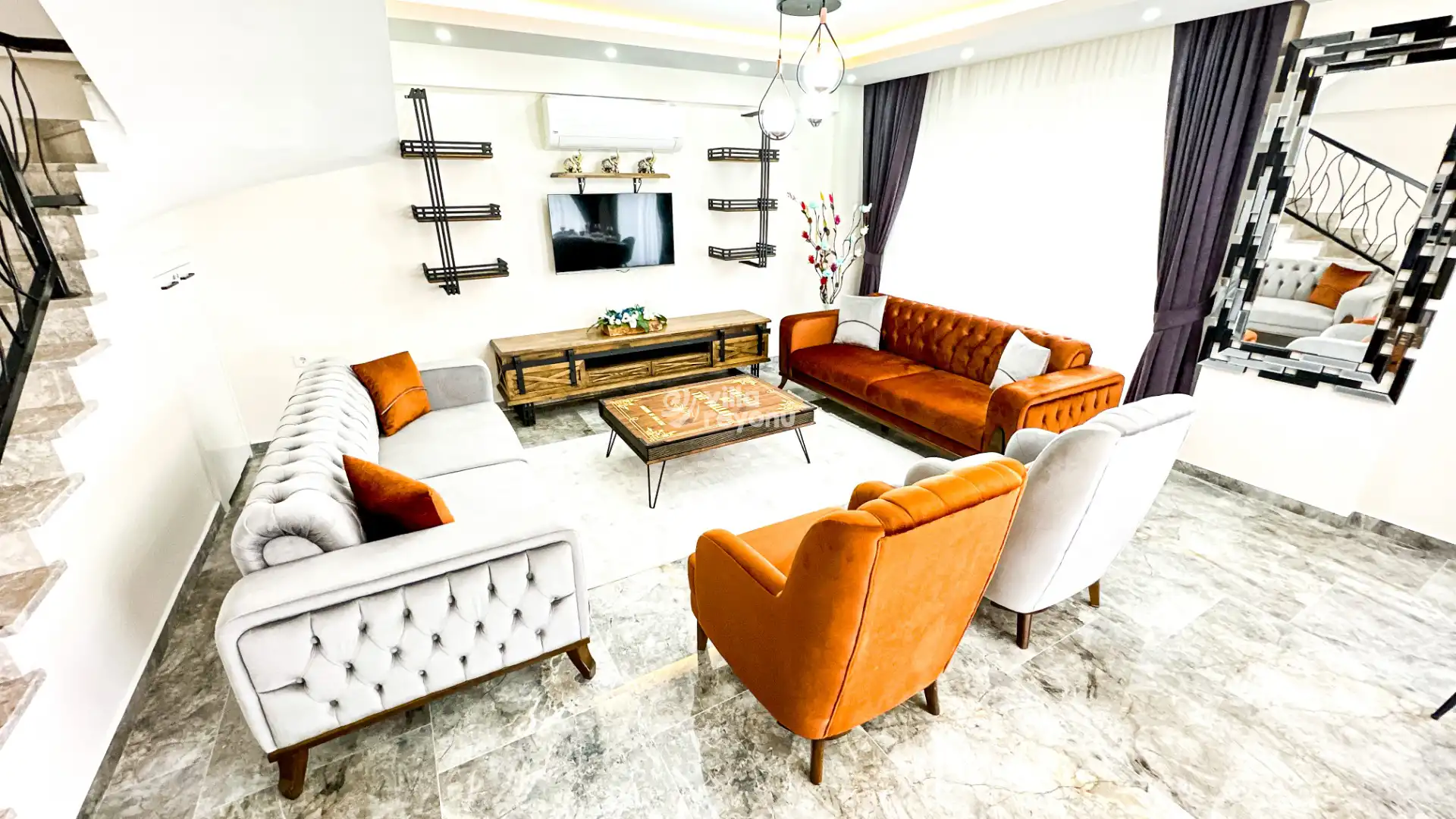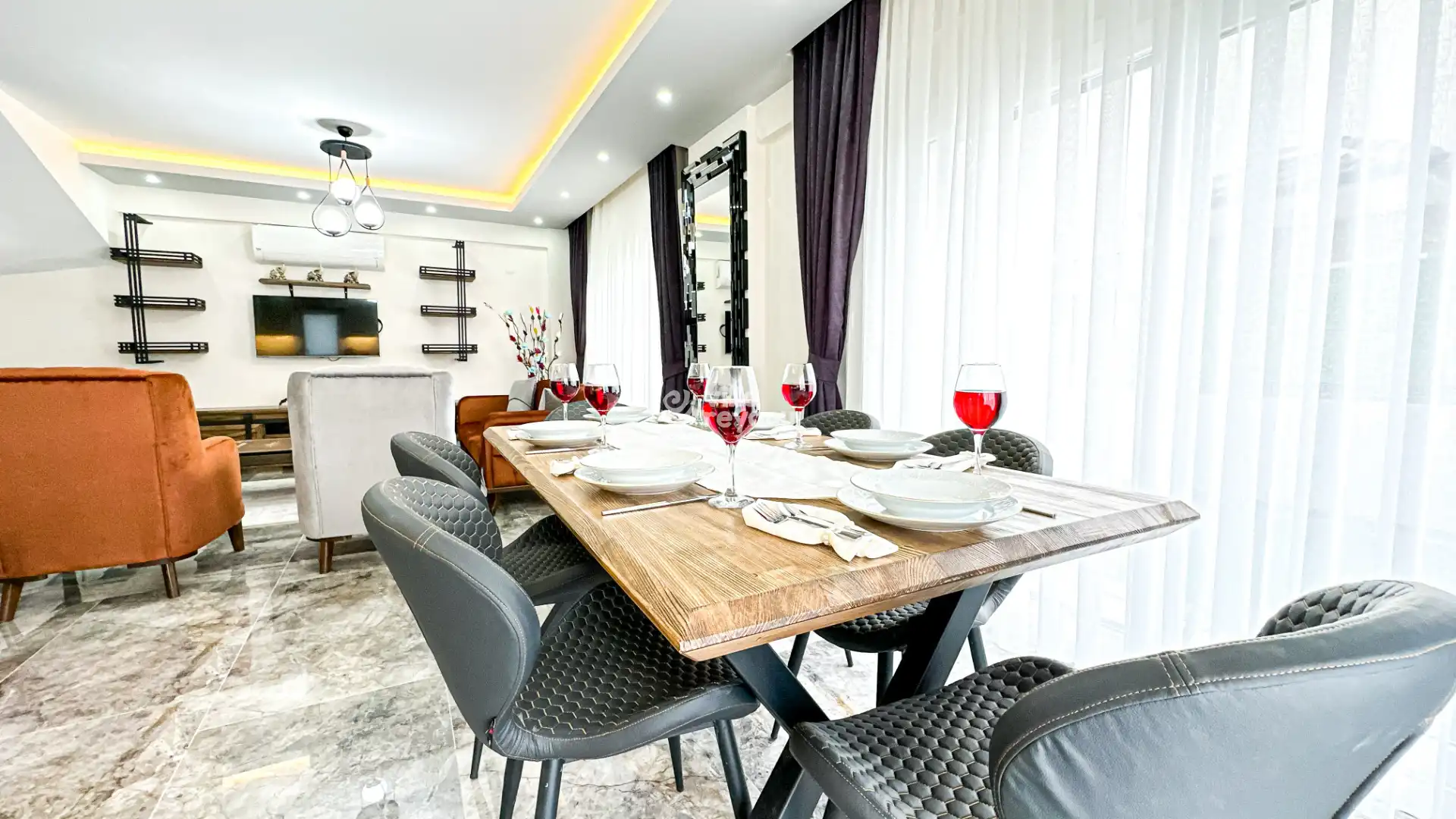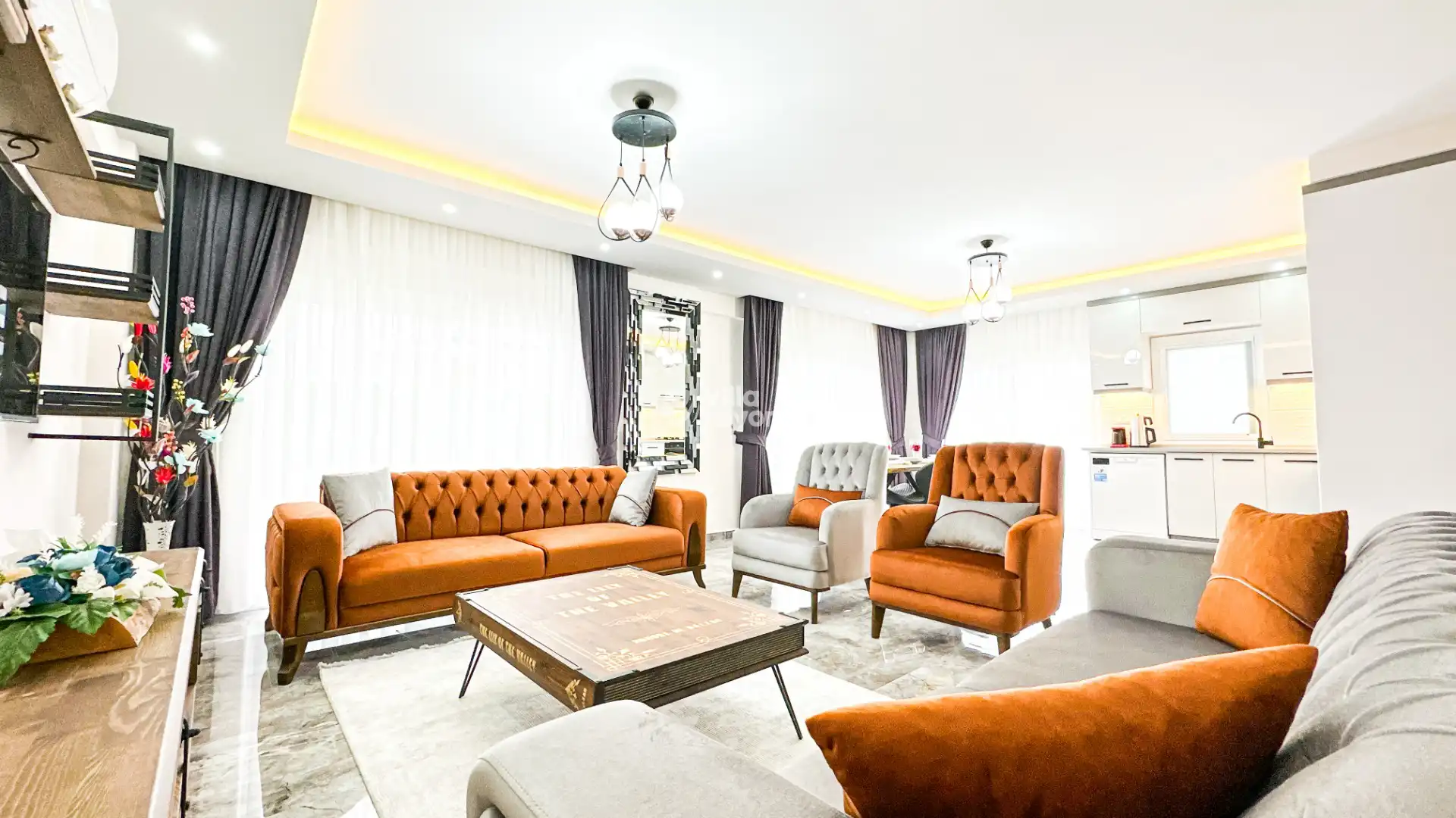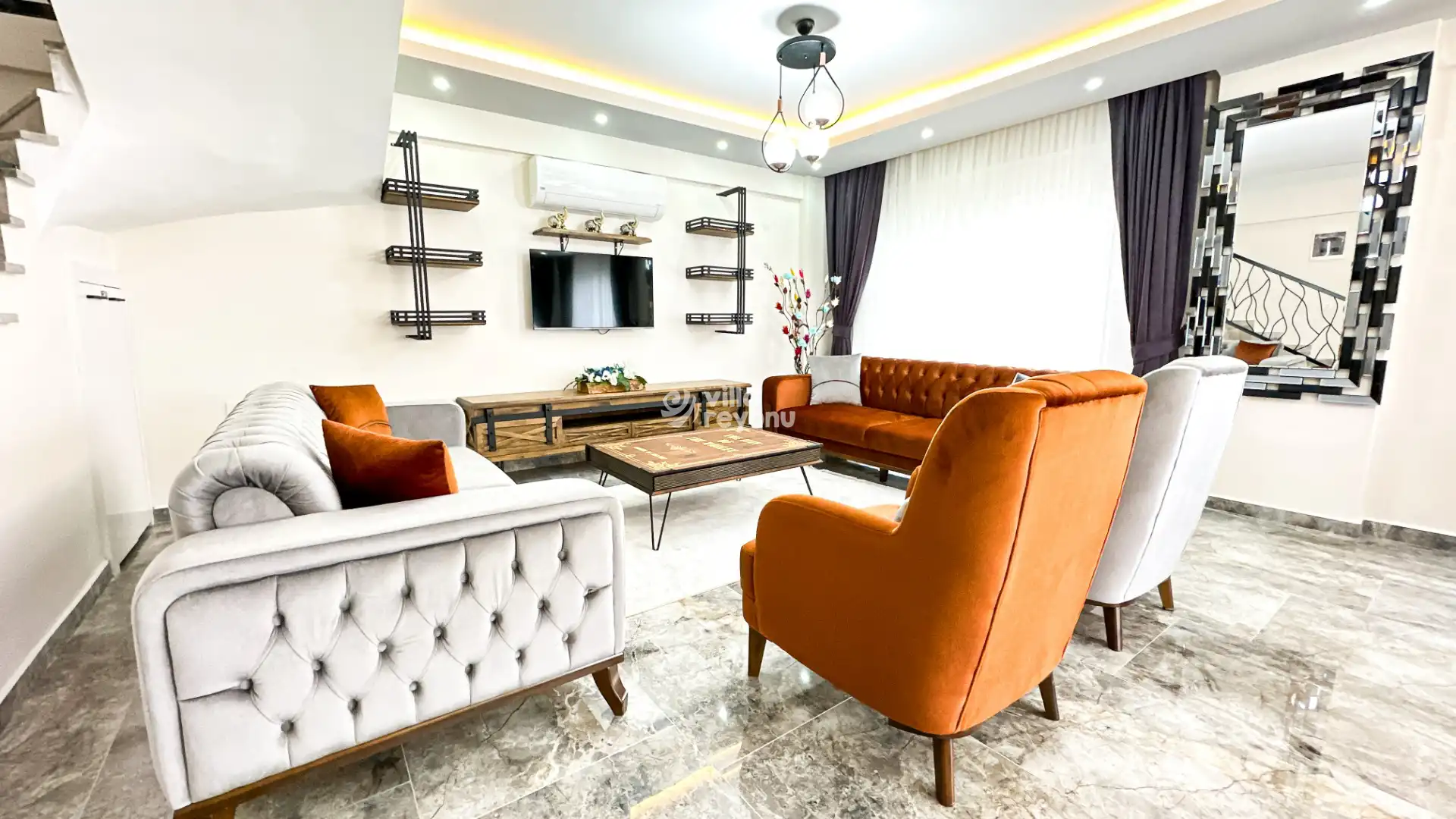 Bu evin resimleri sitemizde yer alan diğer evlerin resimleri gibi görüntüyü ekrana sığdırmak amacıyla, geniş açılı lens ve profesyonel fotoğraf makinaları ile çekilmektedir. Bu nedenle resimler üzerinde yer alan objeler gerçeğinden daha büyük olarak görülebilmektedir.