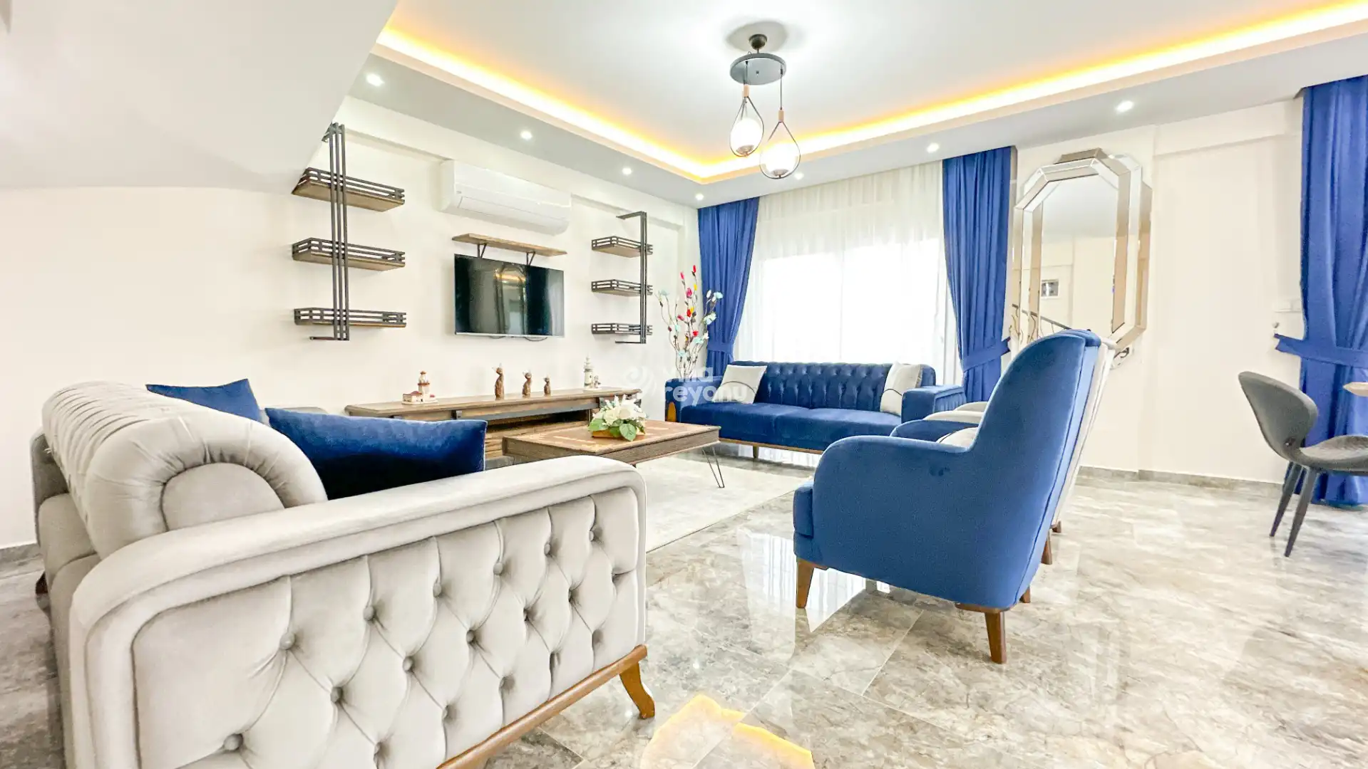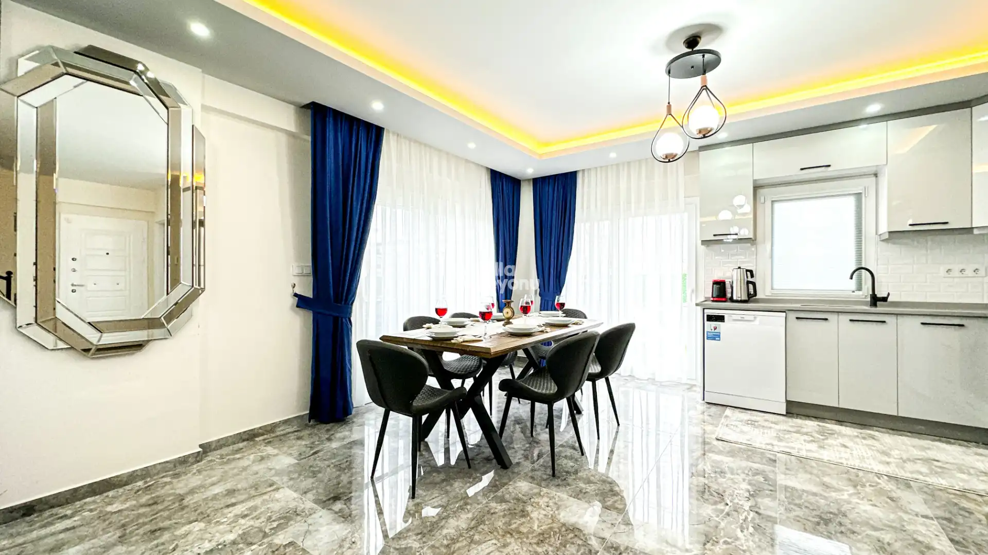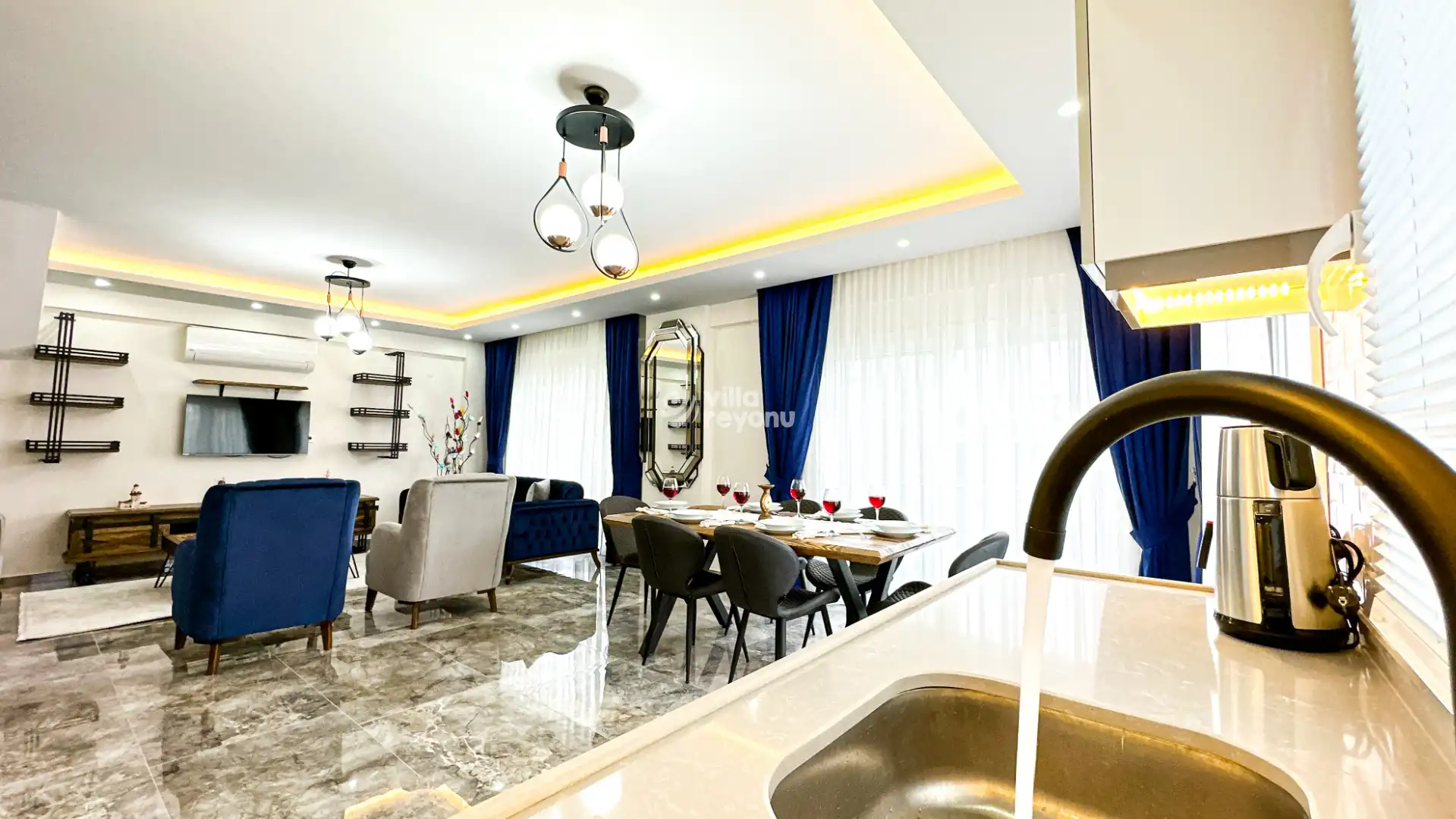 Bu evin resimleri sitemizde yer alan diğer evlerin resimleri gibi görüntüyü ekrana sığdırmak amacıyla, geniş açılı lens ve profesyonel fotoğraf makinaları ile çekilmektedir. Bu nedenle resimler üzerinde yer alan objeler gerçeğinden daha büyük olarak görülebilmektedir.