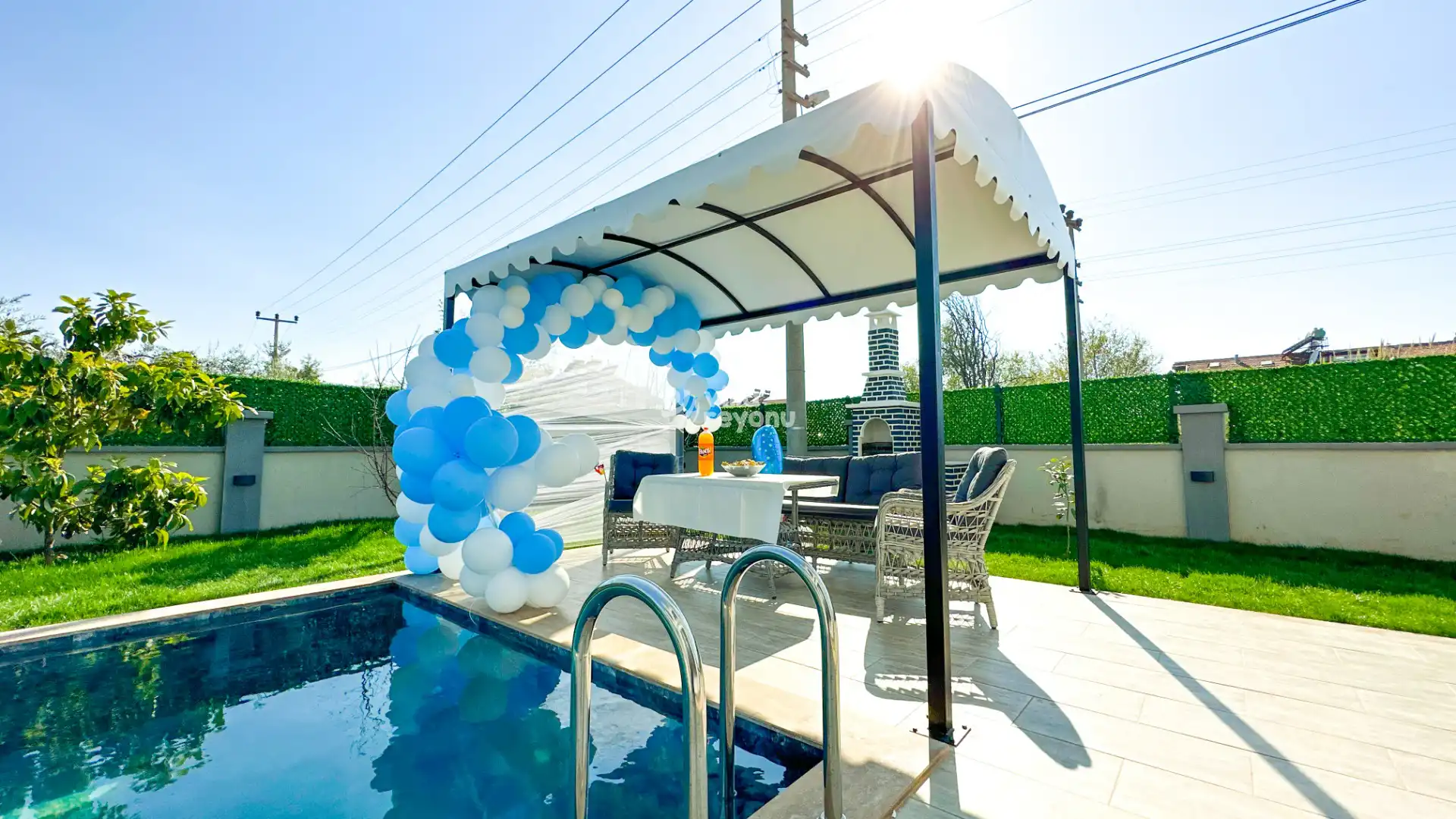 * Doğa içerisinde bulunan tüm villalarımızda düzenli olarak ilaçlama yapılmaktadır. Ancak yine de çevrede kelebek, böcek, sinek vb. bulunma ihtimali bulunmaktadır.