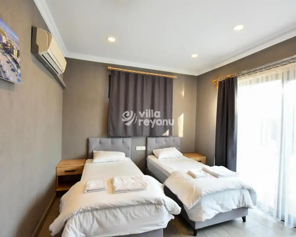 Villa Palmview, Fethiye'nin merkezi konumunda yer alan zarif ve modern bir villadır. Her detayın titizlikle düşünüldüğü bu villada, 2 yatak odası ve 1 amerikan mutfak bulunmaktadır. Ebeveyn yatak odasında yer alan jakuzi özellikli ısıtmalı kapalı havuz, size benzersiz bir konfor ve rahatlama deneyimi sunmaktadır. Villamızın havuzu ve terası korunaklıdır, bu da muhafazakar aileler için ideal bir seçenek sunmaktadır. Doğanın içinde huzurlu bir konumda yer alan villamız, sizlere şehrin gürültüsünden uzaklaşarak dinlenme fırsatı sunmaktadır.