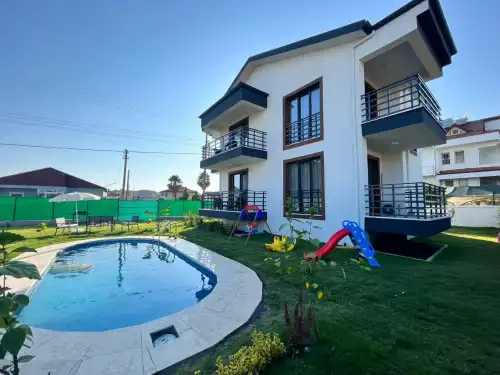 Villa Pinos, ülkemizin güzide tatil bölgelerinden Fethiye'de bulunan, Çalış Plajı'na 700 metre mesafede bulunan 2 katlı lüks villamızdır. 4 süit yatak odası, 1 ebeveyn banyosu, 3 banyosu bulunan villamız 6 kişilik konaklama kapasitesiyle geniş aileler için ideal bir seçenek olarak öne çıkmaktadır. Villamızda yerden ısıtma sistemi de bulunmaktadır. Çocuk oyun alanında su kaydırağı da bulunan villamız 6 adet de balkona sahiptir. Korunaklı geniş bahçesinde ister güneşlenip, ister havuzun tadını çıkarırken; yaz aylarının vazgeçilmezi barbeküyle tatil keyfinizi ikiye katlayabilirsiniz. Villamız gözlerden uzak ve huzurlu bir tatil geçirmek isteyen misafirlerini bekliyor.