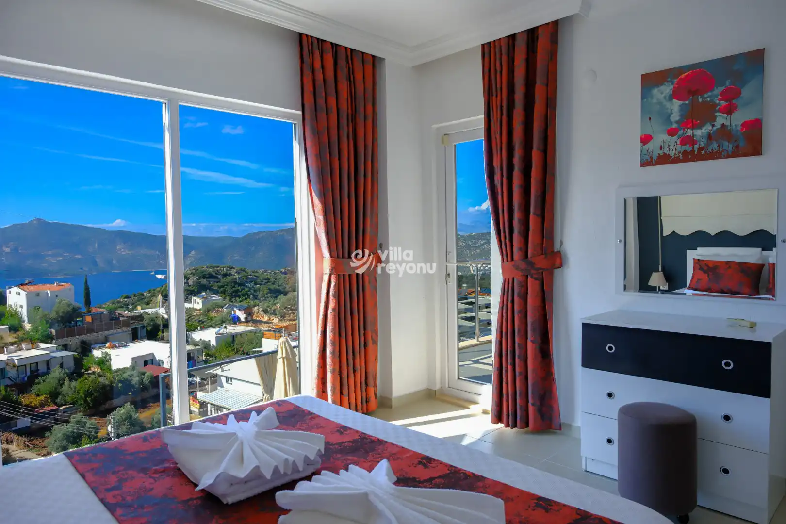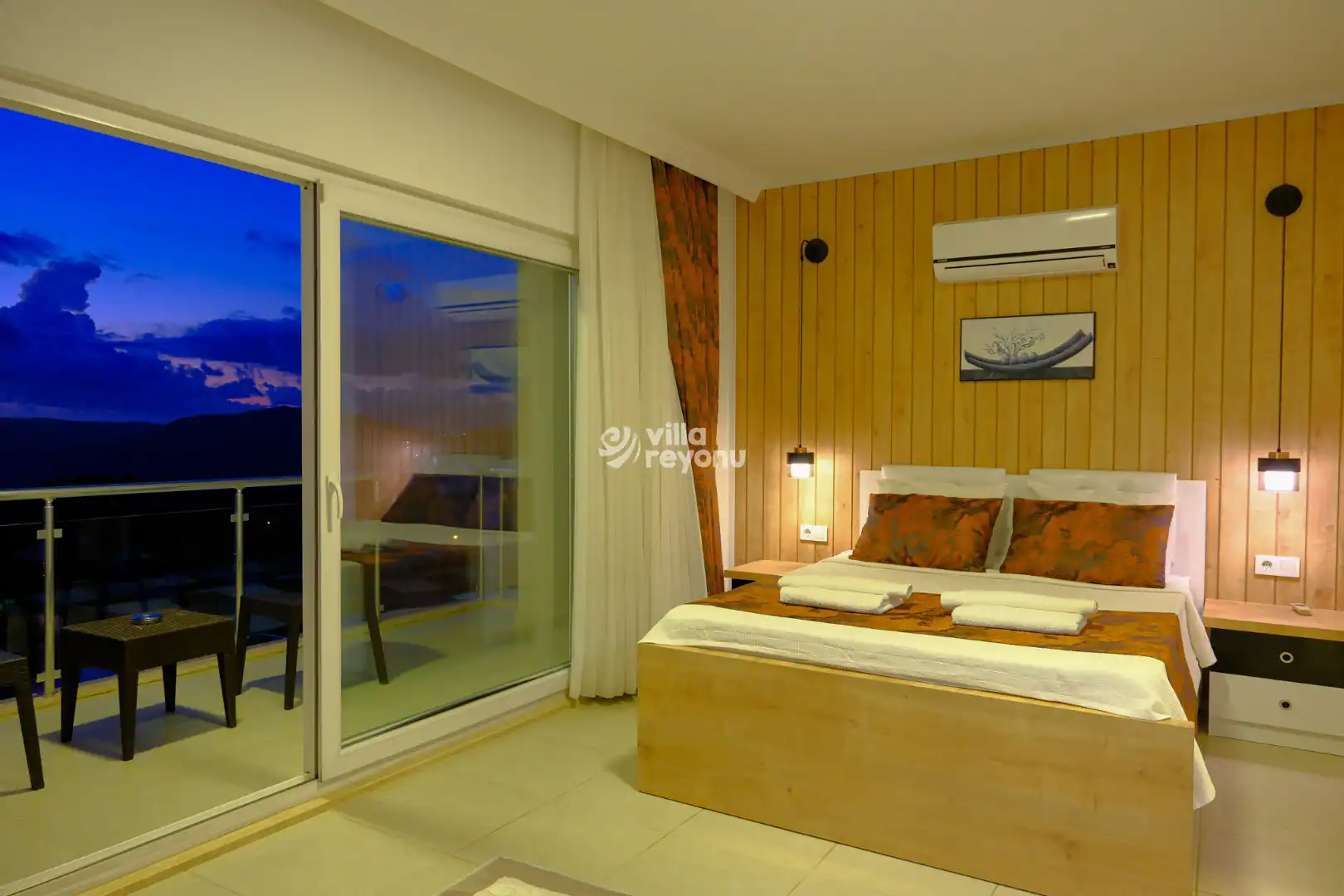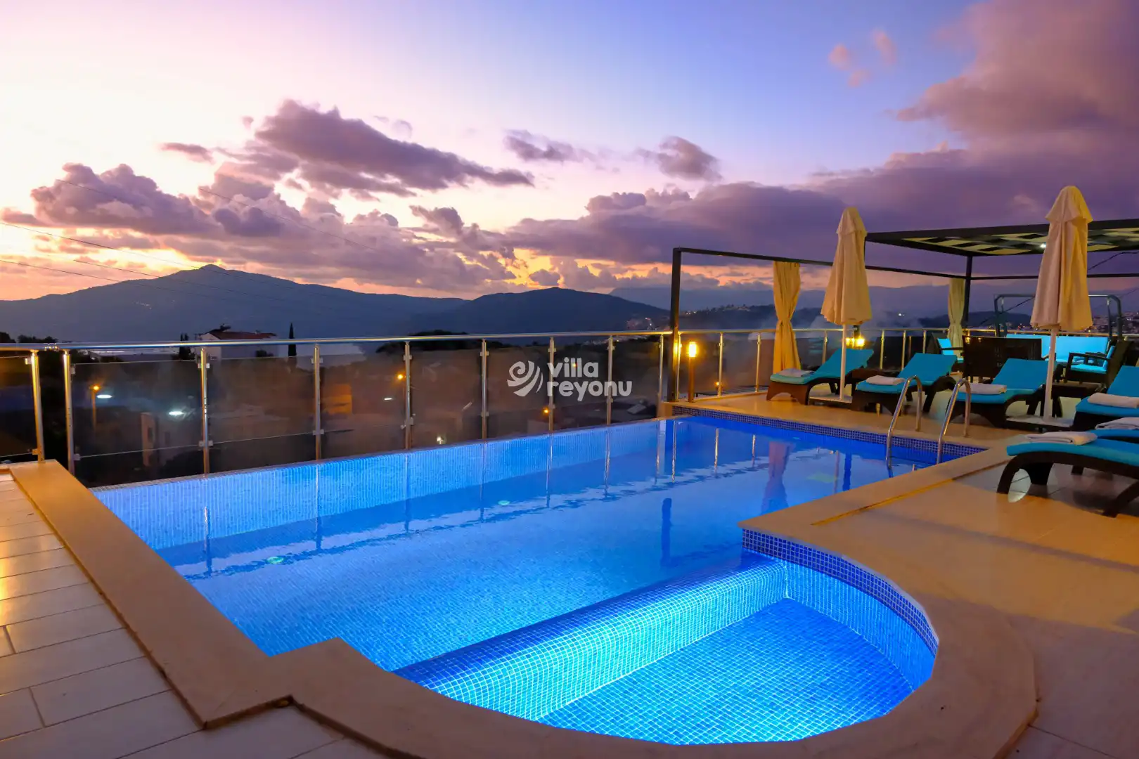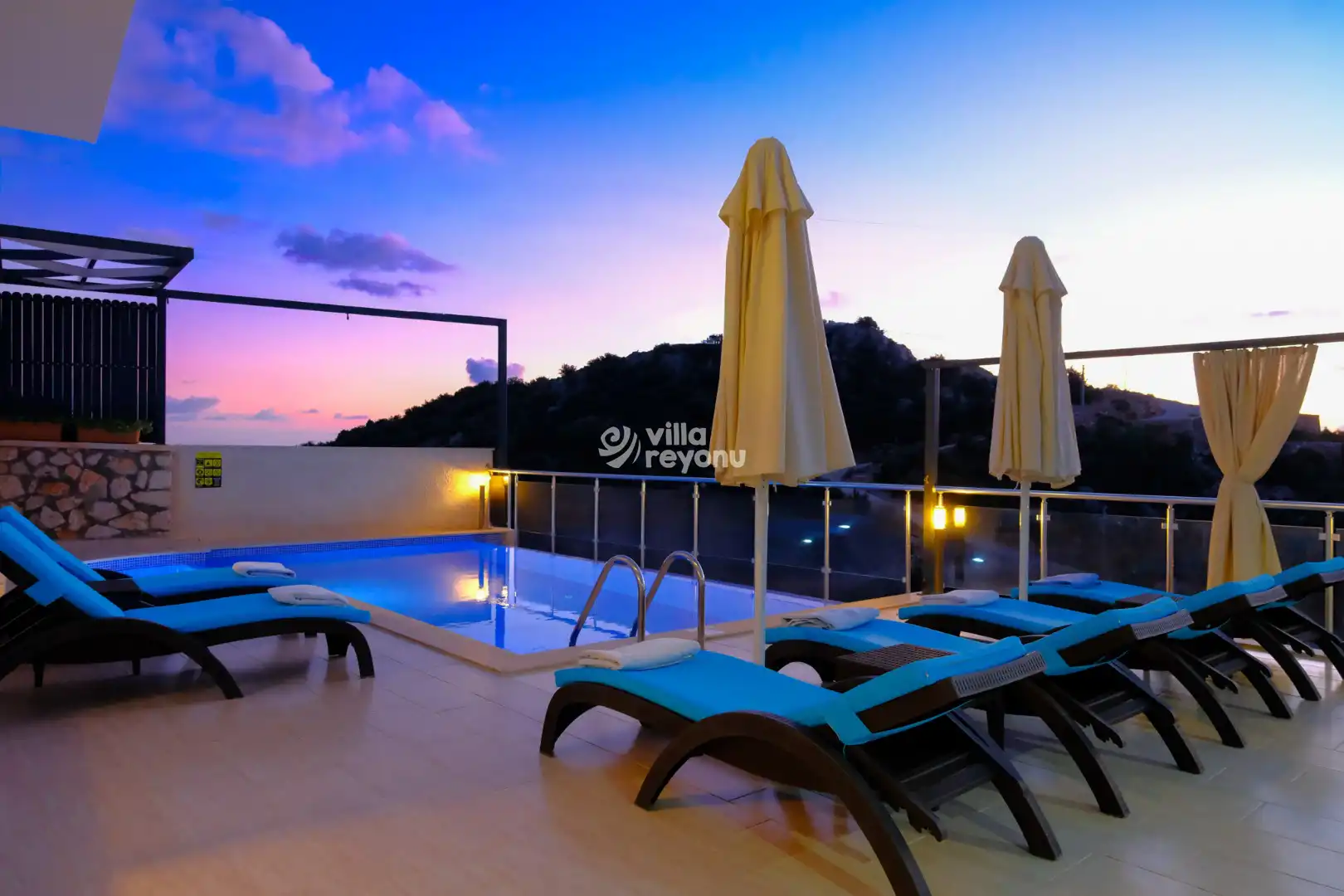 Kalkan’ın seçkin yamaç yerleşimlerinden Kördere’de konumlanan bu özel villa, 4 yatak odası ve 8 kişilik konaklama kapasitesiyle hem aileler hem de arkadaş grupları için üst segment bir konfor sunmaktadır. Doğa manzarasına hâkim geniş yaşam alanları, gün ışığını maksimum düzeyde içeri alan mimari yapısı ve mahremiyet odaklı planlamasıyla nitelikli bir tatil deneyimi vadeder. Kalkan merkezine ve bölgedeki plajlara kısa sürüş mesafesinde bulunması, lokasyon açısından önemli bir avantaj sağlar.