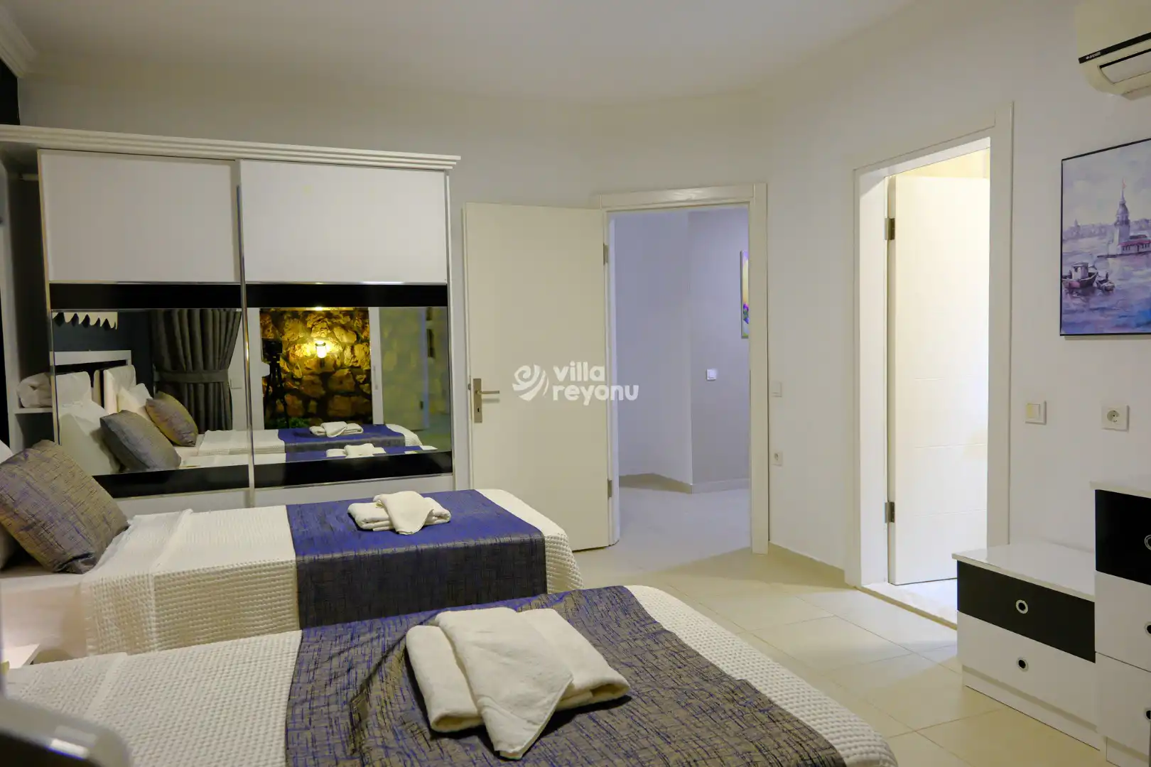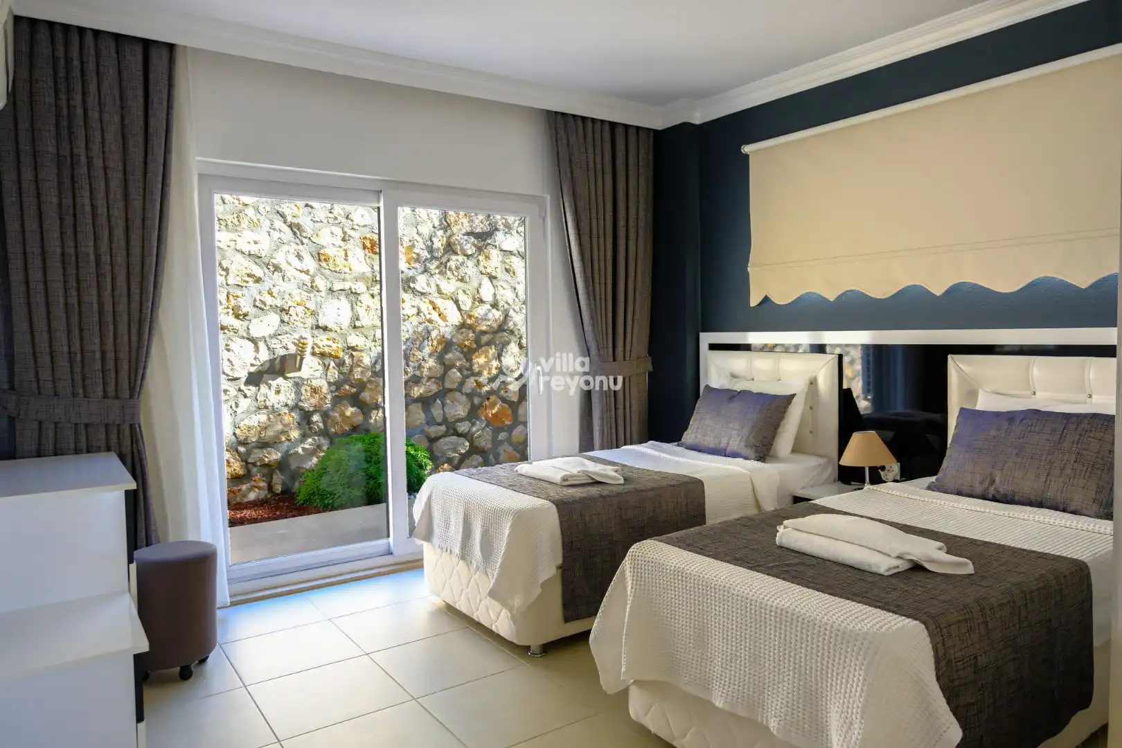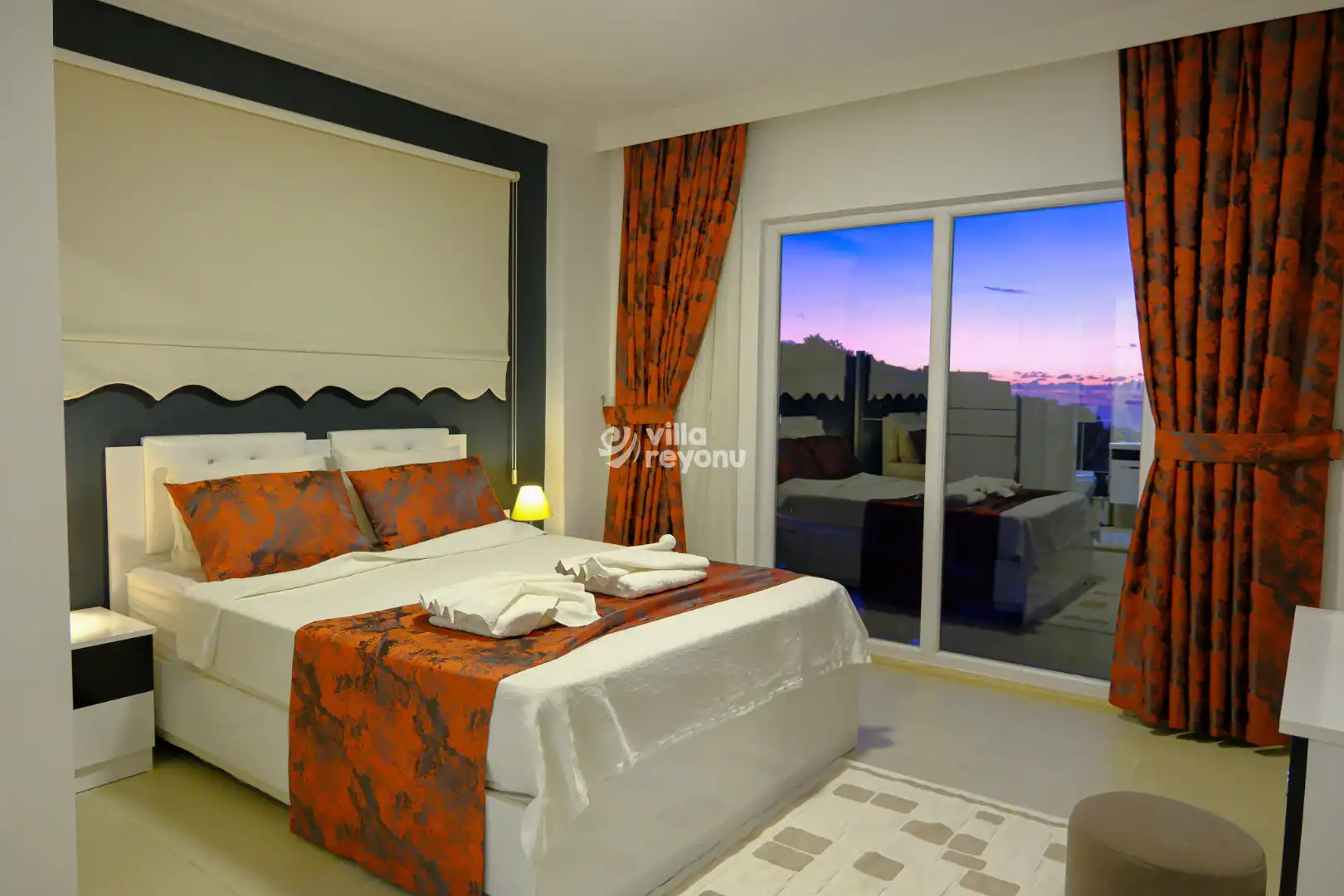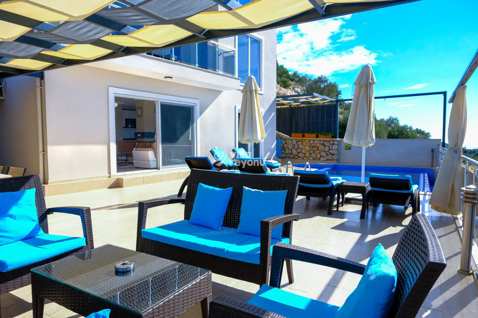 Kalkan’ın seçkin yamaç yerleşimlerinden Kördere’de konumlanan bu özel villa, 4 yatak odası ve 8 kişilik konaklama kapasitesiyle hem aileler hem de arkadaş grupları için üst segment bir konfor sunmaktadır. Doğa manzarasına hâkim geniş yaşam alanları, gün ışığını maksimum düzeyde içeri alan mimari yapısı ve mahremiyet odaklı planlamasıyla nitelikli bir tatil deneyimi vadeder. Kalkan merkezine ve bölgedeki plajlara kısa sürüş mesafesinde bulunması, lokasyon açısından önemli bir avantaj sağlar.
