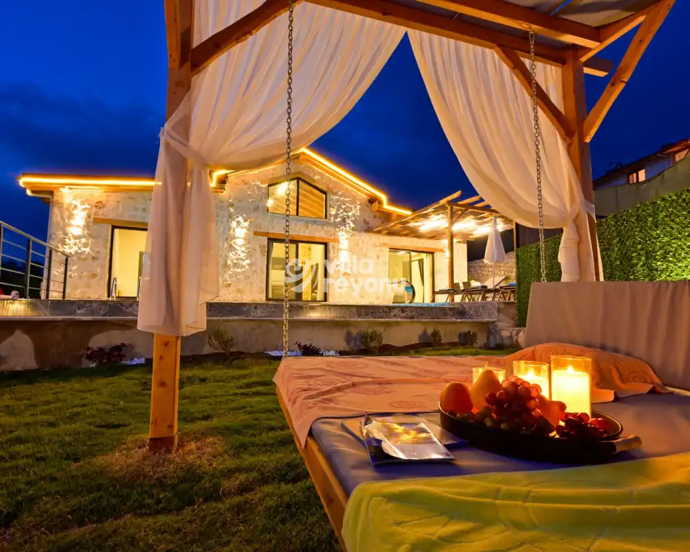 Fethiye - Yakaköy mevkiinde konumlanmış olan Villa Ravello, 2 yatak odası ve 4 kişilik konaklama kapasitesine sahiptir. Yapımı Mayıs 2024 yılında tamamlanan villamız çekirdek aileler için huzurlu ve tertemiz havasıyla unutulmaz bir tatil fırsatı sunar. Çocuk havuzu, çocuk oyun alanı ve taş mimarisi ile villamız, sevdiklerinizle birlikte güzel bir tatil geçirebilmeniz için özenle hazırlanmıştır.