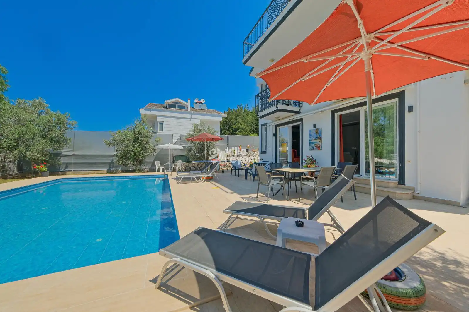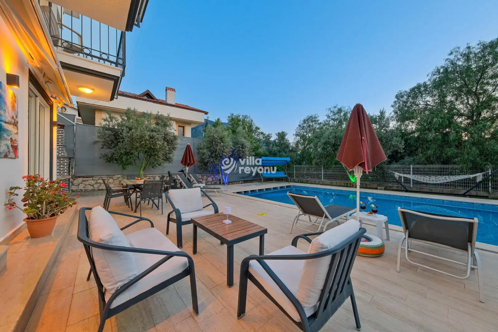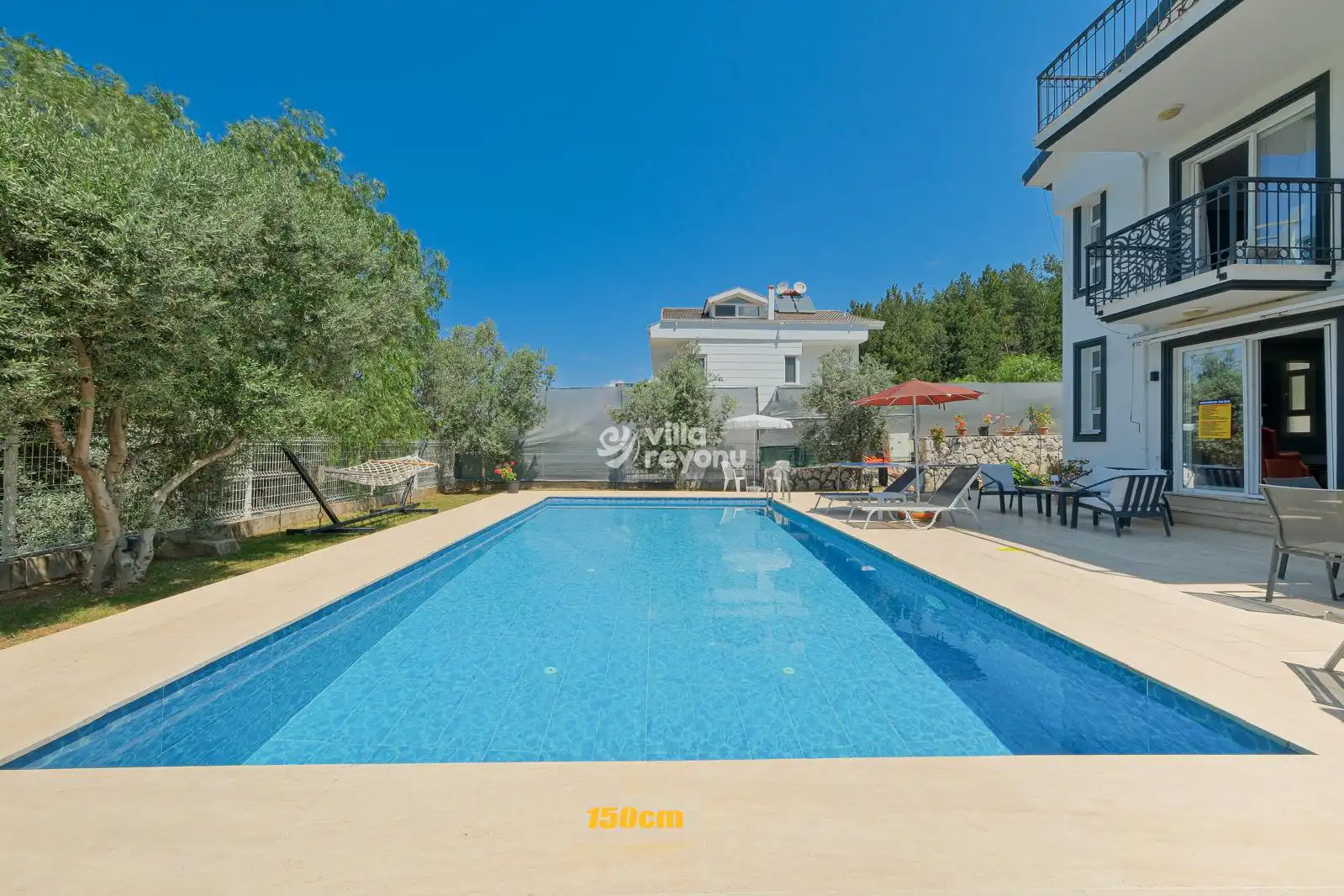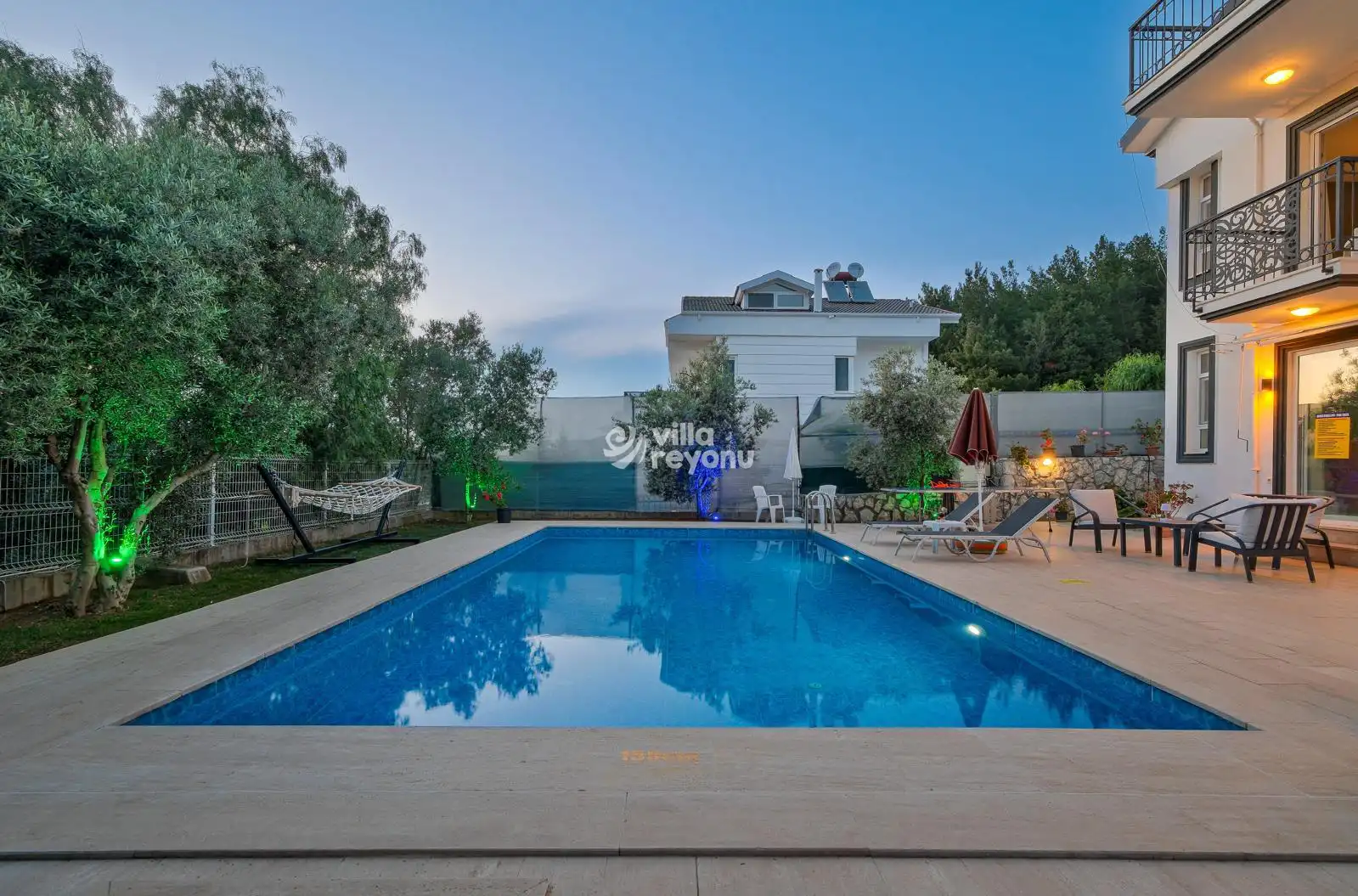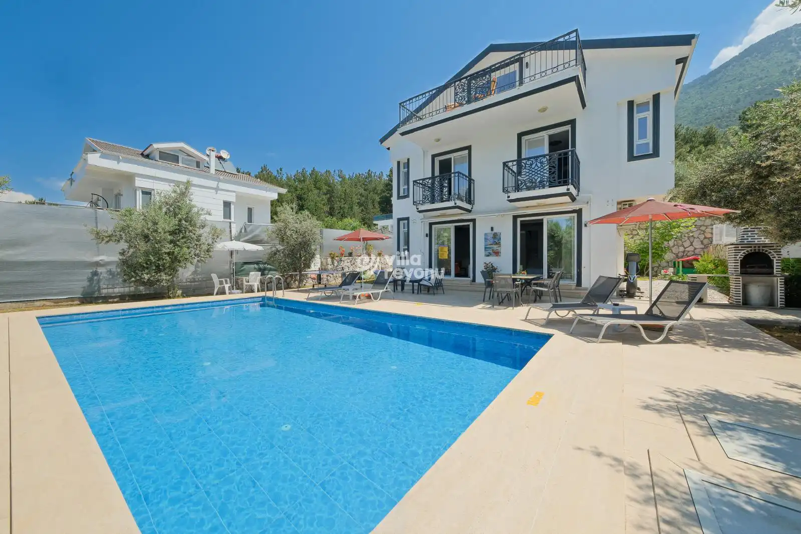 Tam donanımlı mutfağı, ferah ve aydınlık yaşam alanları sayesinde hem konforlu hem de keyifli bir tatil atmosferi sağlar. Geniş bahçesi ve gözlerden uzak özel yüzme havuzuyla aileniz ve sevdiklerinizle huzurlu bir tatilin tadını çıkarabileceğiniz ideal bir seçenektir.