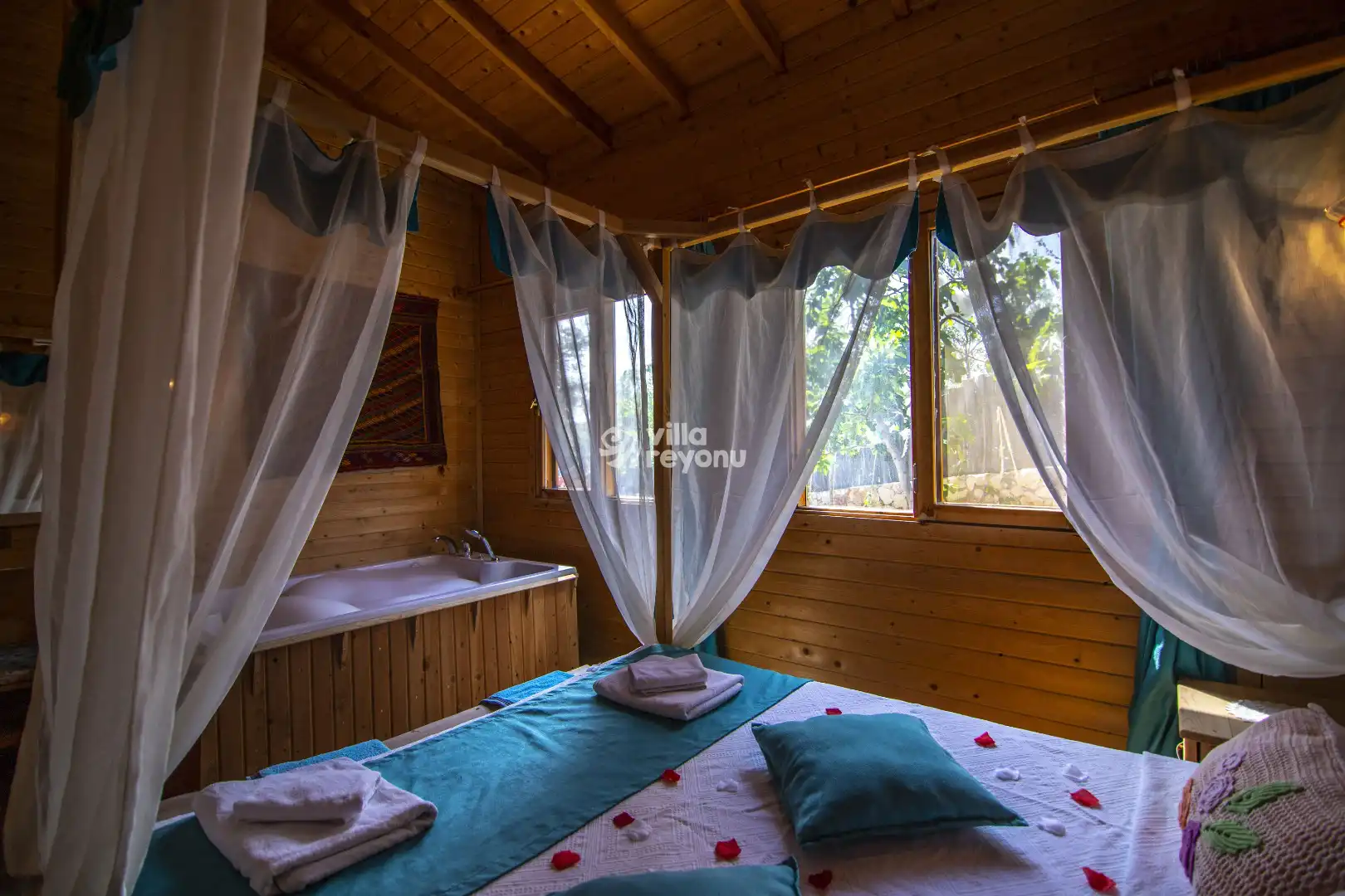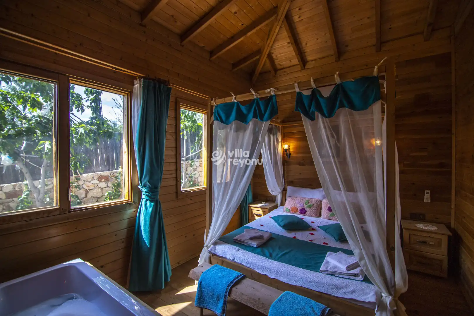 Villa Reka, Kalkan’ın İslamlar Köyü’nde konumlanmış olup tamamen korunaklı yapısıyla dikkat çeken bir tatil villasıdır. Villada 2 yatak odası ve 2 banyo yer almakta; yatak odalarından biri ebeveyn banyosuna sahiptir, diğer banyo ise ortak kullanım için düzenlenmiştir. Toplamda 4 kişiye kadar konforlu bir konaklama imkânı sunar. Ayrıca yatak odasında jakuzi bulunması, misafirlere ekstra keyifli bir deneyim sağlar.