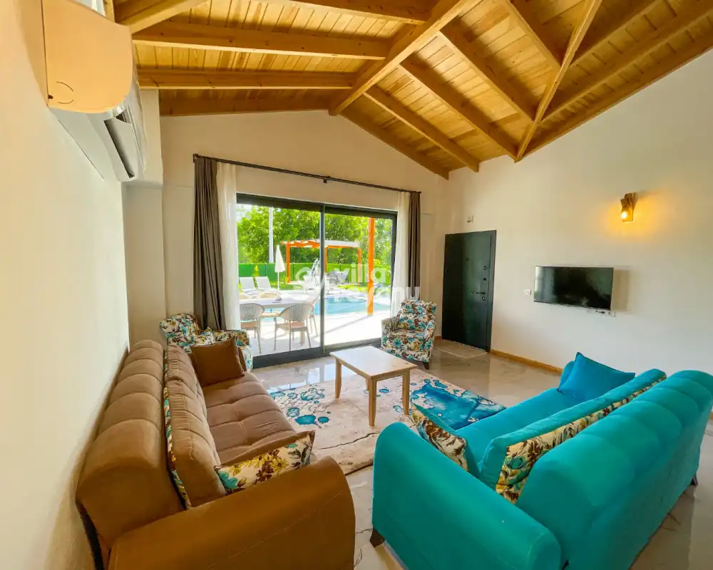 * Doğa içerisinde bulunan tüm villalarımızda düzenli olarak ilaçlama yapılmaktadır. Ancak yine de çevrede kelebek, böcek, sinek vb. bulunma ihtimali bulunmaktadır.