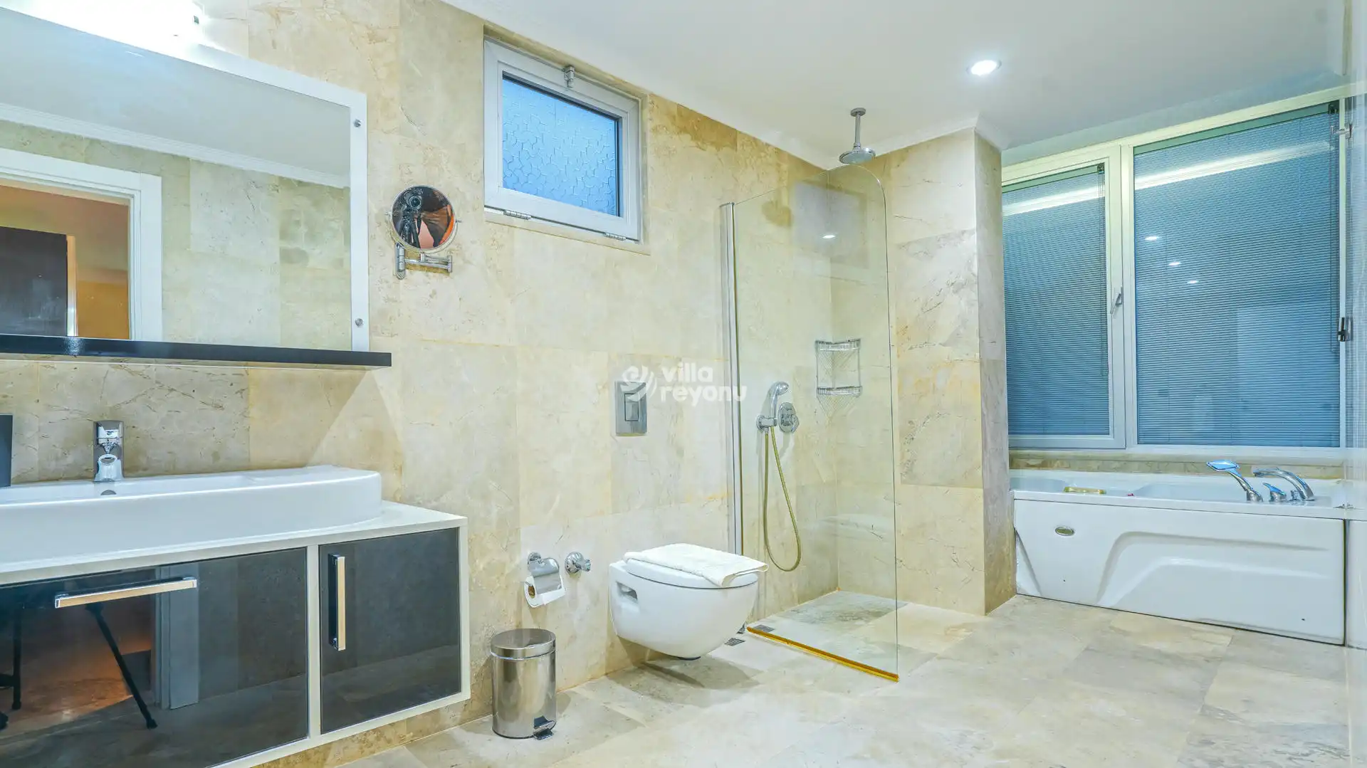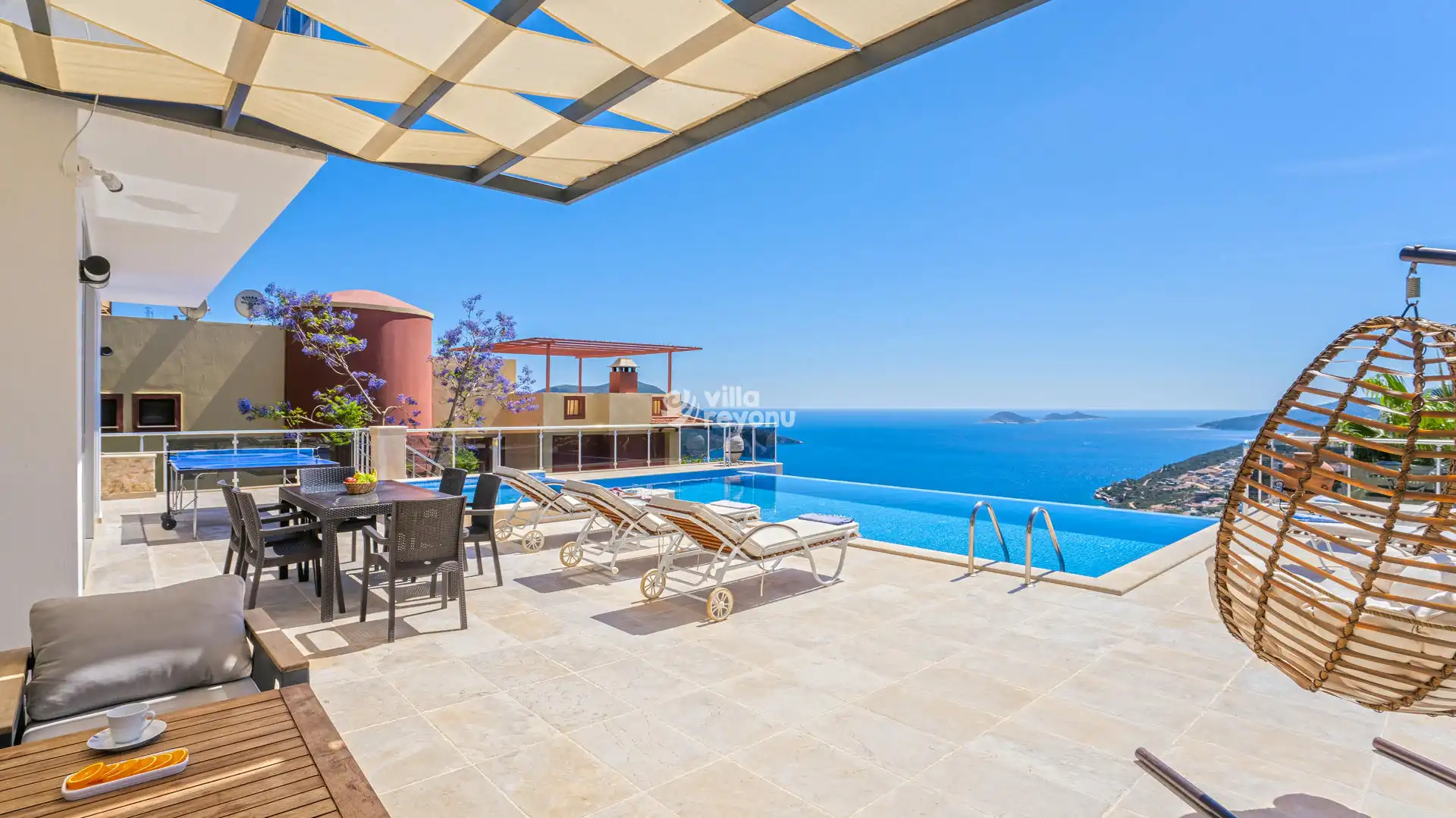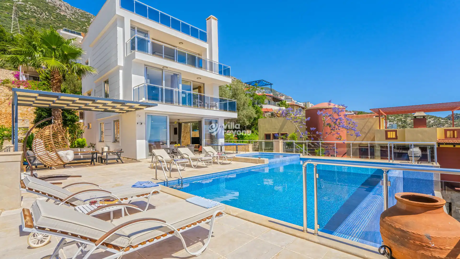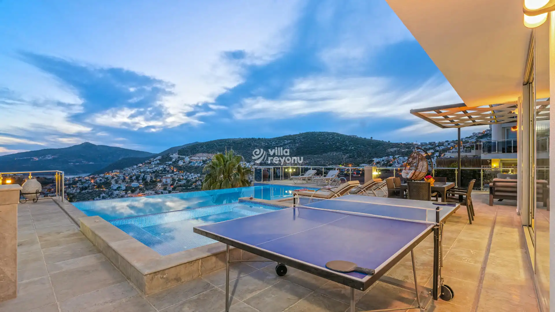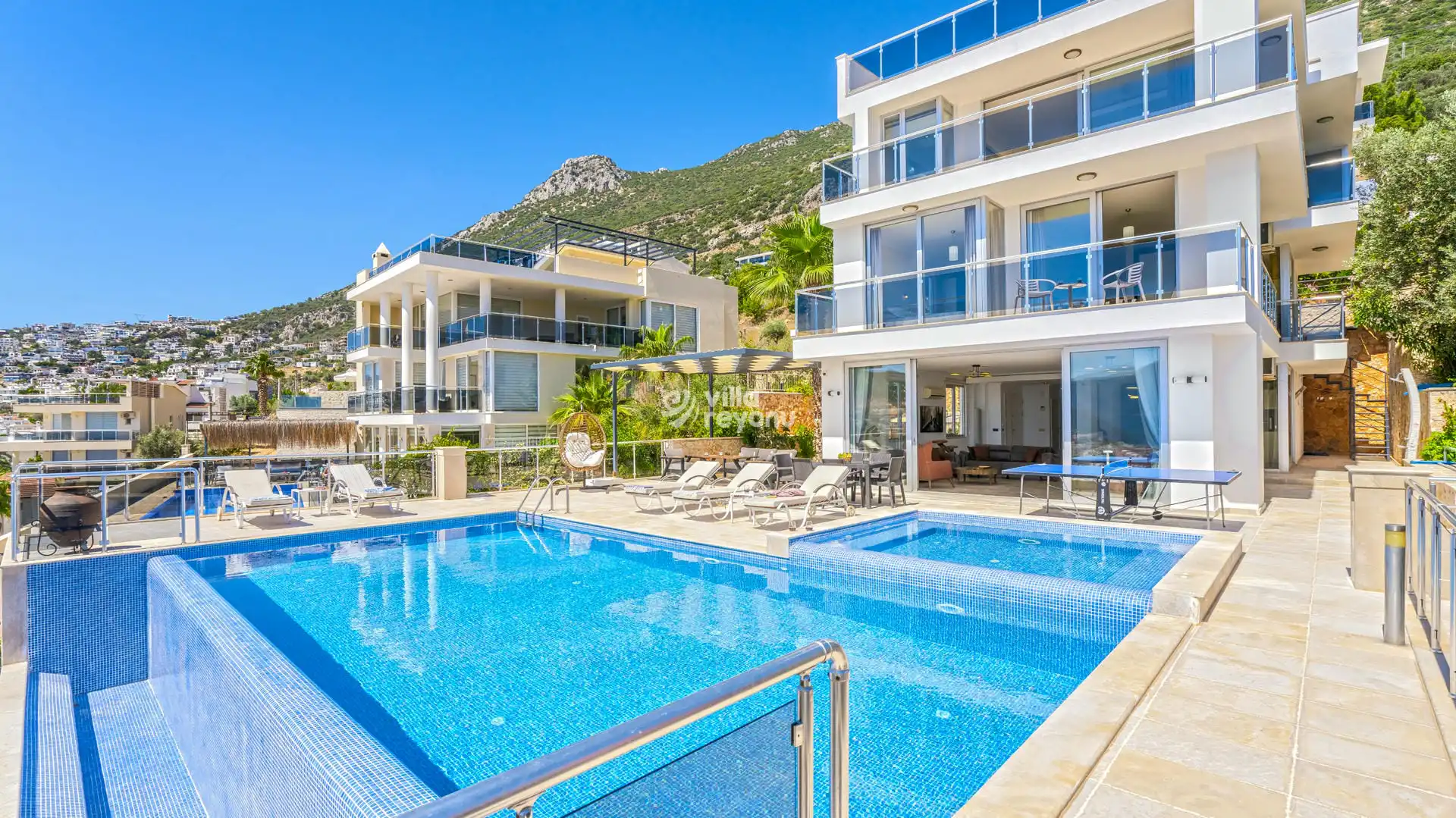 Modern salonu, tam donanımlı Amerikan mutfağı ve doğrudan havuz terasına açılan ferah yaşam alanlarıyla konforlu bir tatil sunar. Özel jakuzili havuzu , geniş terası, şezlongları, masa tenisi ve barbekü alanıyla keyifli anlar sizi bekler.