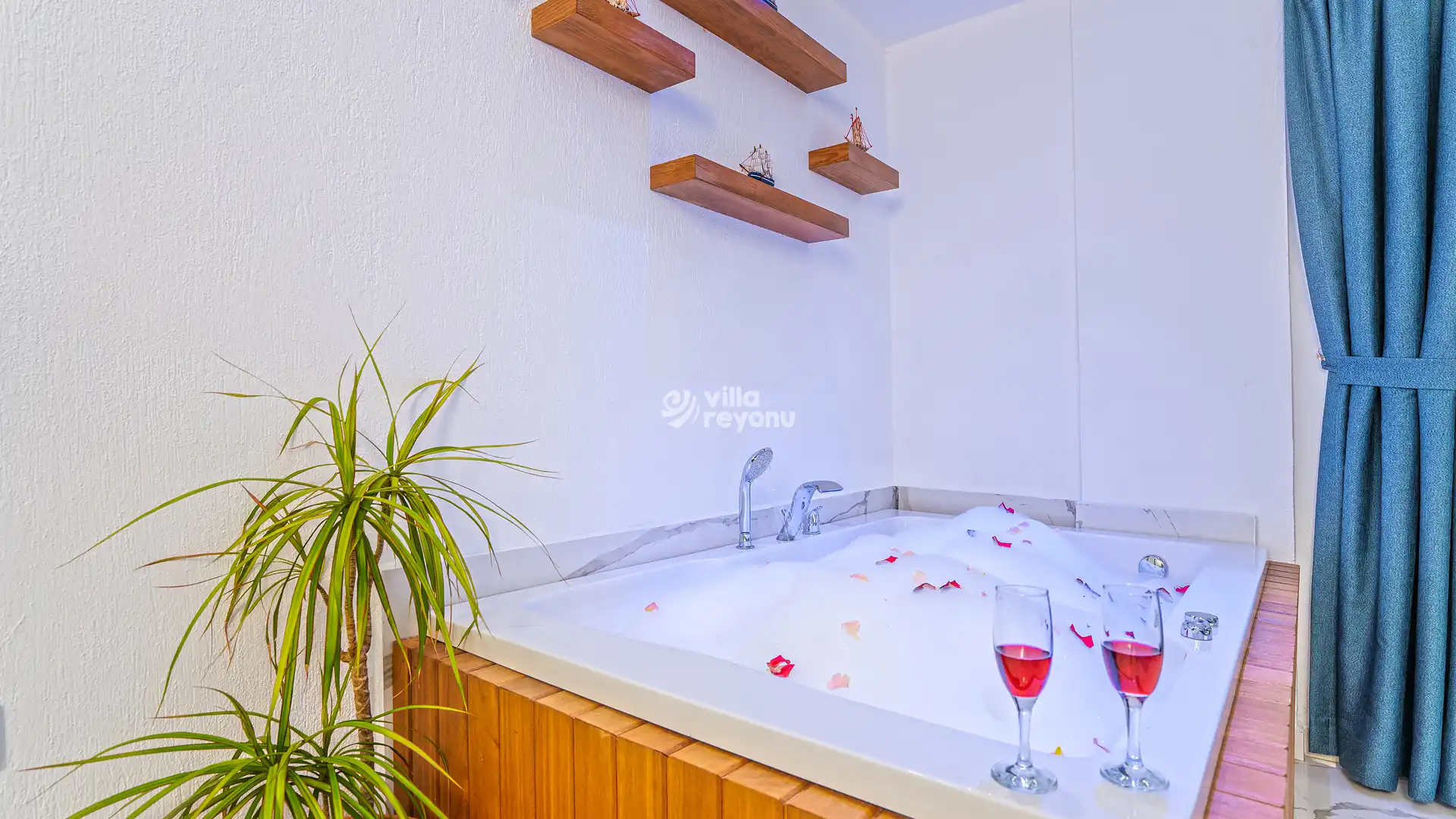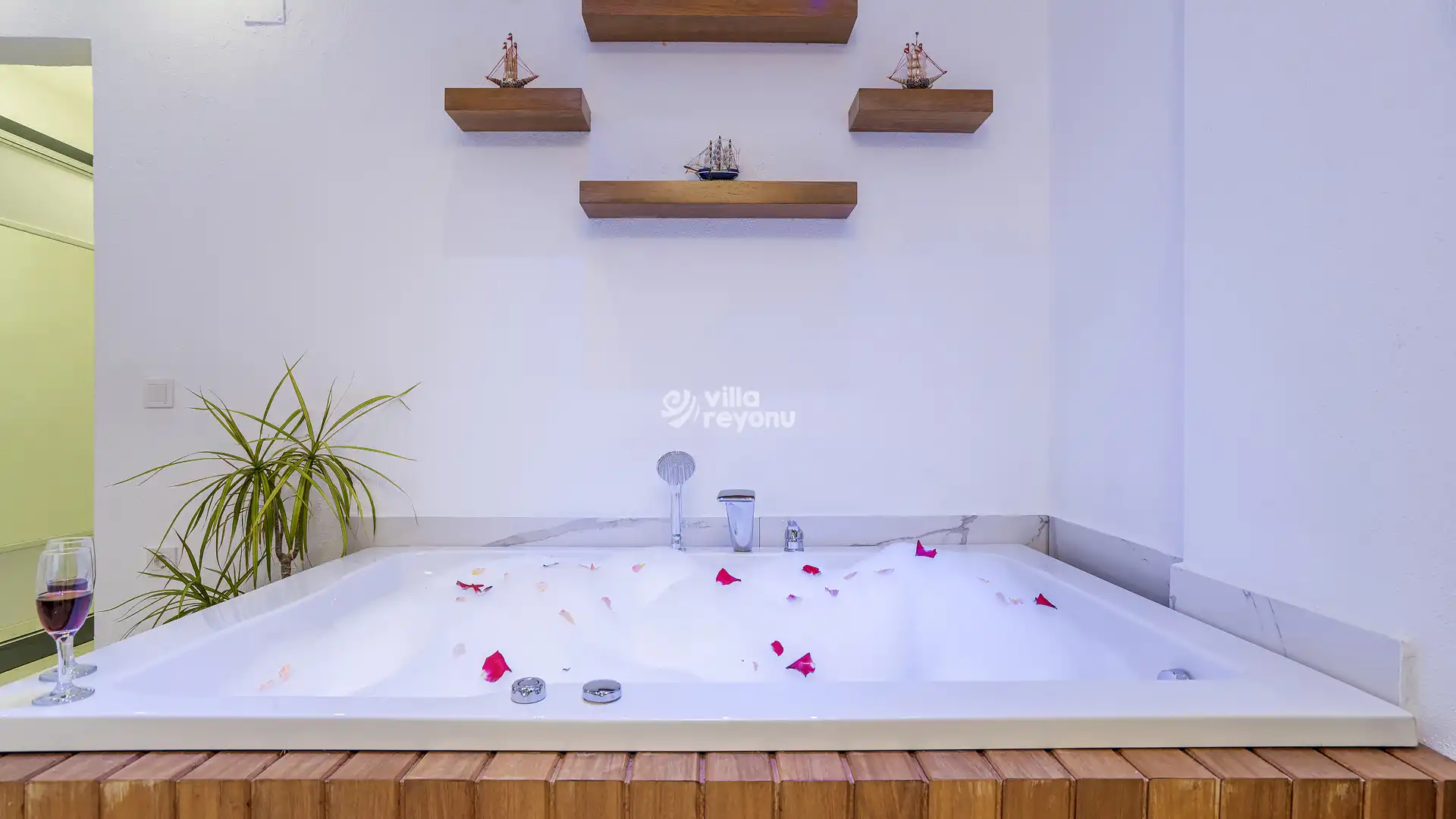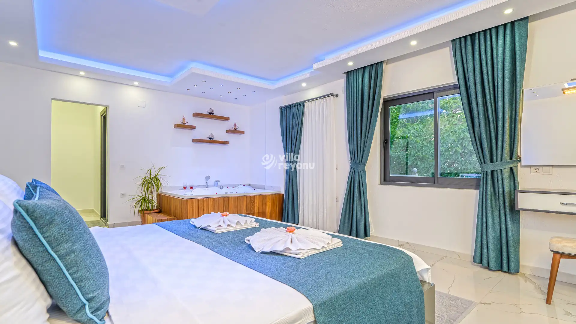 Geniş bahçesi, özel havuzu ve panoramik manzarasıyla unutulmaz anlar sunan Villa Seaglass’ta, aile odasında yer alan jakuzide gün batımının tadını çıkarabilirsiniz. Sessiz ve sakin konumu sayesinde dinlenirken, dileyen misafirler kısa bir araç yolculuğuyla Kalkan merkezine, plajlara ve restoranlara kolayca ulaşabilir.