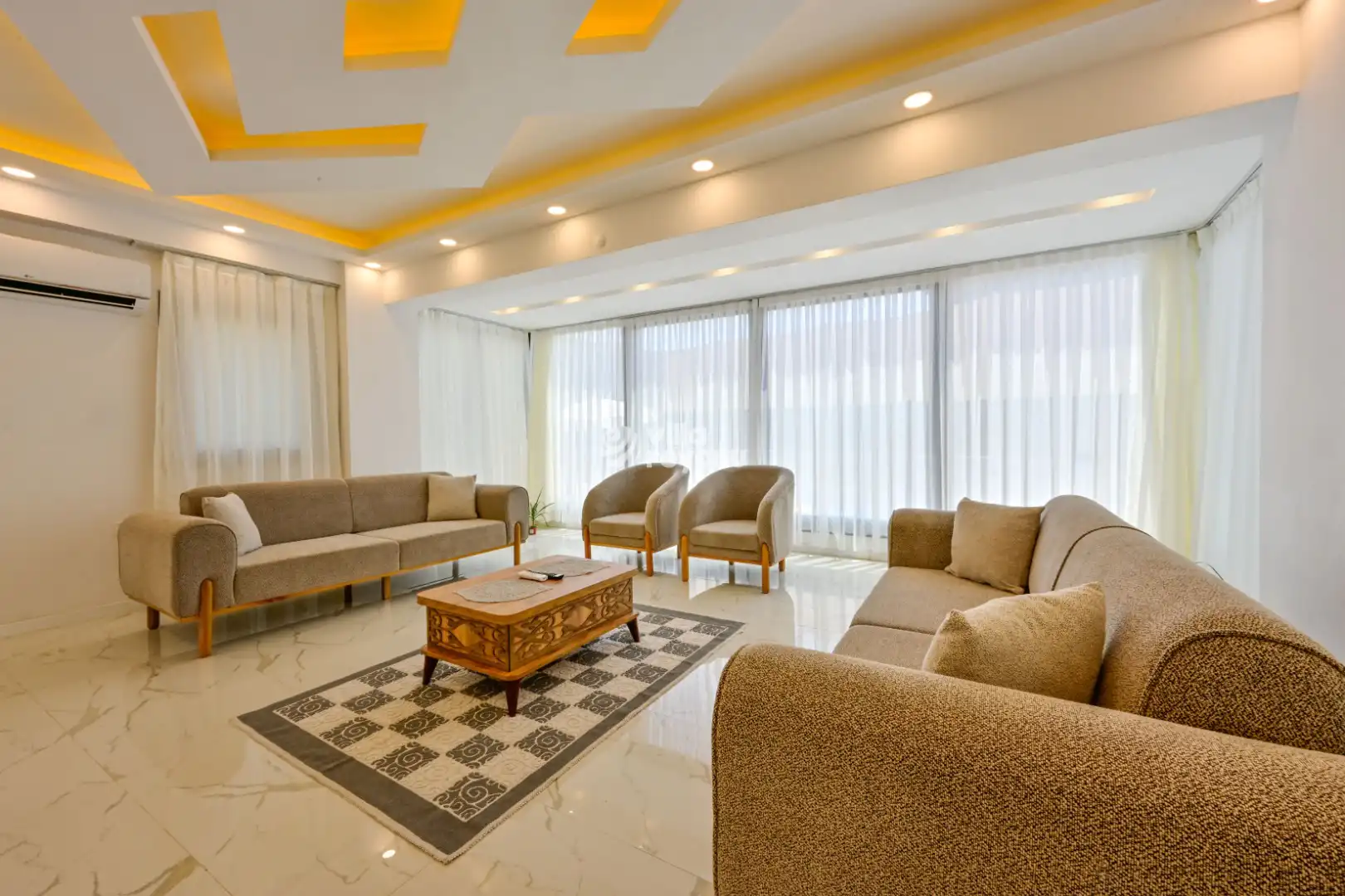 Bu evin resimleri sitemizde yer alan diğer evlerin resimleri gibi görüntüyü ekrana sığdırmak amacıyla, geniş açılı lens ve profesyonel fotoğraf makinaları ile çekilmektedir. Bu nedenle resimler üzerinde yer alan objeler gerçeğinden daha büyük olarak görülebilmektedir.
