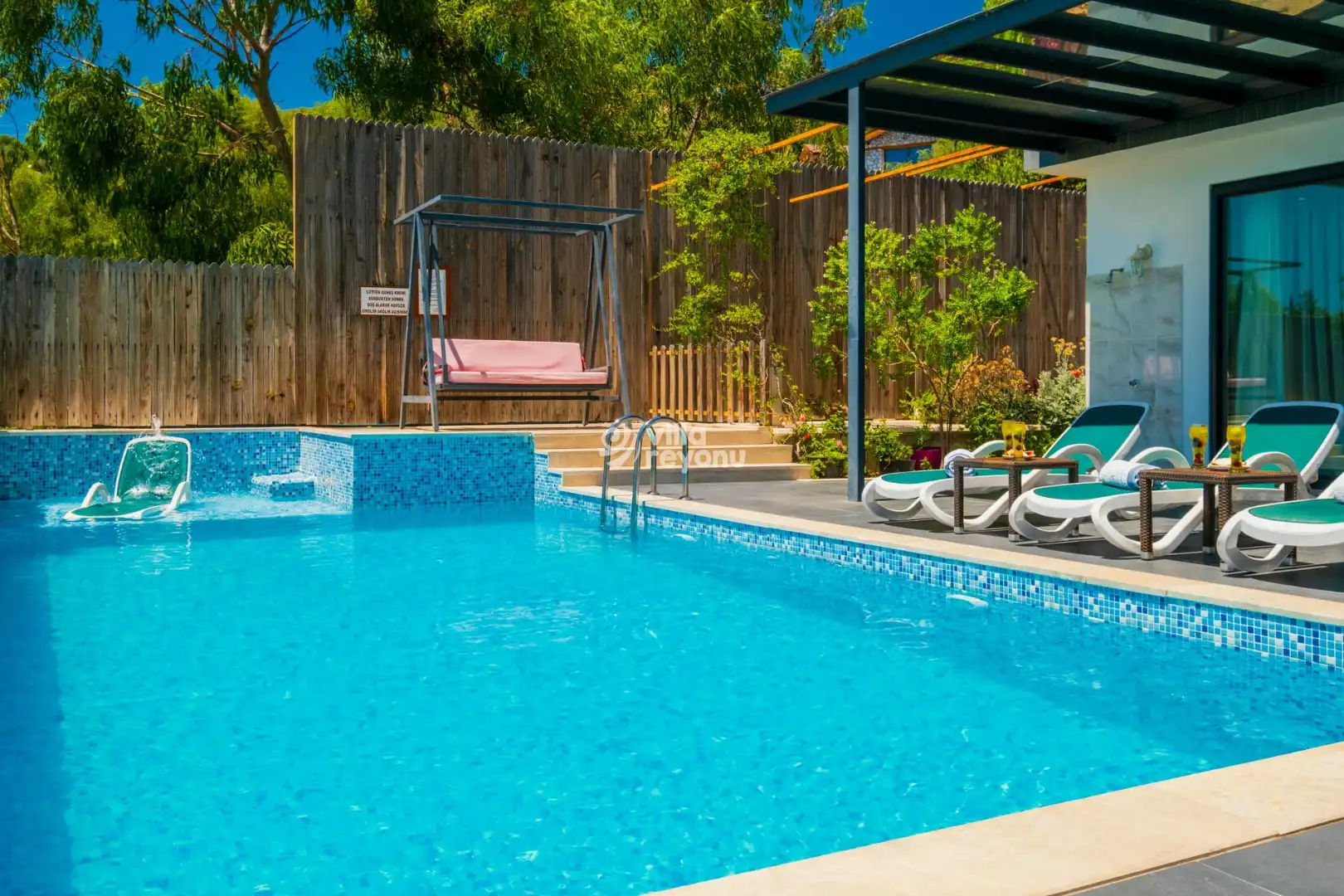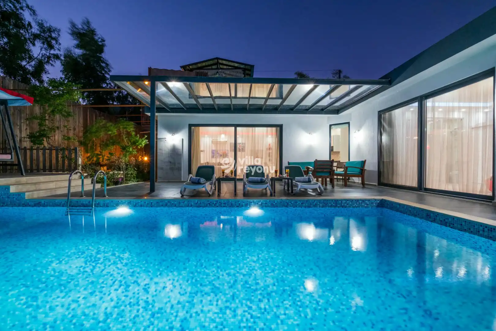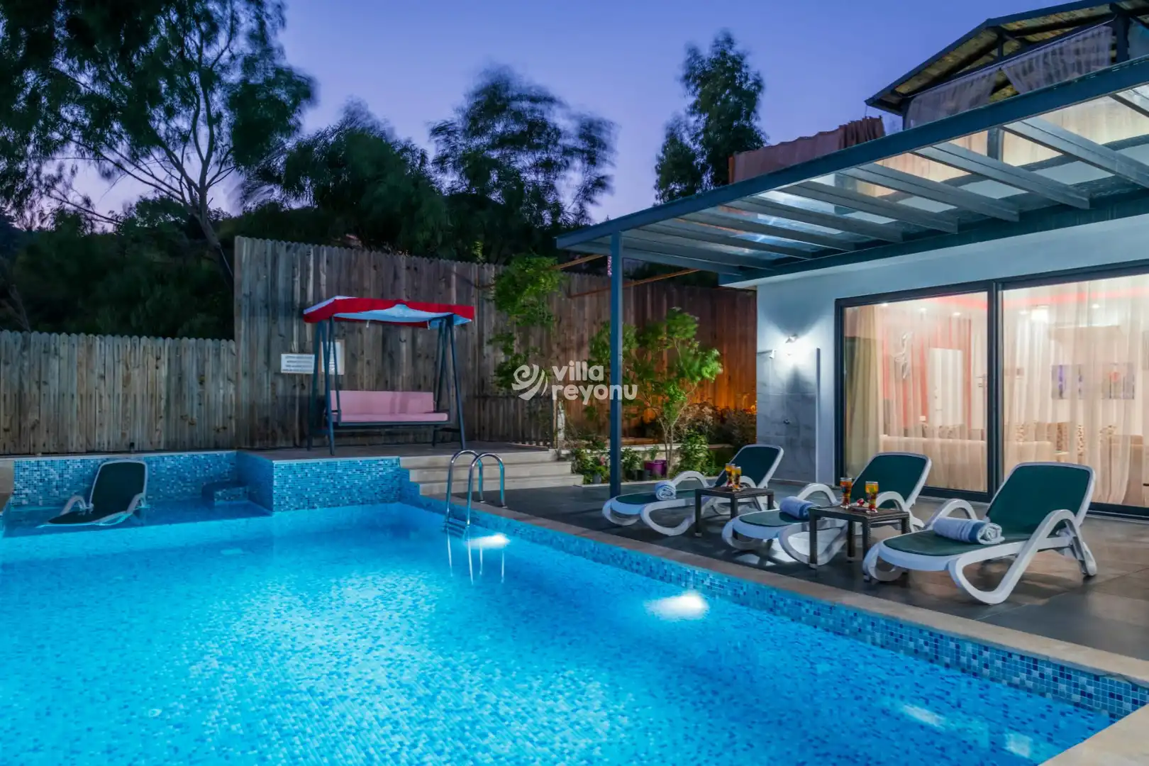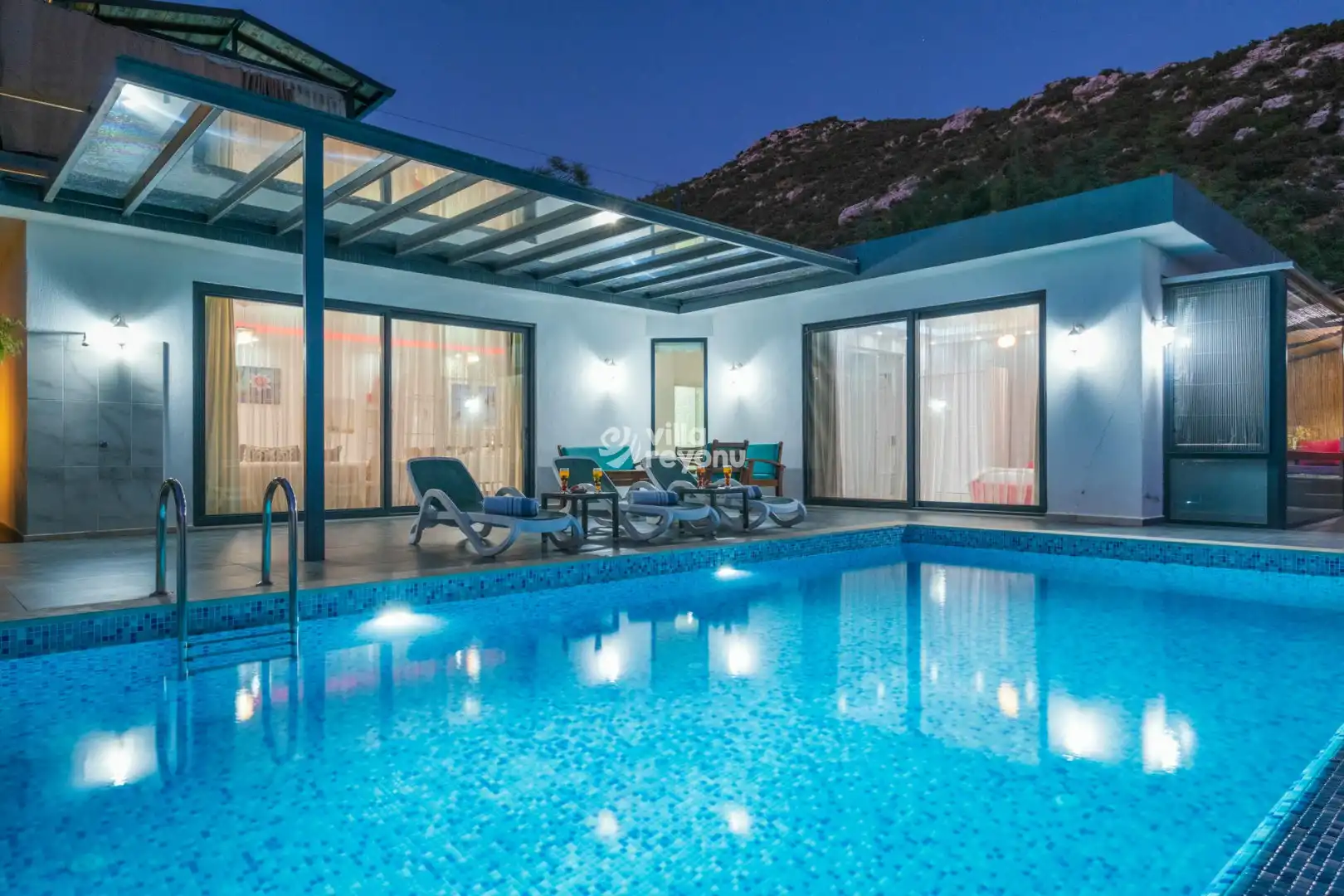Kalkan’ın doğayla iç içe, huzurlu atmosferiyle öne çıkan İslamlar Mahallesi’nde yer alan Villa Sezen, 2 yatak odası ve 4 kişilik konaklama kapasitesiyle konuklarını ağırlamaktadır. Modern mimarisi, zarif detayları ve sessiz konumuyla, şehir karmaşasından uzaklaşmak isteyen misafirler için mükemmel bir tercih olacaktır.Geniş bahçesi, havuzu ve havuz ile bina arasındaki terası korunaklıyüzme havuzu, şezlong alanı ve konforlu oturma bölümleriyle, gün boyu huzur ve keyif dolu vakit geçirebilirsiniz.Modern donanımı, konforlu yaşam alanları ve sıcak atmosferiyle Villa Sezen, keyif ve huzuru bir arada sunan eşsiz bir tatil için sizleri bekliyor.