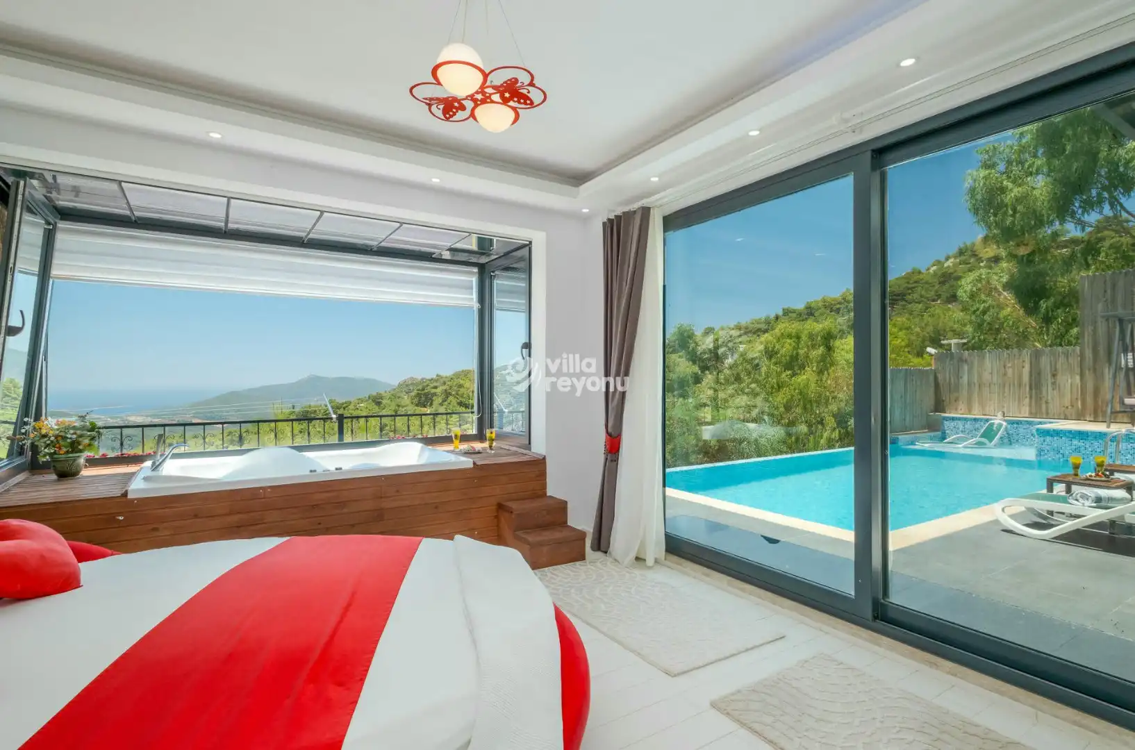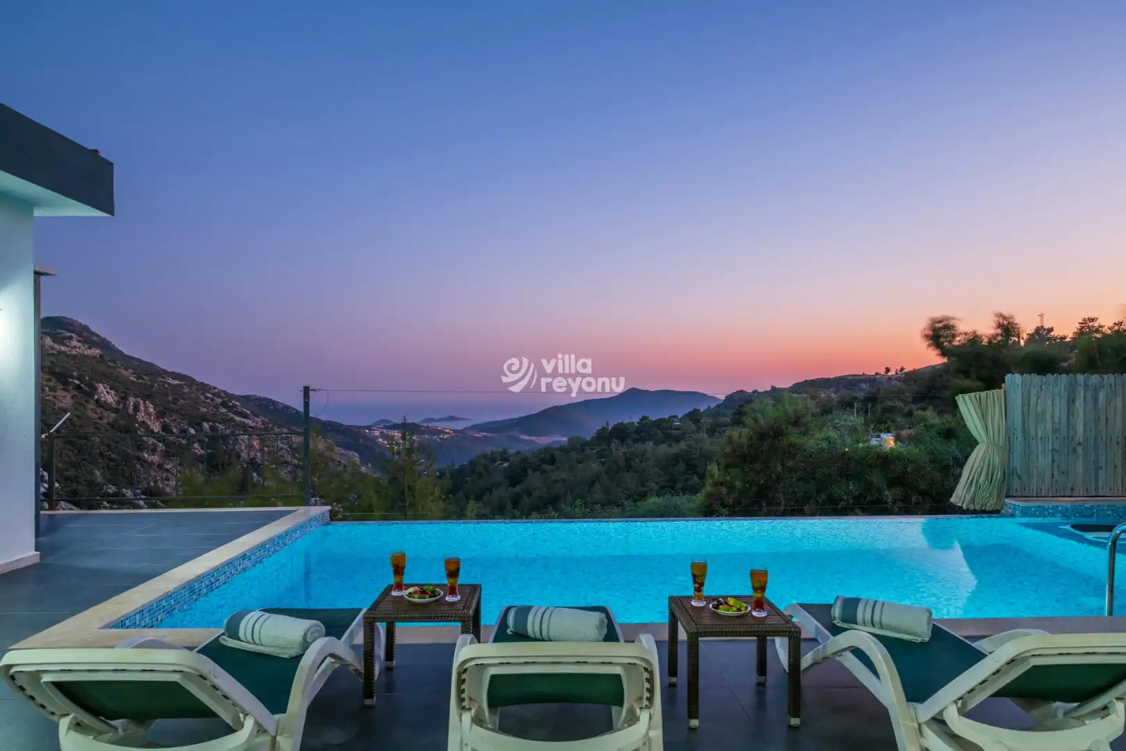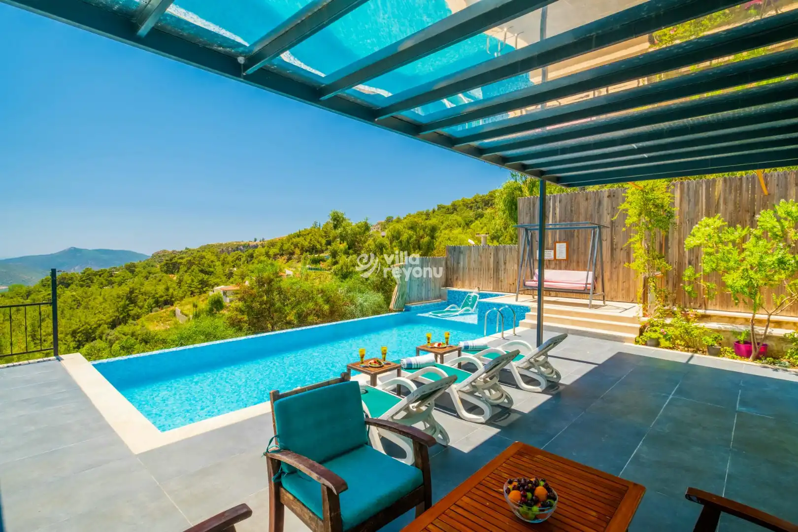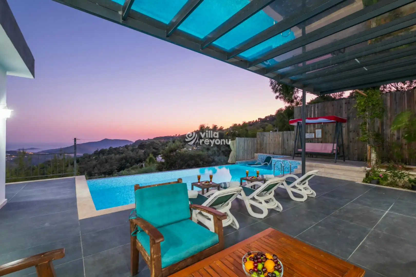Kalkan’ın doğayla iç içe, huzurlu atmosferiyle öne çıkan İslamlar Mahallesi’nde yer alan Villa Sezen, 2 yatak odası ve 4 kişilik konaklama kapasitesiyle konuklarını ağırlamaktadır. Modern mimarisi, zarif detayları ve sessiz konumuyla, şehir karmaşasından uzaklaşmak isteyen misafirler için mükemmel bir tercih olacaktır.Geniş bahçesi, havuzu ve havuz ile bina arasındaki terası korunaklıyüzme havuzu, şezlong alanı ve konforlu oturma bölümleriyle, gün boyu huzur ve keyif dolu vakit geçirebilirsiniz.Modern donanımı, konforlu yaşam alanları ve sıcak atmosferiyle Villa Sezen, keyif ve huzuru bir arada sunan eşsiz bir tatil için sizleri bekliyor.