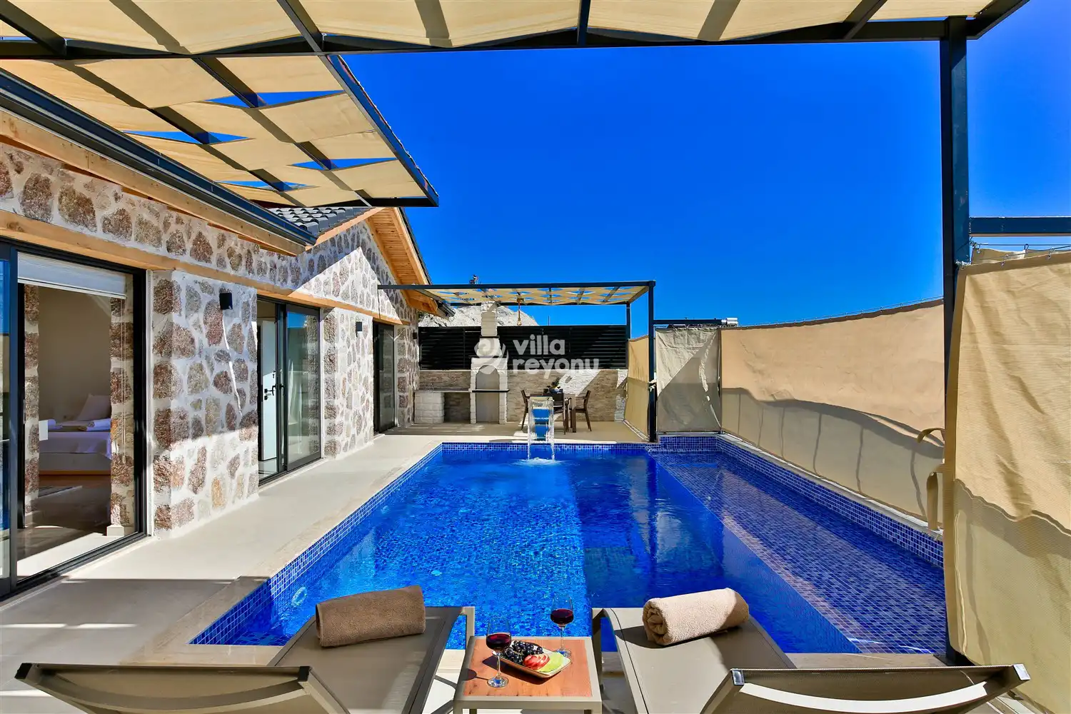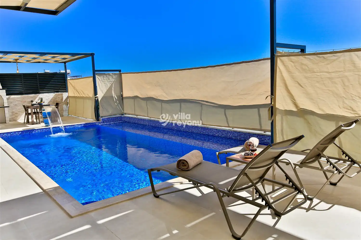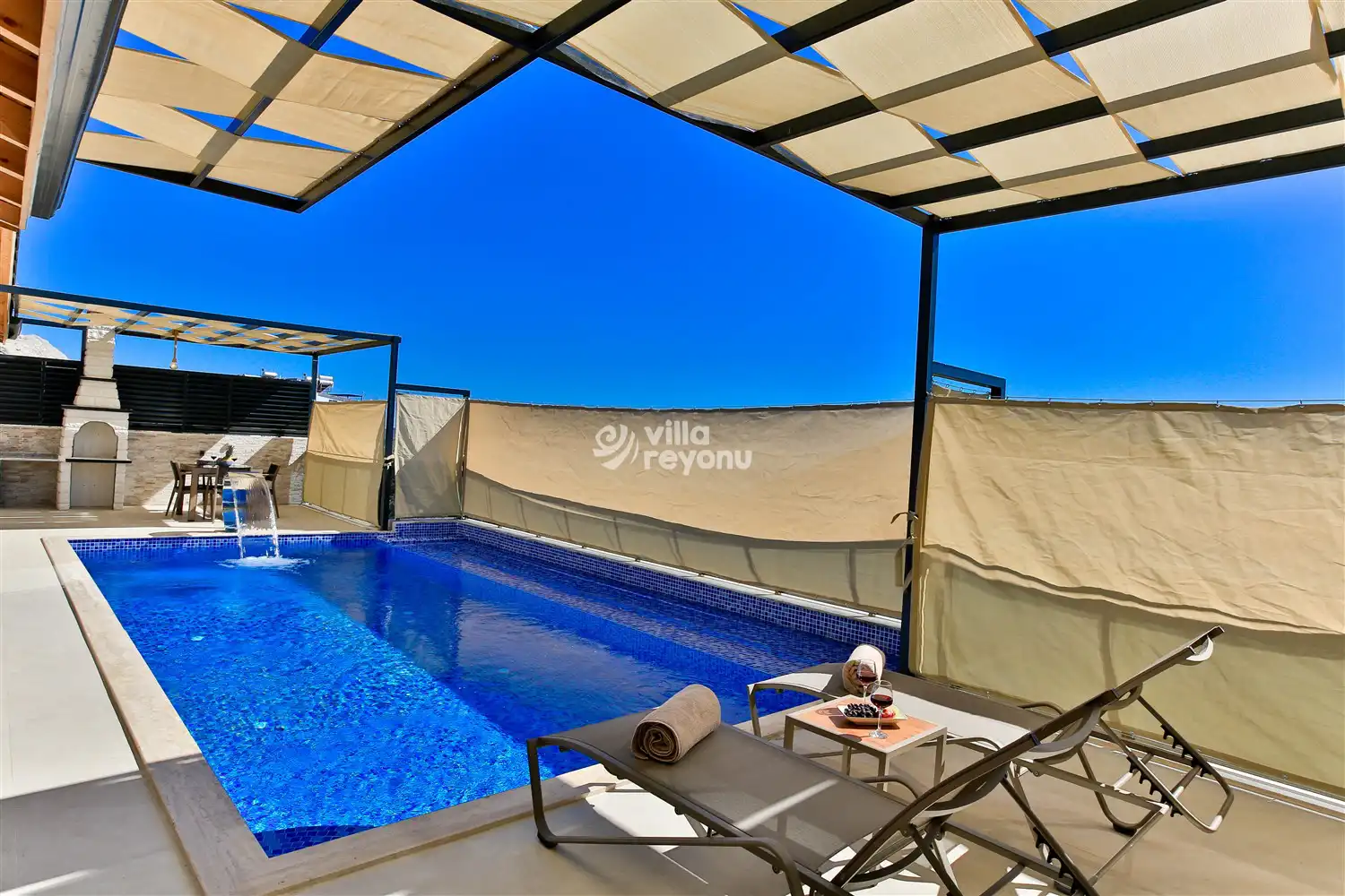 Villa Sirena Duo, Kalkan’ın Akbel bölgesinde yer alan, 2 kişilik konaklama kapasitesiyle özellikle balayı çiftlerine hitap eden özel bir tatil villasıdır. Doğayla iç içe, sakin ve huzurlu bir ortam sunan villa; dışarıdan görünmeyen korunaklı havuzu, kısmi deniz manzarası ve romantik günbatımı manzaralarıyla dikkat çeker. Villanın içerisinde yer alan kapalı ve ısıtmalı havuz, yılın her döneminde konforlu bir yüzme deneyimi sunarken, yatak odasında bulunan çift kişilik jakuzi romantik bir atmosfer yaratır. Mahremiyetin ön planda olduğu bu muhafazakâr konseptli villa, doğa ile baş başa, dinlendirici ve özel bir tatil arayan çiftler için ideal bir seçenektir. Ayrıca, 1 Ekim itibariyle kapalı havuzun ısıtması fiyata dahil olup, villanın merkezi konumu sayesinde Kalkan merkeze ve çevredeki ulaşım noktalarına kolayca erişim sağlanabilir.