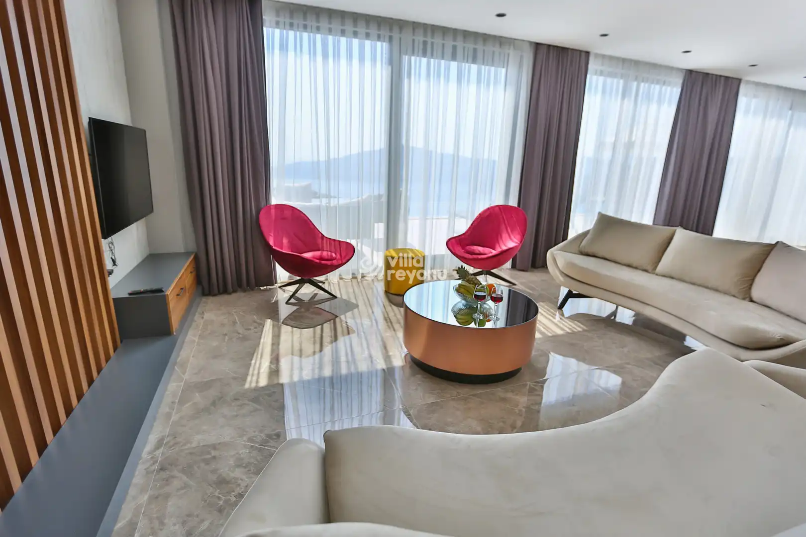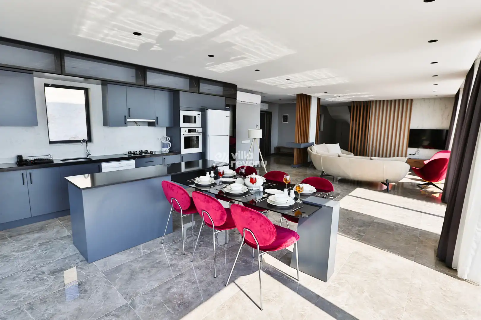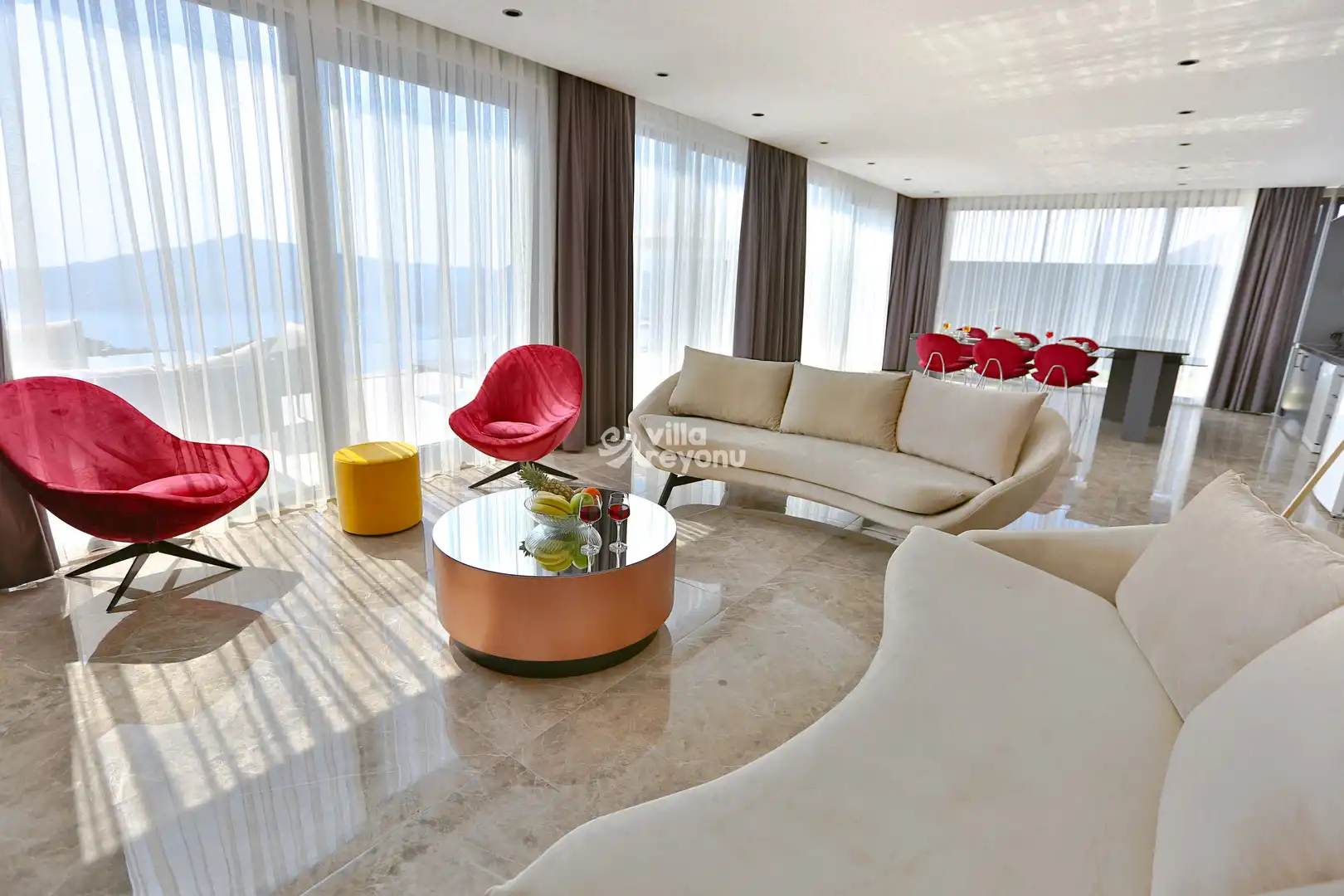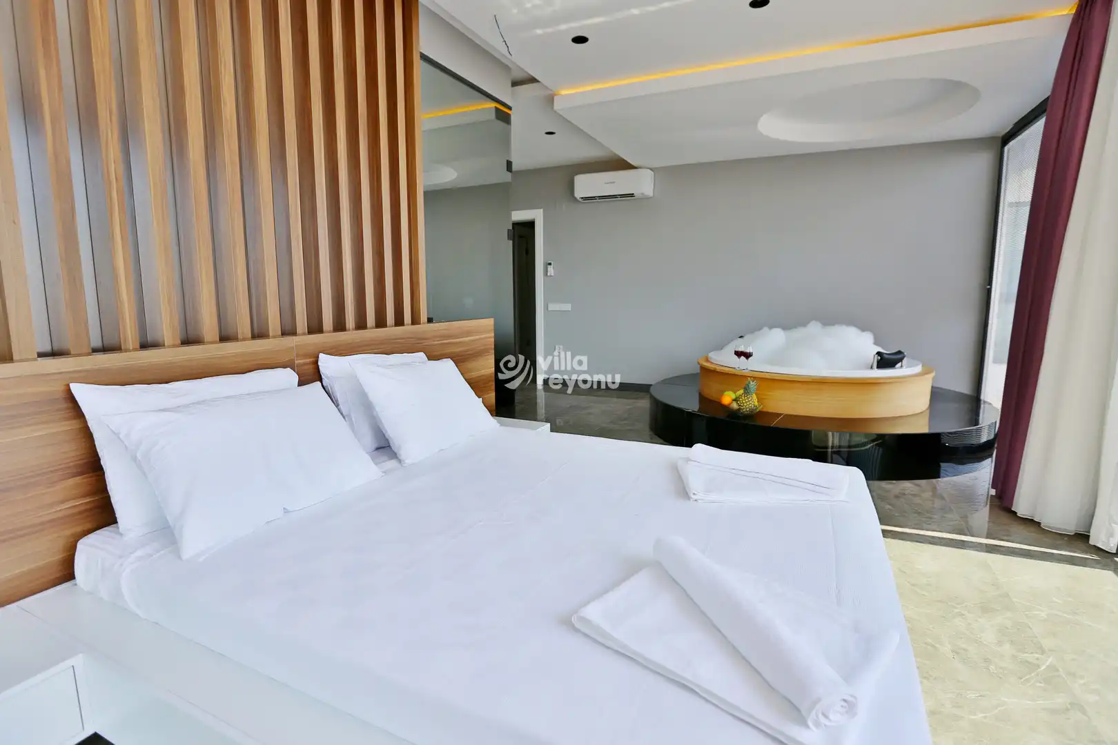 4x12 metre boyutundaki özel havuzda serinleyebilir, jakuzide dinlenebilir, masa tenisi ve barbekü alanında keyifli vakit geçirebilirsiniz. Plaja 5 km, markete 1 km, restoranlara ise sadece 2 km mesafedeki villa, doğayla iç içe lüks bir konaklama arayanlara hitap ediyor.