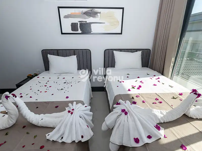 * Doğa içerisinde bulunan tüm villalarımızda düzenli olarak ilaçlama yapılmaktadır. Ancak yine de çevrede kelebek, böcek, sinek vb. bulunma ihtimali bulunmaktadır.