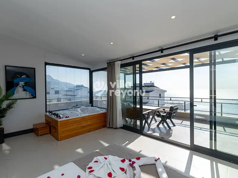 Villa Stella 6, Kalkan mevkisinde konumlanmış, eşsiz doğa ve deniz manzaralı tripleks villamızdır. 4 yatak odası ve 4 banyo tuvalete sahip olan villamız 8 kişilik konaklama kapasitesiyle geniş aileler ve kalabalık arkadaş grupları için ideal bir seçenek olarak öne çıkmaktadır. Villamızın bir yatak odasında jakuzi, sauna ve hamam bulunmaktadır. Özel yüzme havuzu, konforlu şezlongları, bahçe salıncağı ve yaz aylarının vazgeçilmezi barbeküsüyle villamız eğlenceli ve unutulmaz bir tatil geçirmek isteyen misafirlerini bekliyor.