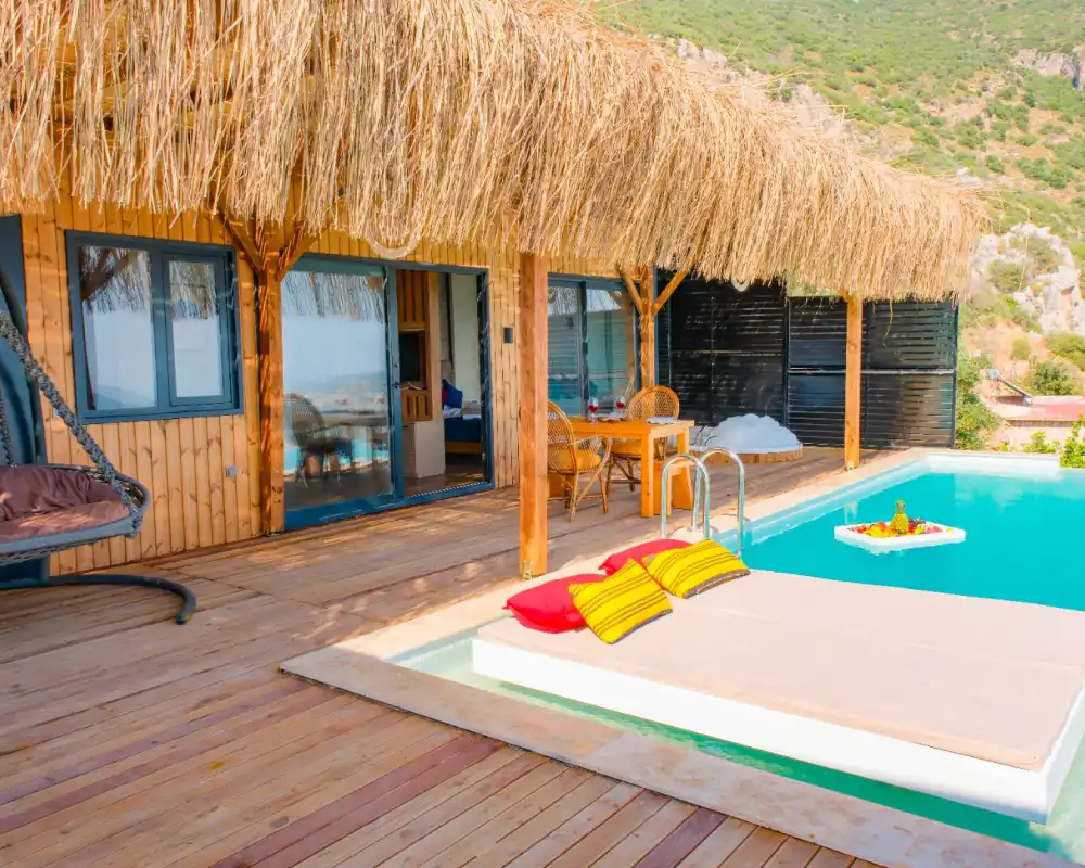 Villa Swing House, Kalkan/Akbel mevkisinde konumlanmış, deniz manzarası ve sonsuzluk havuzuyla dikkat çeken villamızdır. 1 yatak odası ve 1 banyo tuvalete sahip villamız 2 kişilik konaklama kapasitesiyle balayı çiftleri için ideal bir seçenek olarak öne çıkmaktadır. Villamızın korunaklı özel yüzme havuzunun yanında bulunan jakuzide yılın yorgunluğunu atabilirsiniz. Eşsiz deniz ve doğa manzarası, korunaklı özel yüzme havuzu, bahçe salıncağı ve yaz aylarının vazgeçilmezi barbeküsüyle villamız, gözlerden uzak ve huzurlu bir tatil geçirmek isteyen misafirlerini bekliyor.