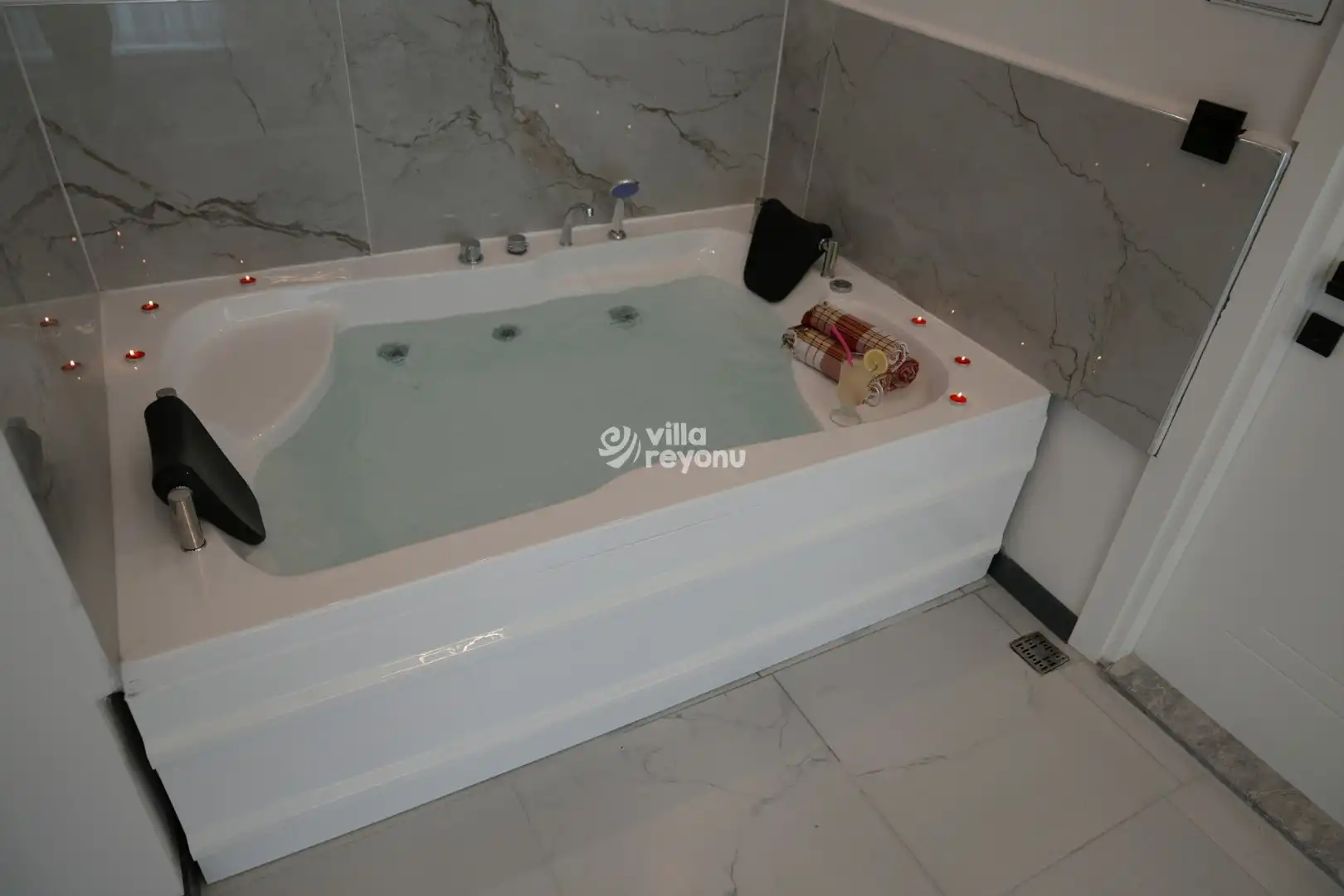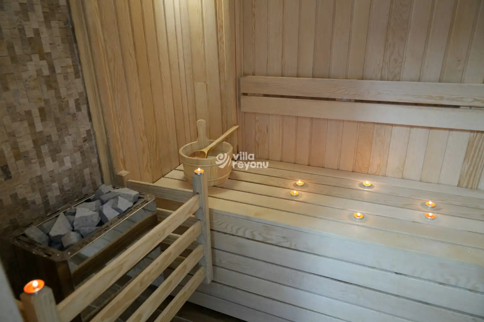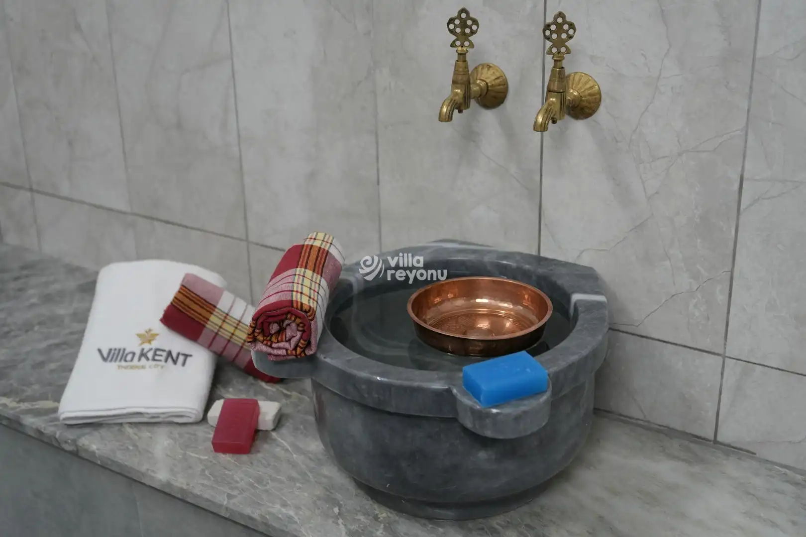• Deluxe  villalarımız içerisinde; özel bahçe ,  Yarı açık termal bahçe havuzu ,kapalı termal havuz, Türk hamamı, jakuzi ve sauna bulunmaktadır.