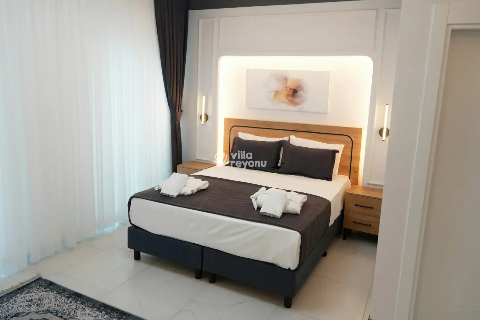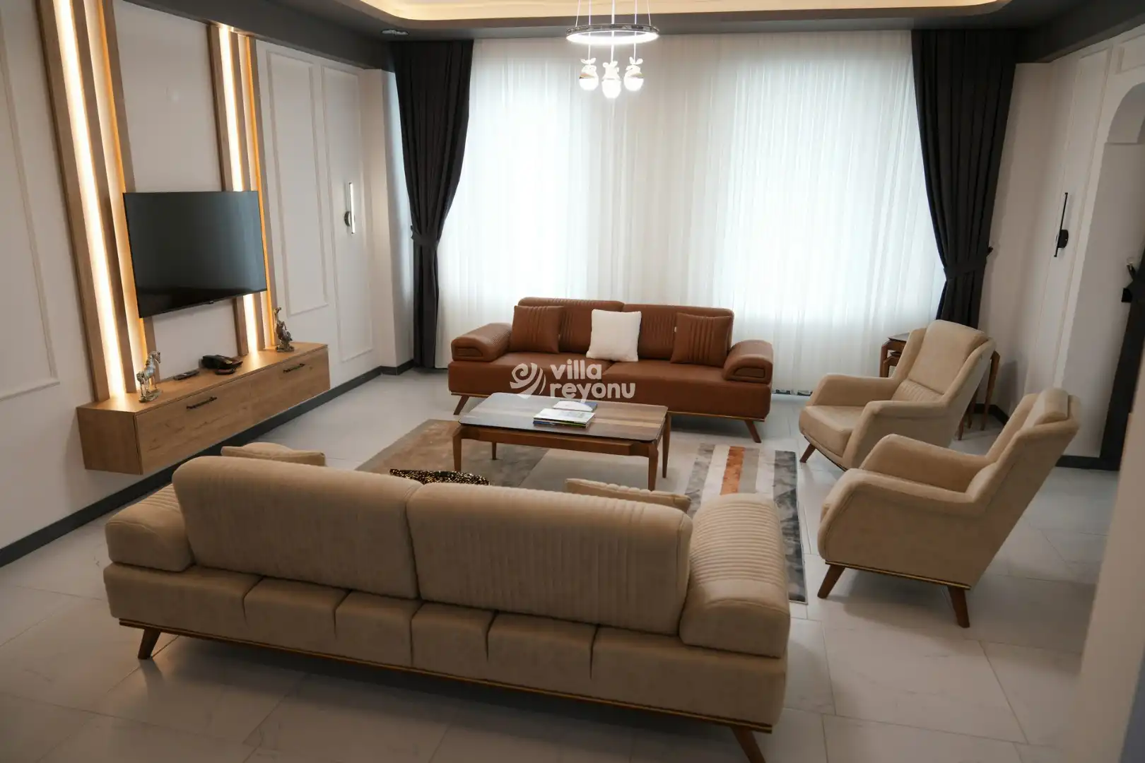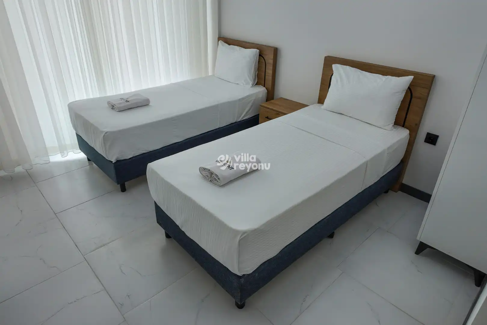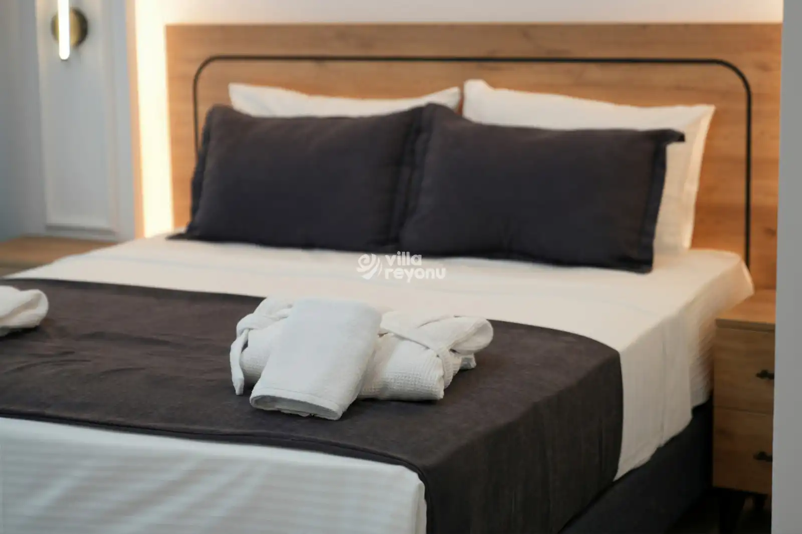 Villalarımız, oturma grubundaki açılabilir koltuk sayesinde 6+2kişi olarak konaklamaya uygundur. Her villa, 3 yatak odasıyla 6 kişilik yatak kapasitesine sahip olup, oturma alanındaki açılabilir koltuklarla toplamda 8 kişiye kadar konaklama imkanı sunmaktadır. Villamızın Kullanım Alanı: 285 m²'dir.