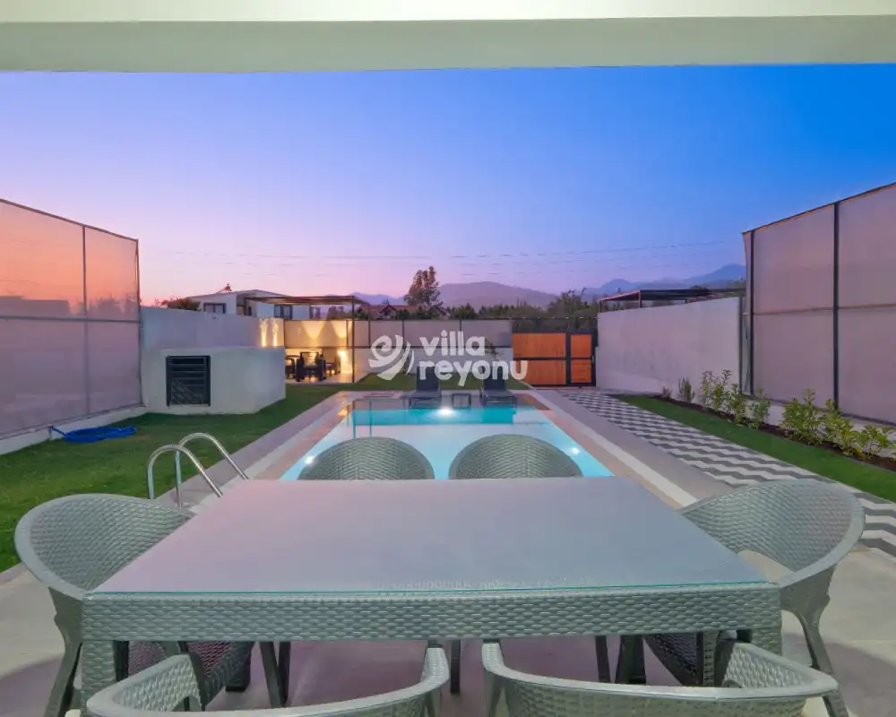 Villa Tidal 1, Fethiye / Çalış’da merkezi bir konumda yer alan, 3 yatak odalı ve 6 kişilik kiralık bir tatil villasındır. Şık ve konforlu iç mekanlarıyla dikkat çeken villa, geniş verandasıyla açık hava keyfi yapma imkanı sunar. Günün yorgunluğunu atmak, akşam yemeğinizi dışarıda keyifle yemek veya sadece dinlenmek için ideal bir ortam sağlar. Fethiye'nin doğal güzelliklerine ve popüler plajlara yakın konumuyla, unutulmaz bir tatil deneyimi için mükemmel bir seçenek sunar