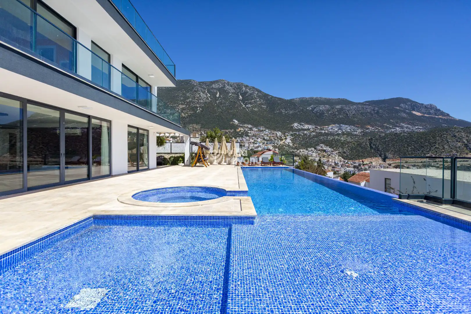 Villa Tokkuri, Kalkan Ortaalan bölgesinde bulunan kiralık villamızdır. Toplam 5 yatak odası mevcut olup maksimum 10 kişiye kadar konaklama imkanı sağlamaktadır. Kalabalık aileler için oldukça idealdir. Birçok konuma ve şehir merkezine yürüme mesafesindedir. Muhteşem bir panoramik deniz manzarasına sahip olan Villa Tokkuri, şık ve konforlu bir şekilde dizayn edilmiştir. Havuza entegre edilmiş olan jakuzide keyifli vakitler geçirerek tüm yılın yorgunluğunu üzerinizden atabilirsiniz. Ayrıca villamızda çocuklarınızın daha eğlenceli vakit geçirebilmesi için çocuk havuzu da bulunmaktadır.