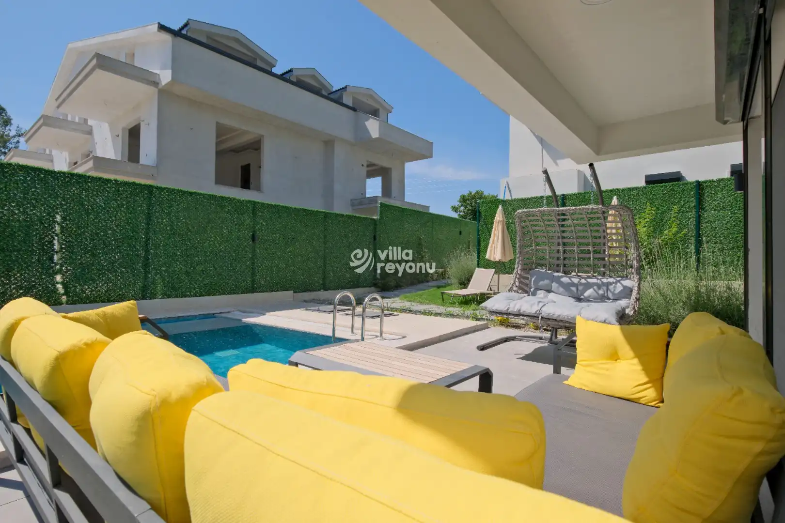 Tamamen korunaklı havuz alanı sayesinde misafirlerin mahremiyeti ön planda tutulurken, geniş havuz terası ise gün boyu keyifli vakit geçirmeniz için ferah bir alan sunar. Ana yatak odasında yer alan jakuzi, tatilinize ekstra bir rahatlık ve ayrıcalık katmaktadır. Tüm yatak odaları özel banyo ve tuvaletle donatılmıştır.