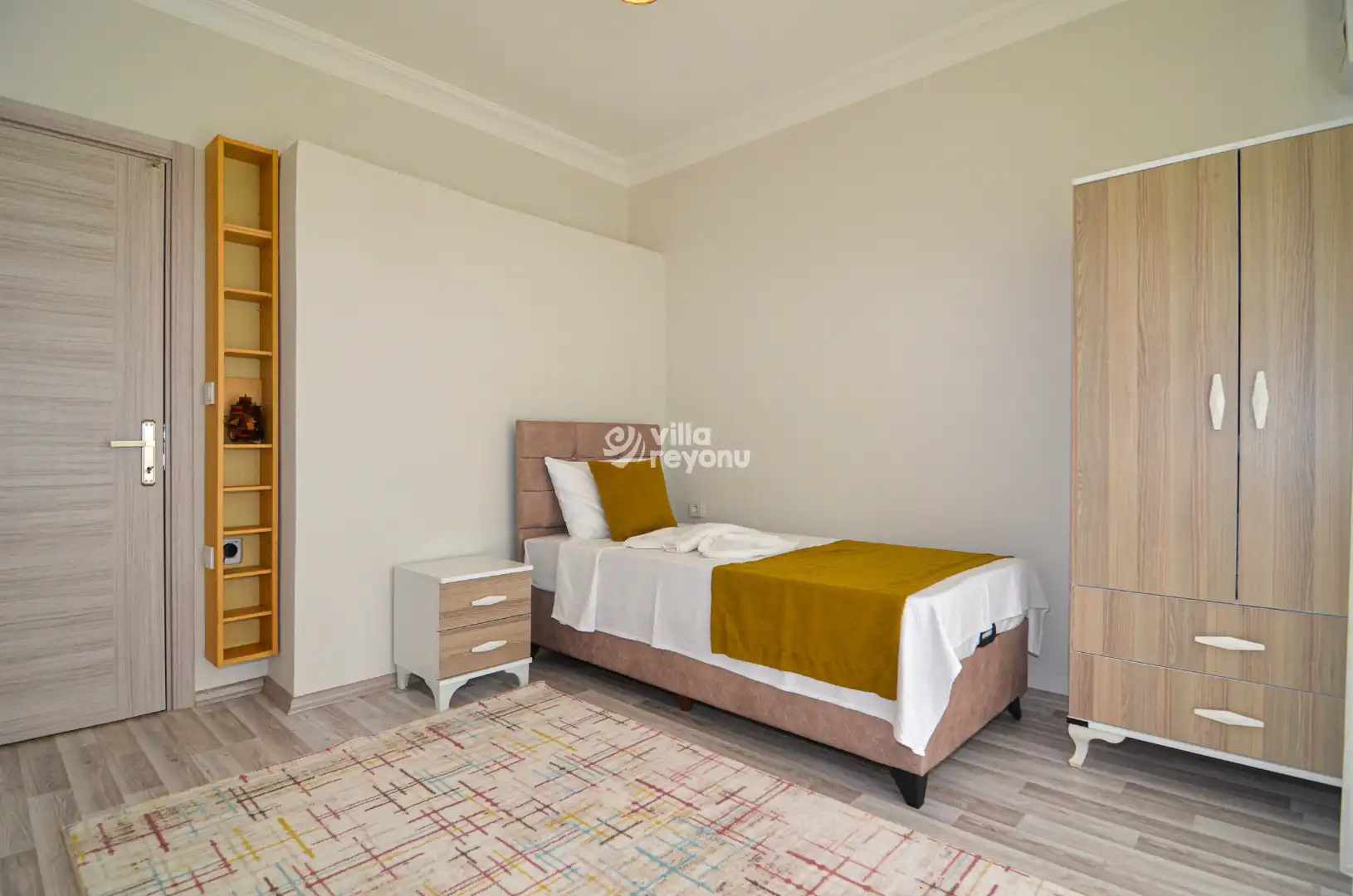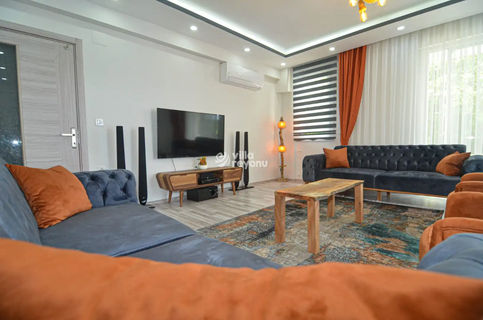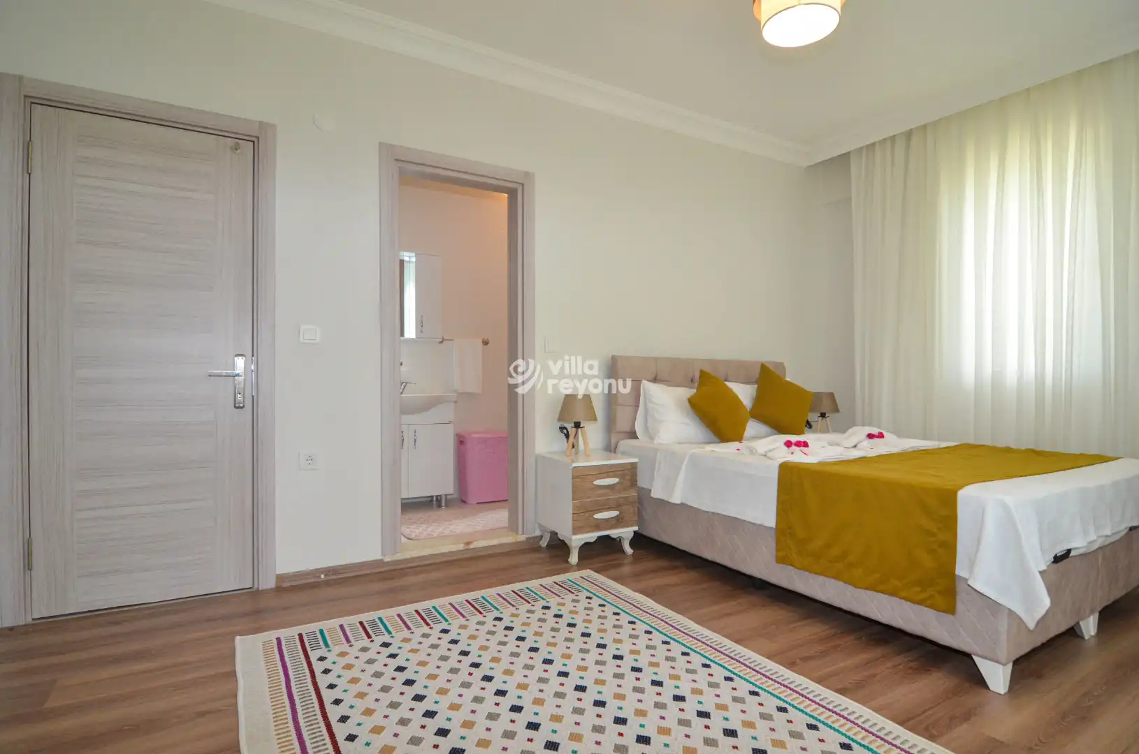 Villanın en dikkat çekici alanlarından biri geniş verandasıdır. Burada sabah kahvaltınızı yapabilir, günün yorgunluğunu atabilir veya sevdiklerinizle hoş sohbetler eşliğinde akşam saatlerini değerlendirebilirsiniz. Doğayla iç içe, özgürce vakit geçirebileceğiniz bu özel alan, tatilinize ayrı bir keyif katacaktır.