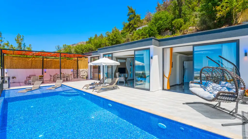Villa Ventura, Kalkan Üzümlü mevkisinde yer almaktadır. 2 adet yatak odasına ve 4 kişilik konaklama kapasitesine sahiptir. Ana yatak odasında jakuzi bulunmaktadır. Balayı çiftleri ve çekirdek aileler için oldukça ideal bir villa seçeneğidir. Doğa mazarası ve şık dizaynı ile siz değerli misafirlerimize keyifli bir tatil fırsatı sunmaktadır .