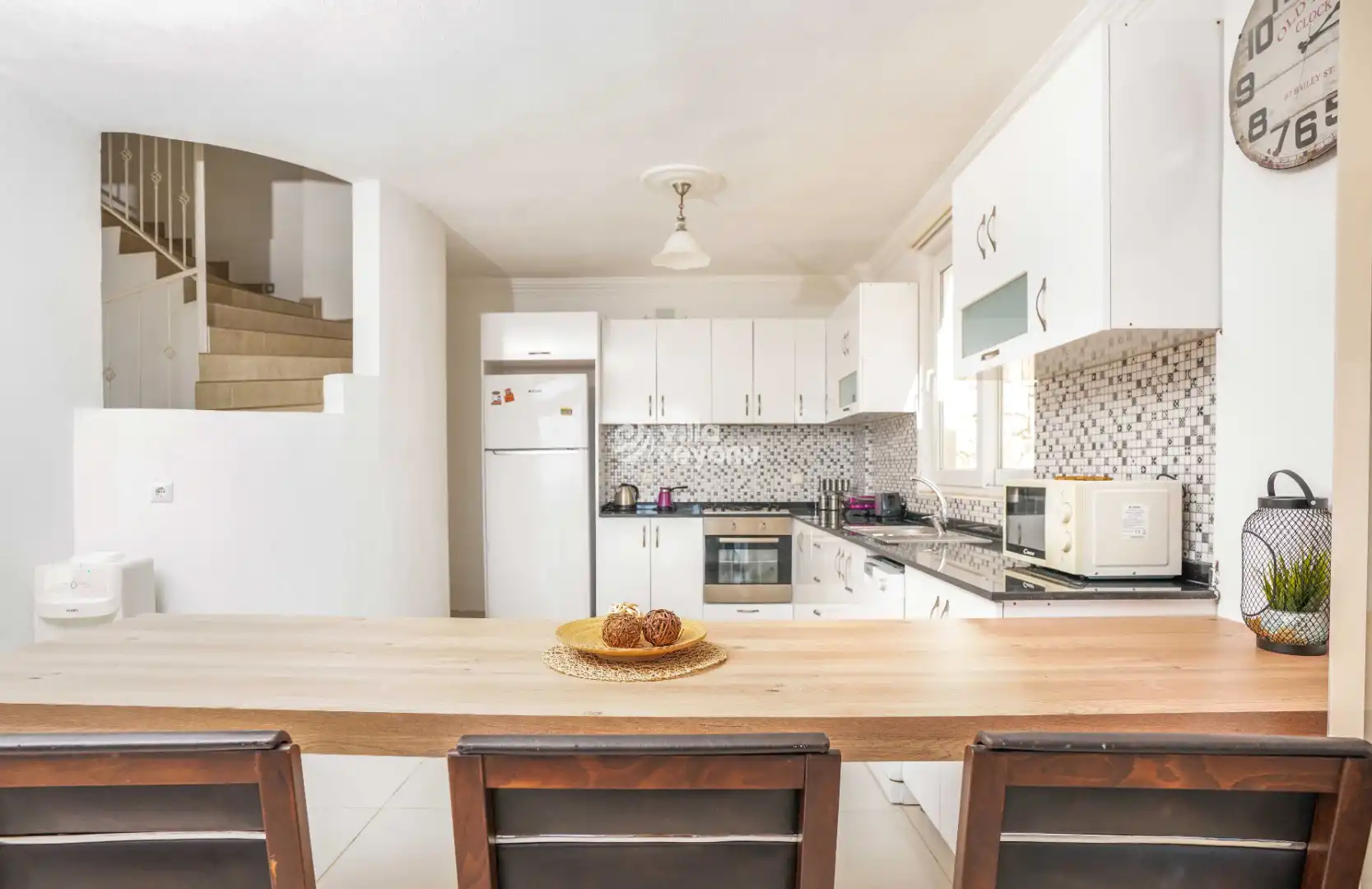 * Bu evin resimleri sitemizde yer alan diğer evlerin resimleri gibi görüntüyü ekrana sığdırmak amacıyla, geniş açılı lens ve profesyonel fotoğraf makinaları ile çekilmektedir. Bu nedenle resimler üzerinde yer alan objeler gerçeğinden daha büyük olarak görülebilmektedir.