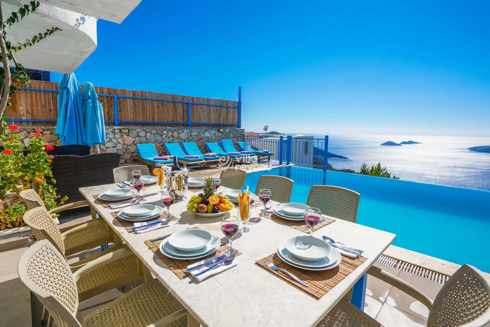 Kalkan Kördere’nin en hakim noktasında, mavinin her tonuna şahitlik edeceğiniz Villa Vesper, kesintisiz deniz manzarası ve doğanın eşsiz uyumuyla misafirlerini büyülemeye hazır. 4 konforlu yatak odası ve 8 kişilik geniş konaklama kapasitesiyle özellikle kalabalık aileler için tasarlanan villamız, modern Amerikan mutfağı ve ferah yaşam alanlarıyla evinizdeki konforu lüks bir mimariyle buluşturuyor.