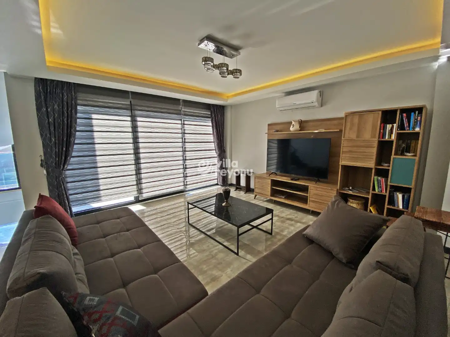 Bu evin resimleri sitemizde yer alan diğer evlerin resimleri gibi görüntüyü ekrana sığdırmak amacıyla, geniş açılı lens ve profesyonel fotoğraf makinaları ile çekilmektedir. Bu nedenle resimler üzerinde yer alan objeler gerçeğinden daha büyük olarak görülebilmektedir.