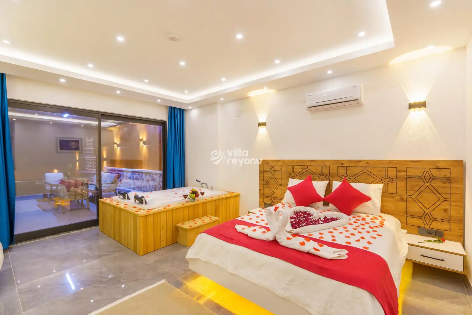 Villa Vireon, Kalkan’ın Çavdır mevkiinde, doğa ile iç içe sessiz ve huzurlu bir konumda yer alan, tam korunaklı özel havuzlu bir villadır. Balayı çiftleri ve çekirdek aileler için ideal olan villamızda yılın yorgunluğunu atabileceğiniz jakuzili bir suit oda da bulunmaktadır.
