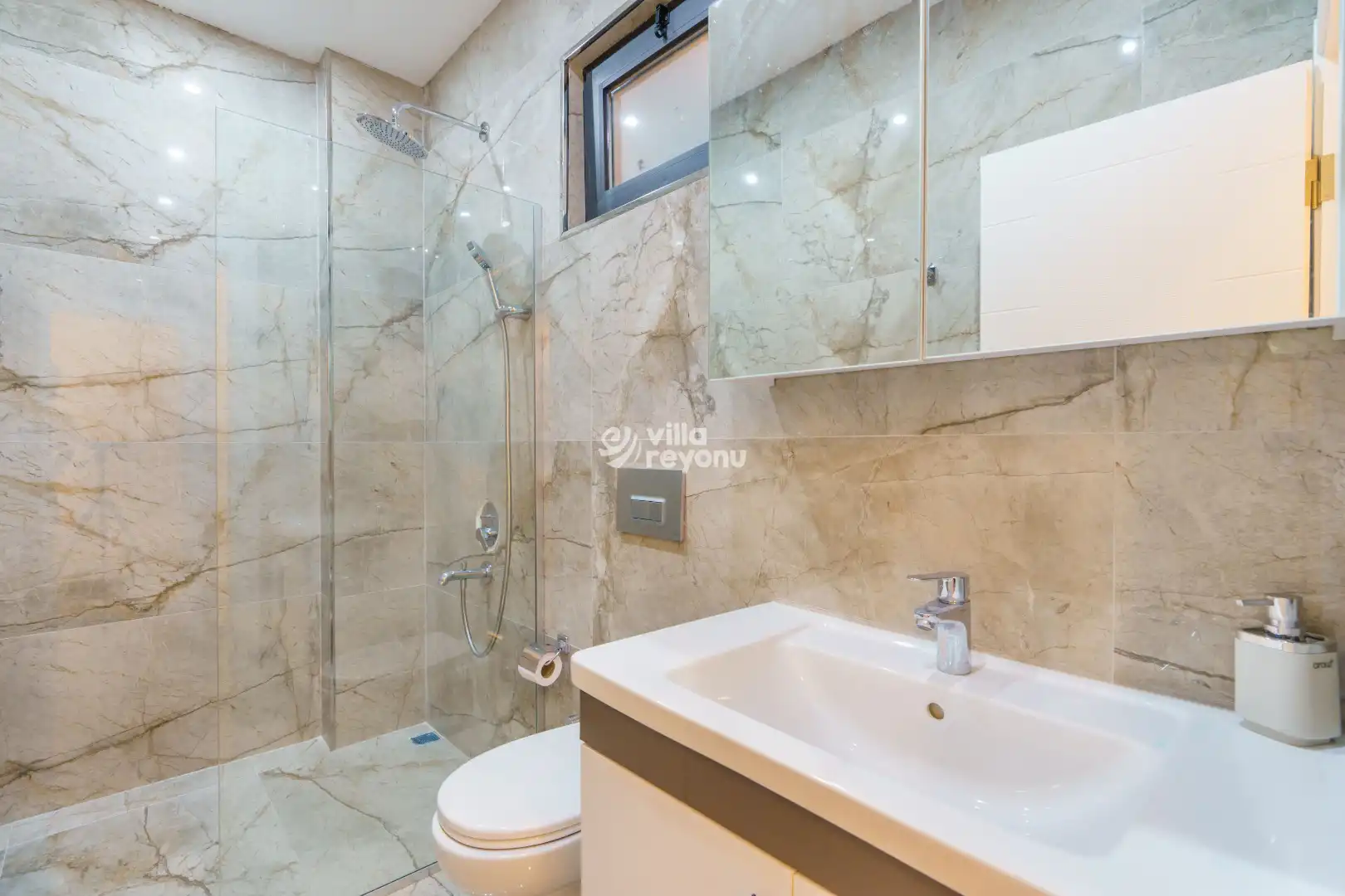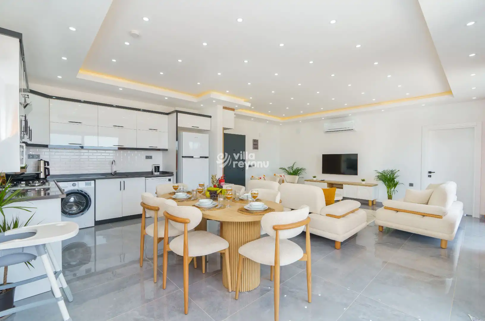 Villada iki yatak odası ve iki banyo mevcuttur. Birinci odada iki tek kişilik yatak, ikinci odada çift kişilik yatak, jakuzi ve banyo yer alır. Geniş salon, açık mutfak, oturma grubu ve klima ile donatılmıştır. Bahçesinde salıncak, çocuk parkı ve dinlenme alanları bulunmaktadır.