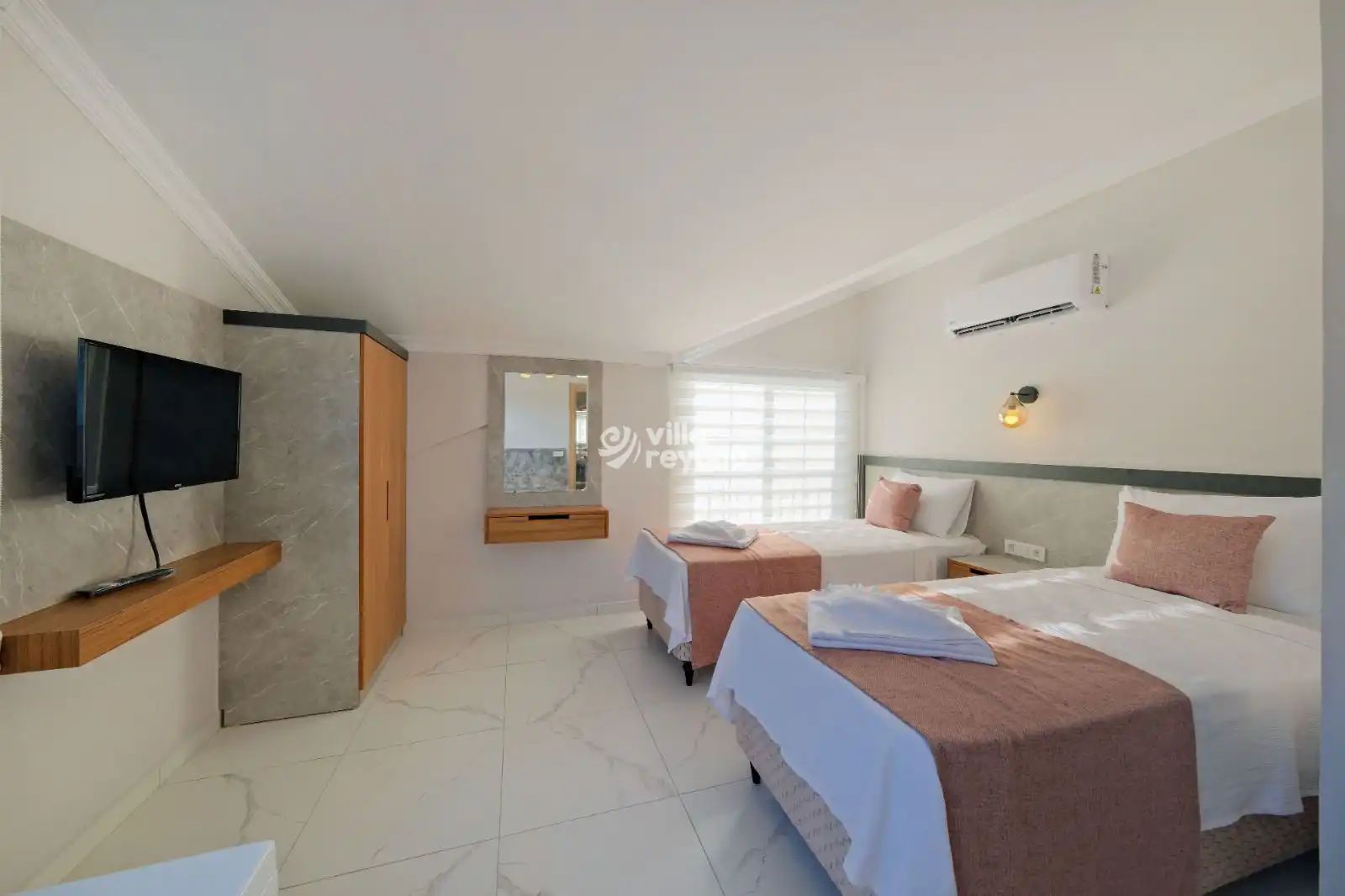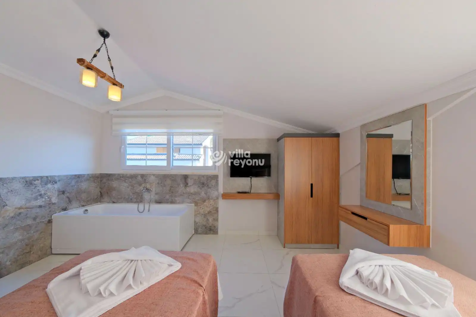 Villa Virtus, Fethiye'nin Hisarönü mevkisinde konumlanmış, Ölüdeniz Plajı'na 5 dakikalık sürüş mesafesinde bulunan tripleks villamızdır. 4 yatak odası ve 4 banyo tuvaleti bulunan villamız 8 kişilik konaklama kapasitesiyle geniş aileler ve kalabalık aile grupları için ideal bir seçenek olarak öne çıkmaktadır. Geniş bahçe alanında bulunan korunaklı özel yüzme havuzu, konforlu şezlongları ve yaz aylarının vazgeçilmezi barbeküsüyle villamız, gözlerden uzak ve huzurlu bir tatil geçirmek isteyen misafirlerini bekliyor.