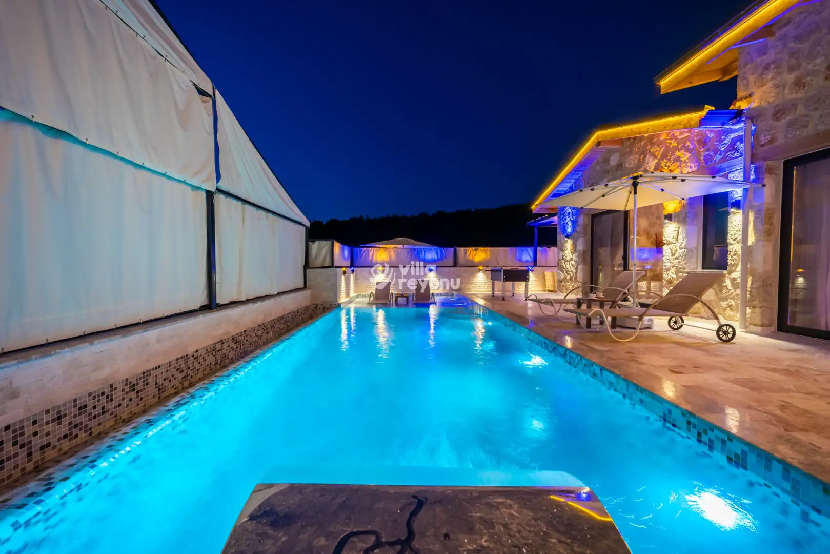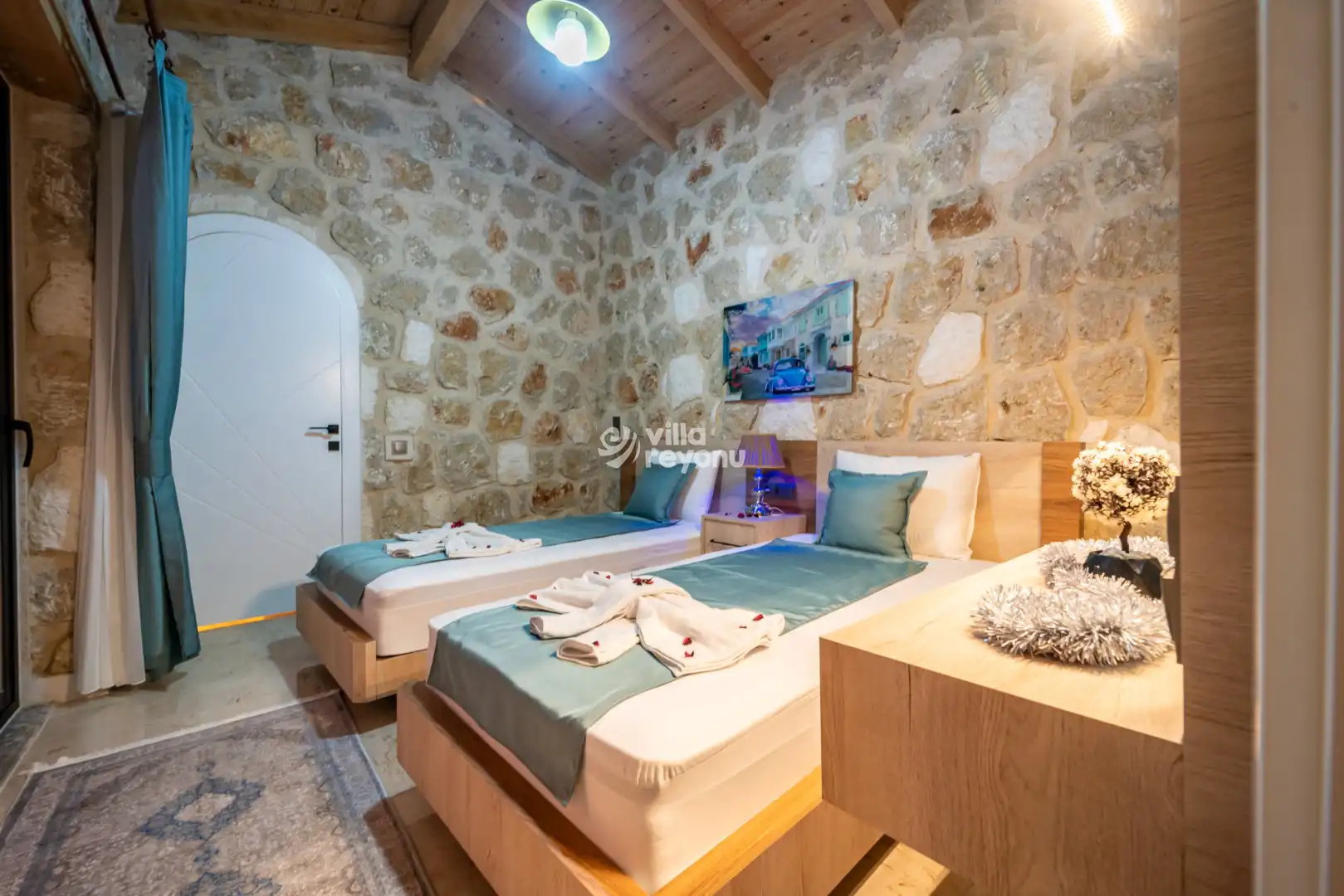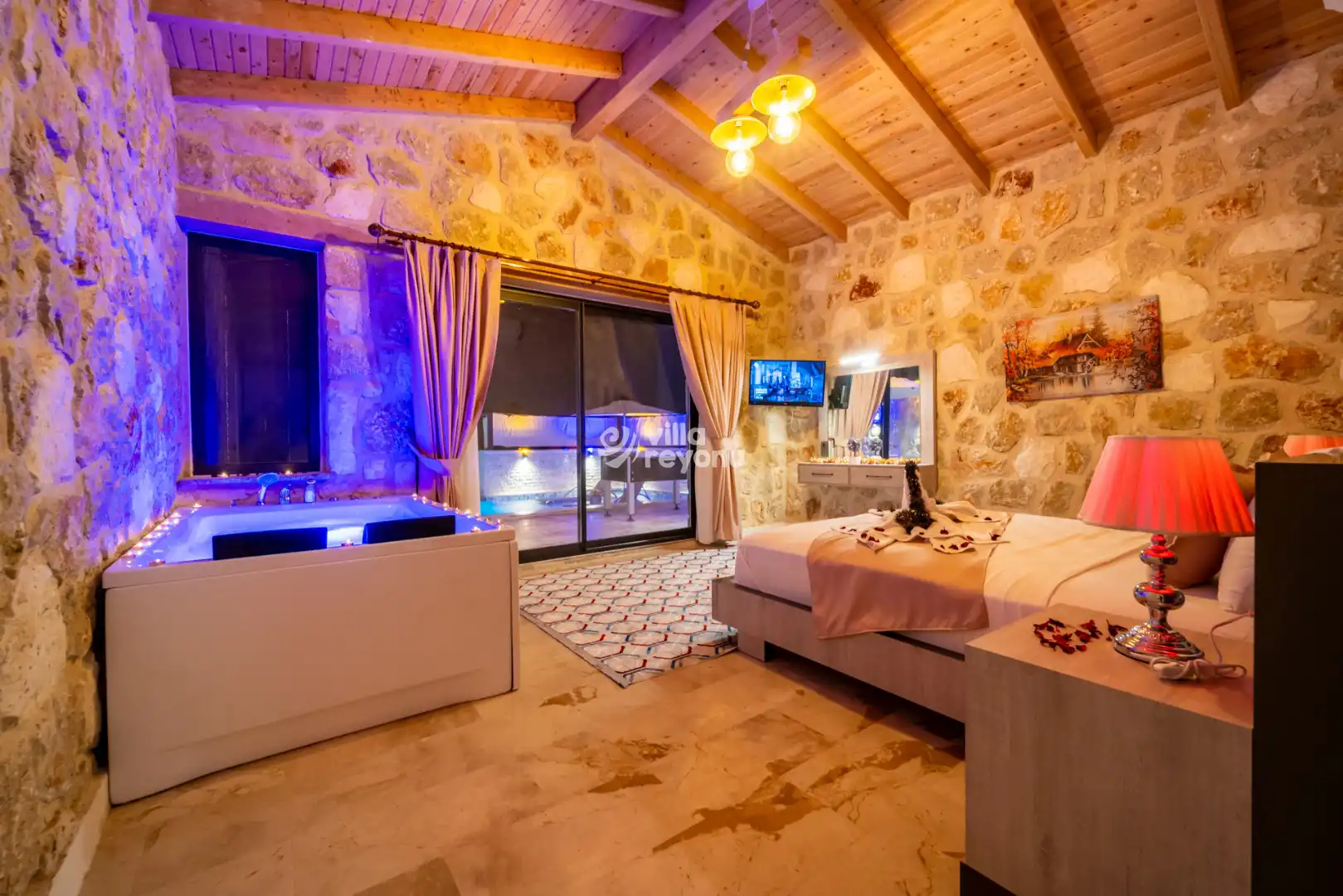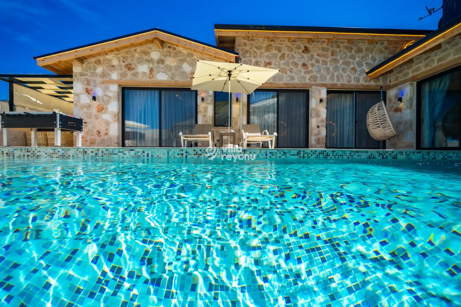 Kalkan'ın Akbel mevkisinde bulunan Villa Visvonte Premium, 2 yatak odasıyla 4 kişiye kadar konaklama imkanı sunar. Taş ve ahşap mimariyle doğayla uyumlu bir tasarıma sahiptir. Havuz terası, özel bir atmosfer sunarak mahremiyeti önemser. Ebeveyn yatak odasında çift kişilik jakuzi bulunmaktadır.