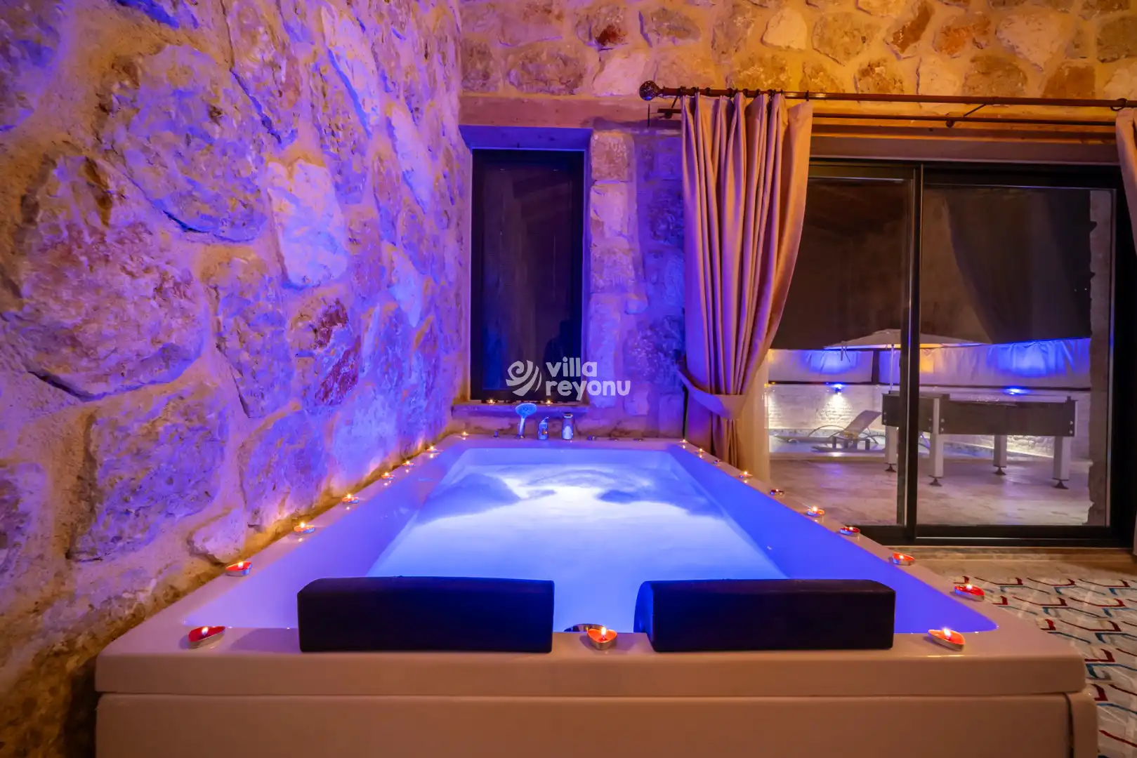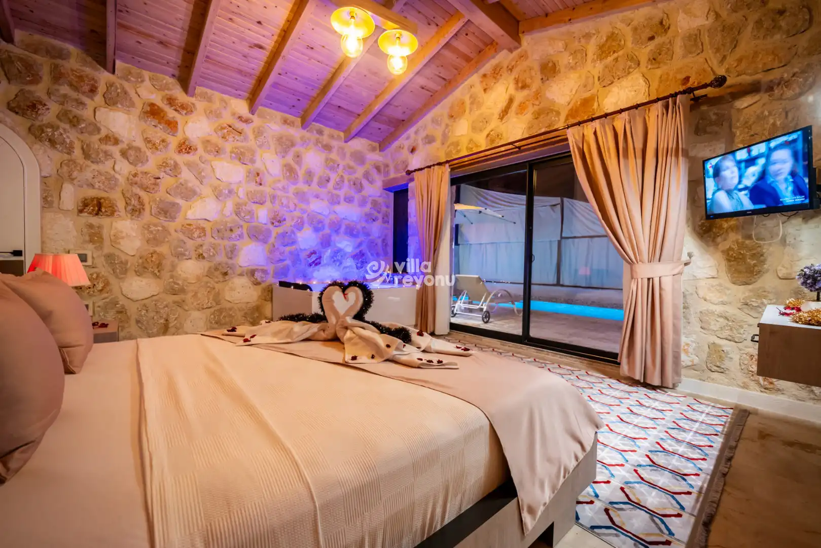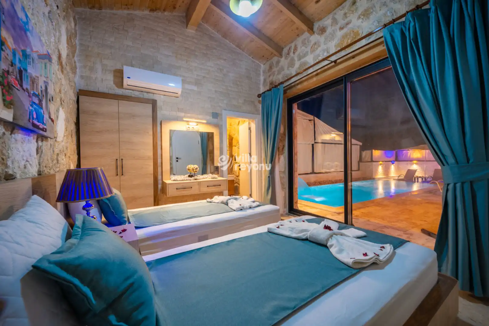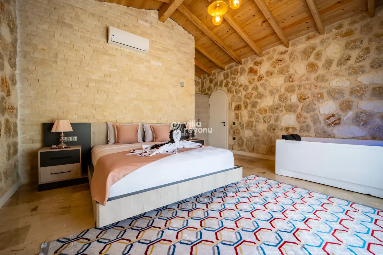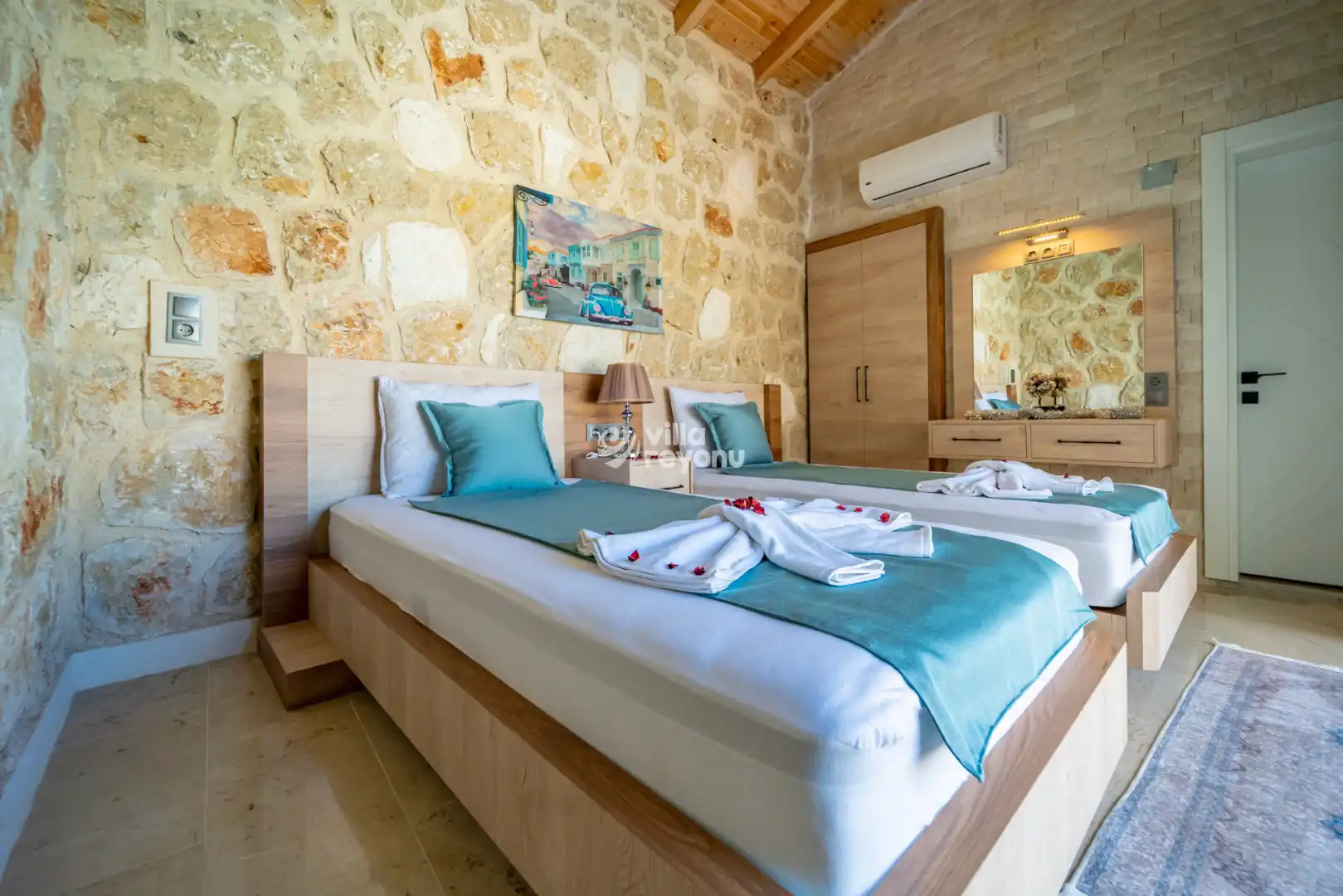 Kalkan'ın Akbel mevkisinde bulunan Villa Visvonte Premium, 2 yatak odasıyla 4 kişiye kadar konaklama imkanı sunar. Taş ve ahşap mimariyle doğayla uyumlu bir tasarıma sahiptir. Havuz terası, özel bir atmosfer sunarak mahremiyeti önemser. Ebeveyn yatak odasında çift kişilik jakuzi bulunmaktadır.